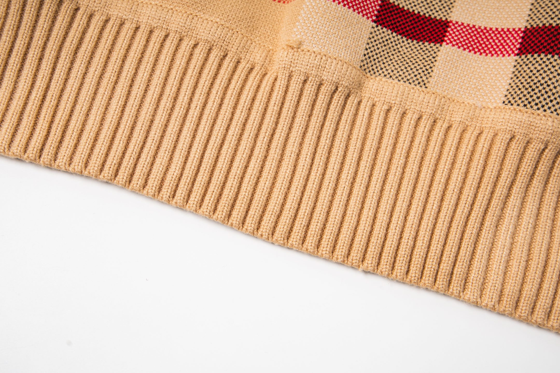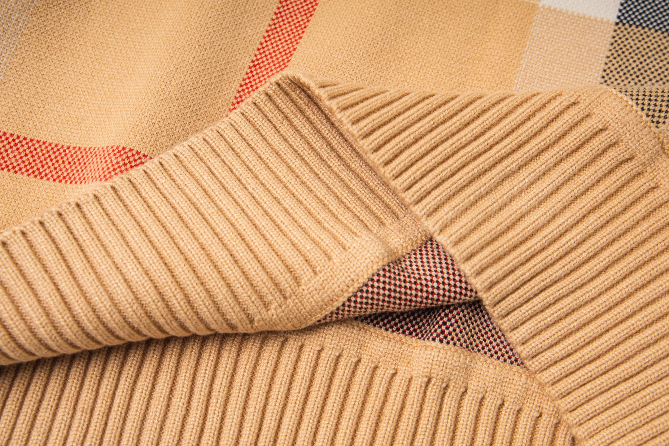 Classic plaid crew neck cashmere sweater