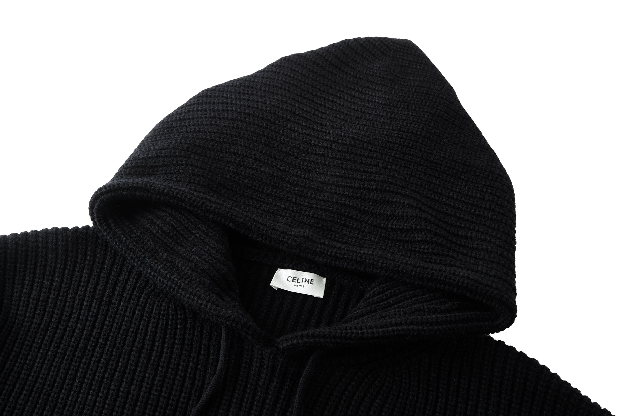 Leather patch wool hooded sweater