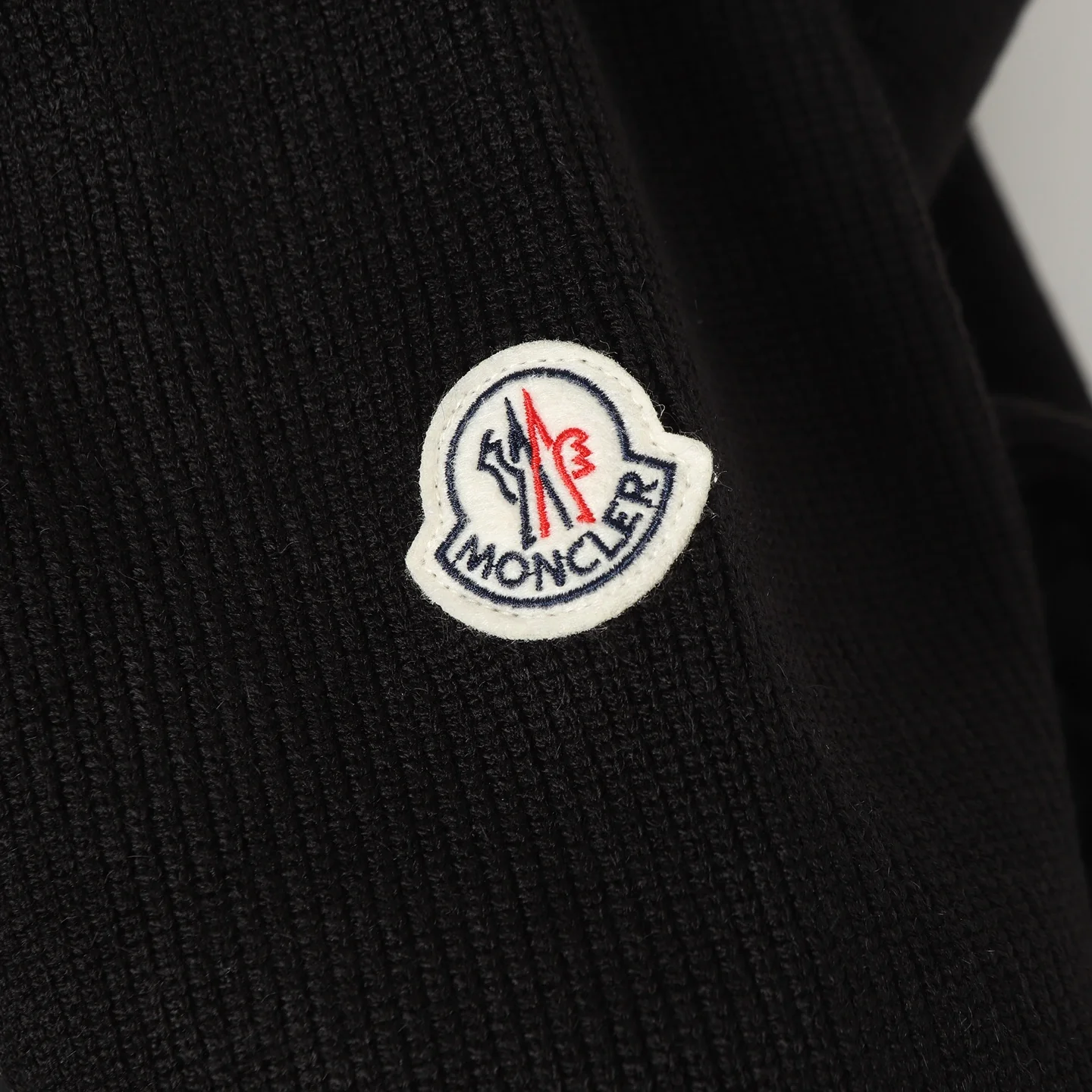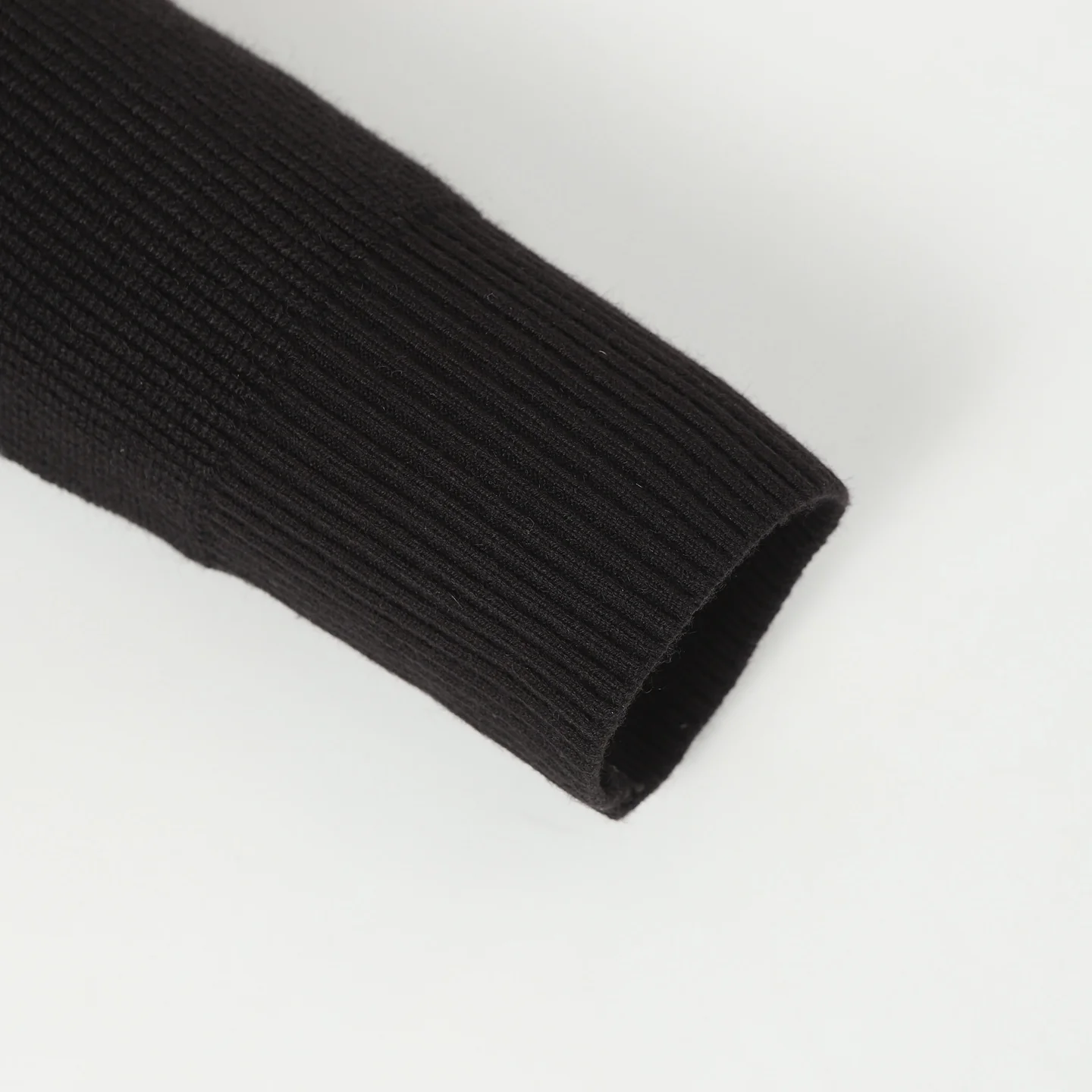 Wool Sleeve Matt Black Hooded Knitted Jacket