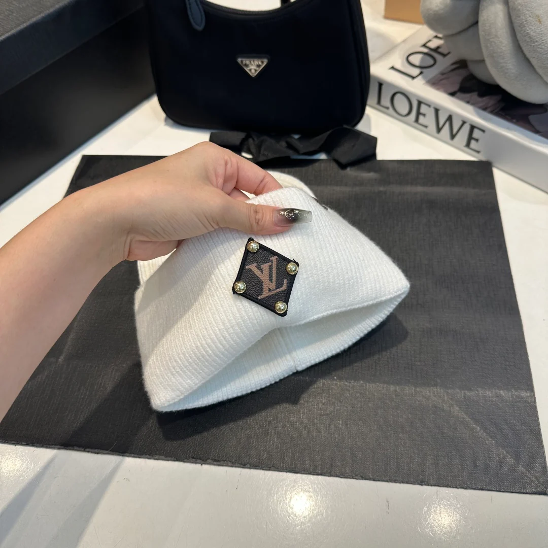 Leather Printed Cashmere Knitted Beanie