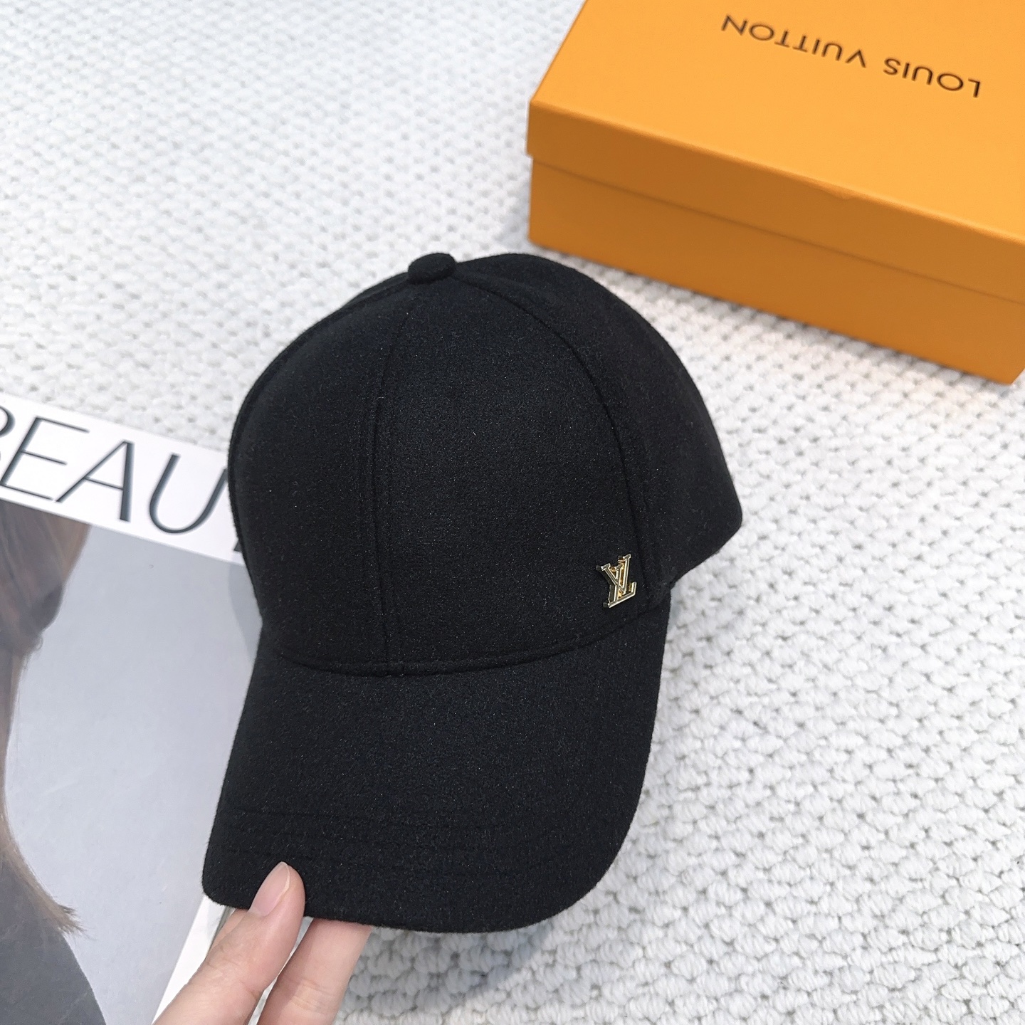Solid color cashmere baseball cap