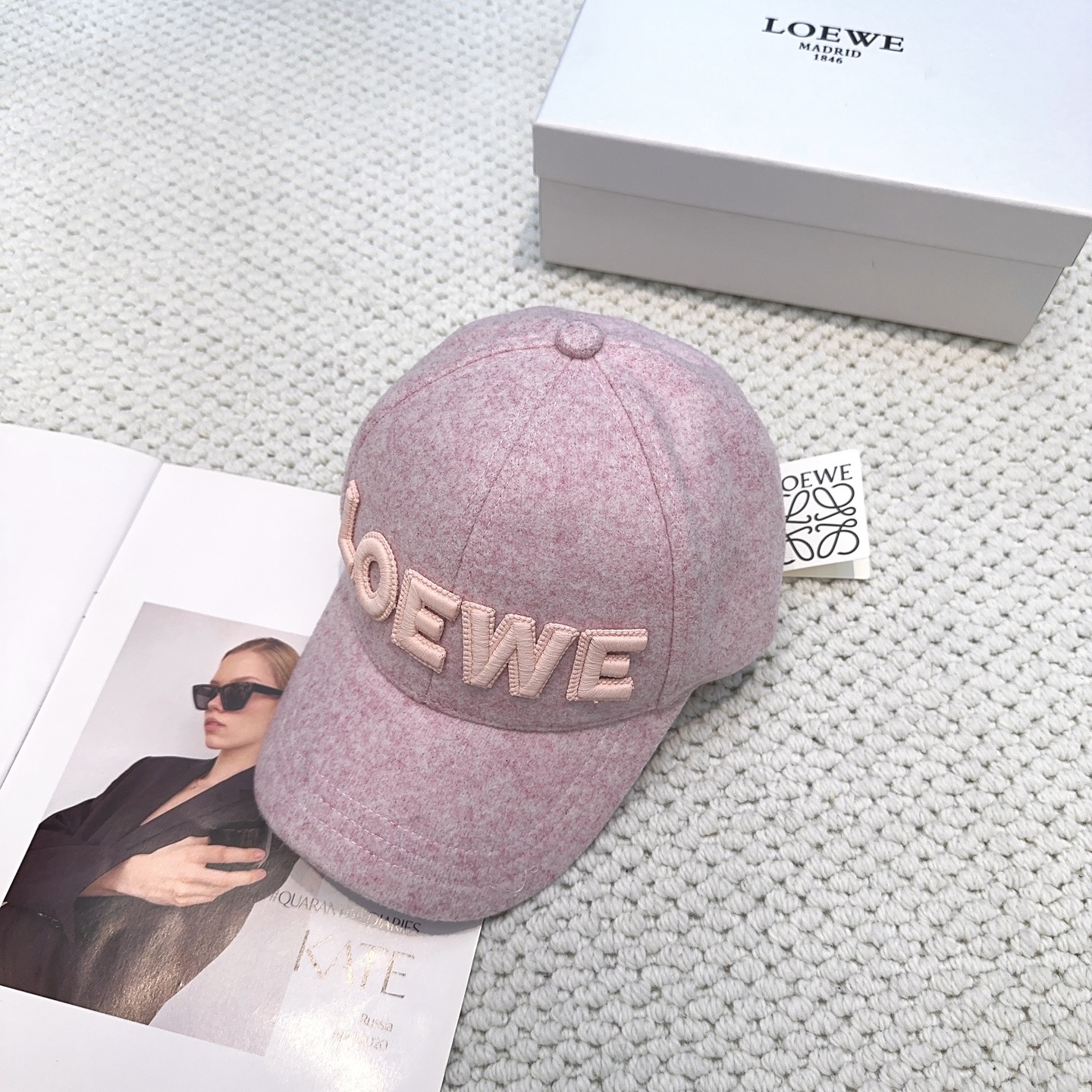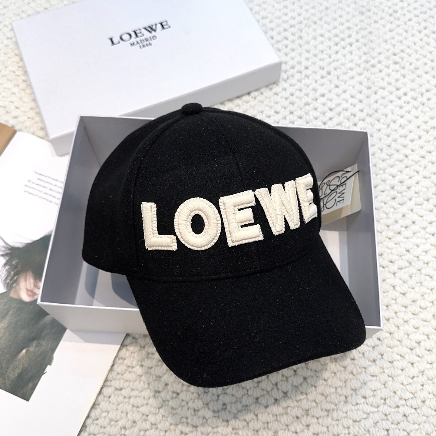 Embroidered cashmere baseball cap