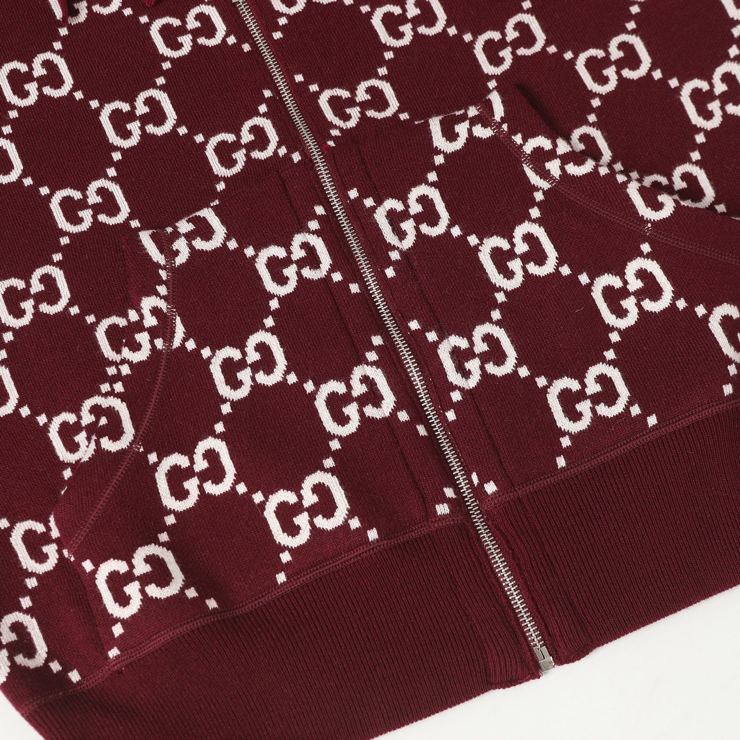 Reversible embossed cashmere hooded jacket