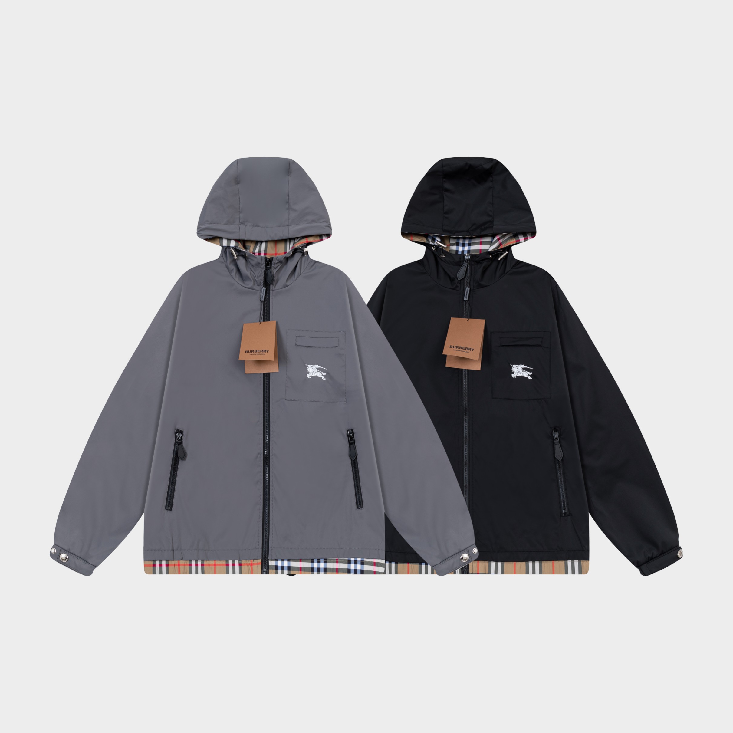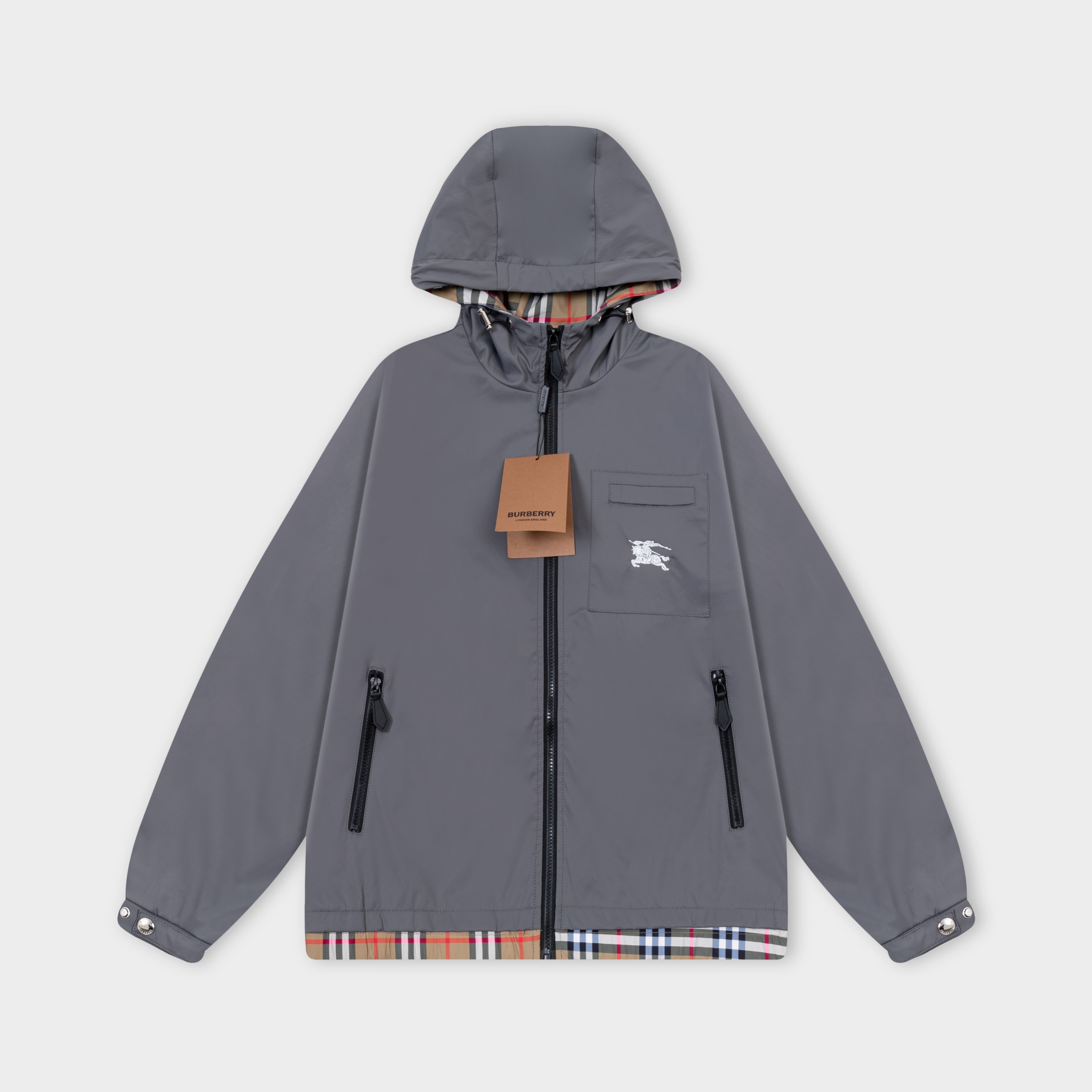 Classic plaid embroidered hooded jacket