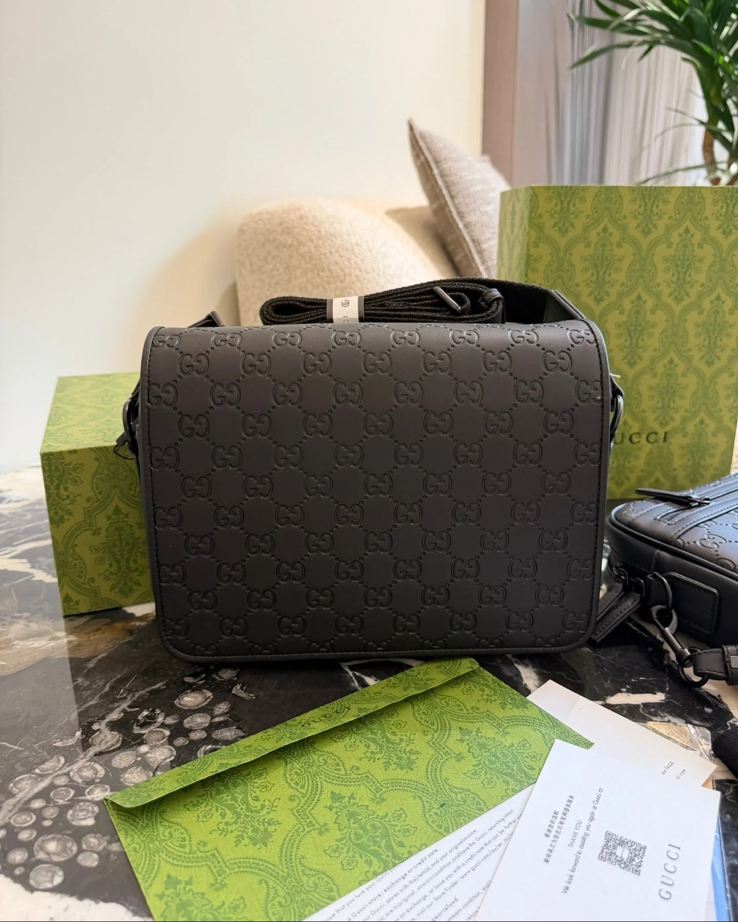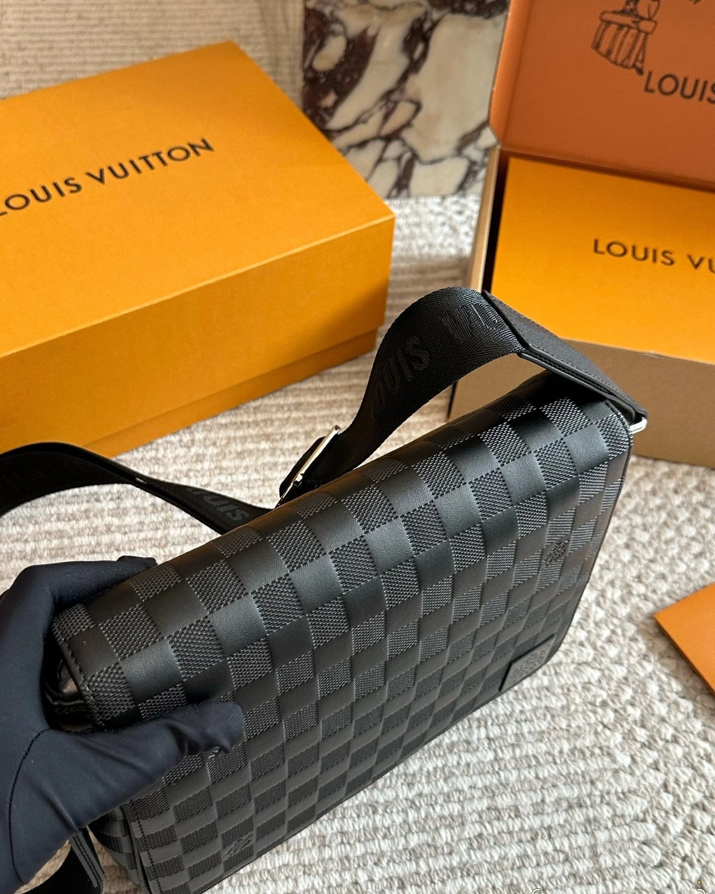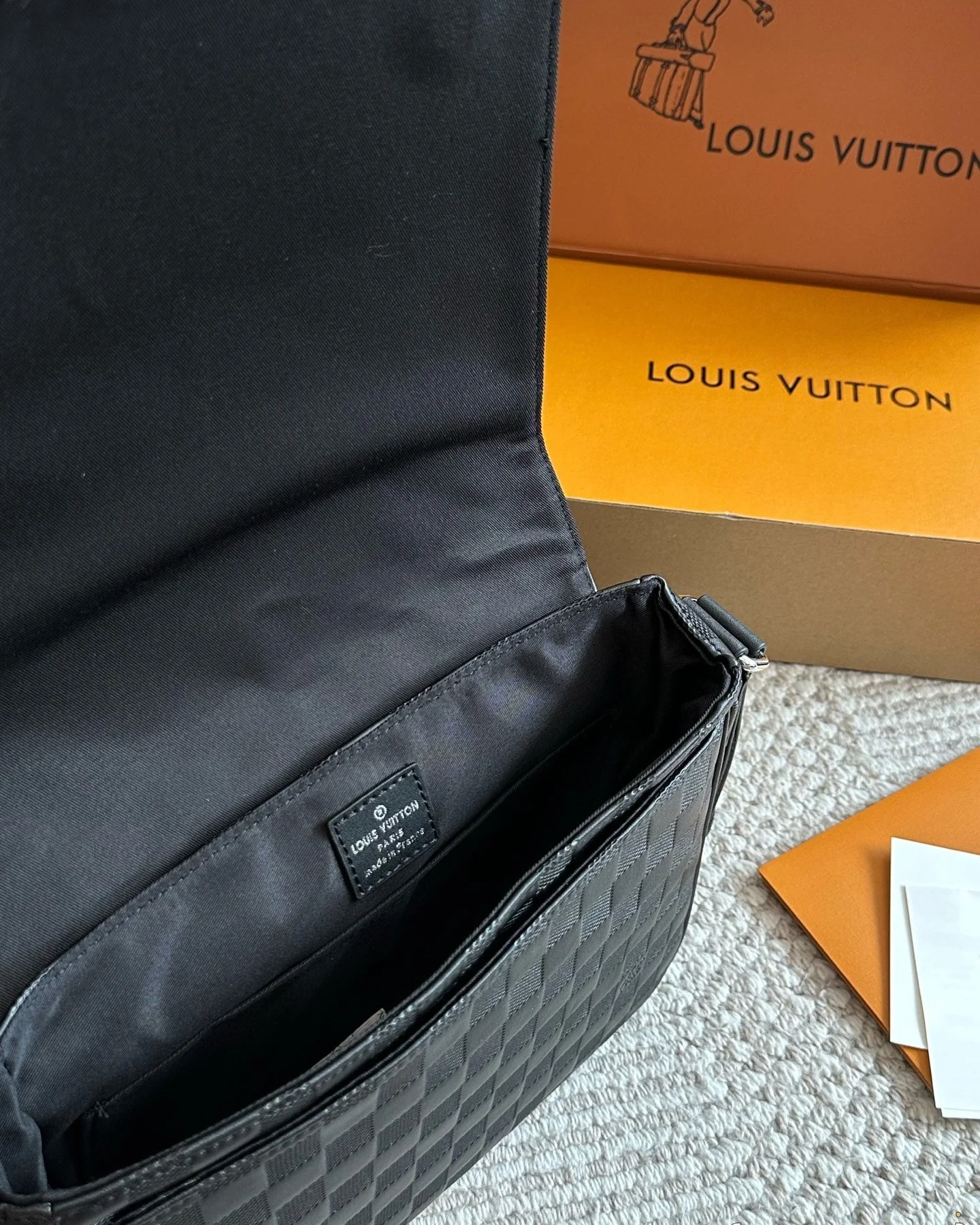 Men's Black Plaid Messenger Bag