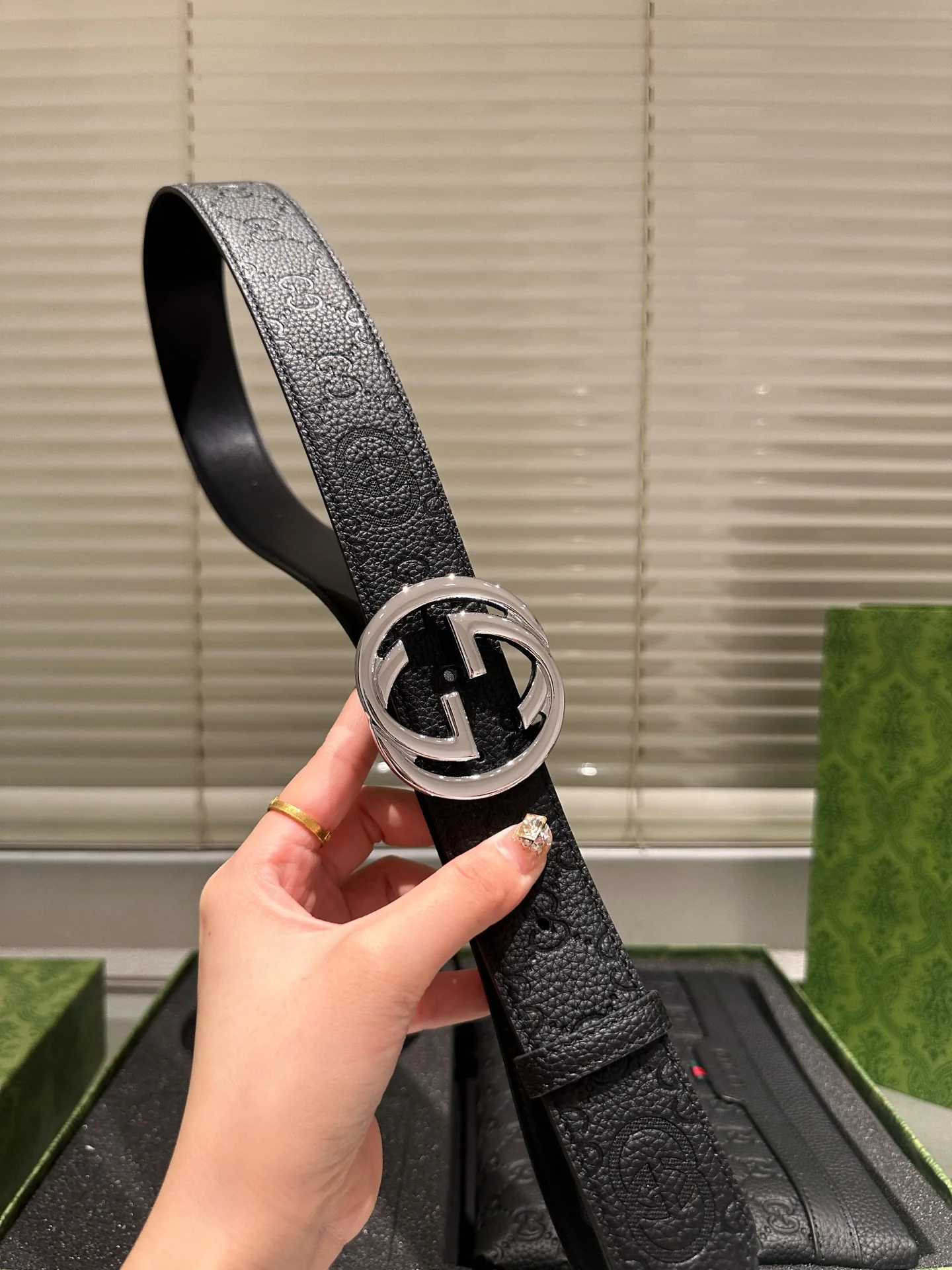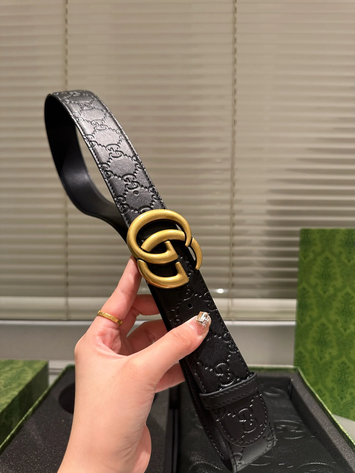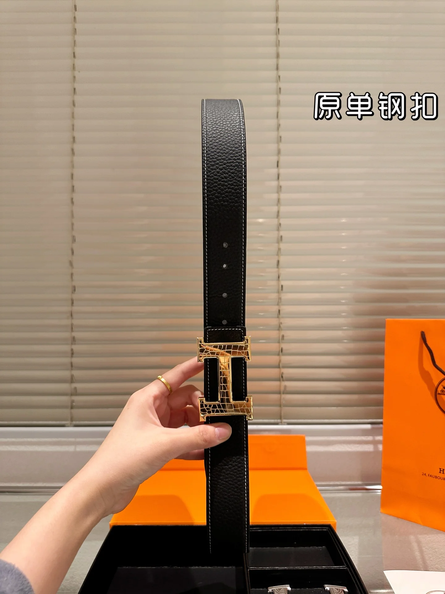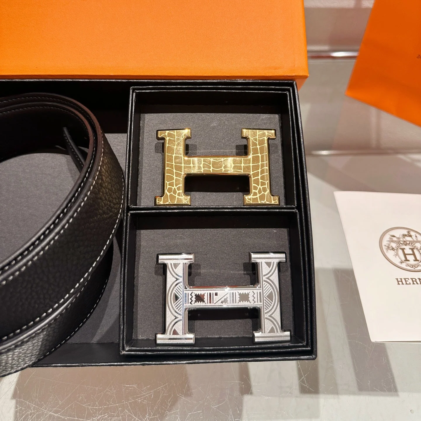 Leather belt with double metal buckle gift box