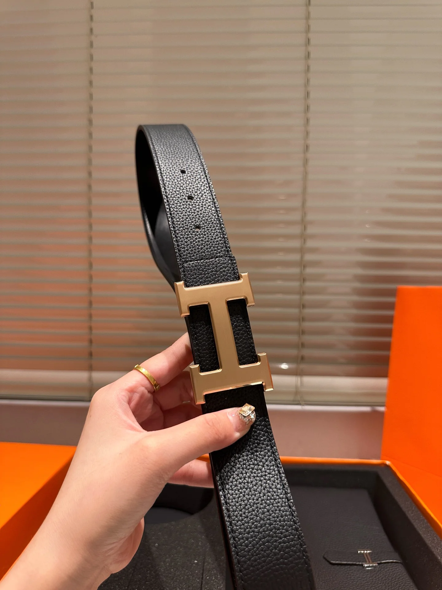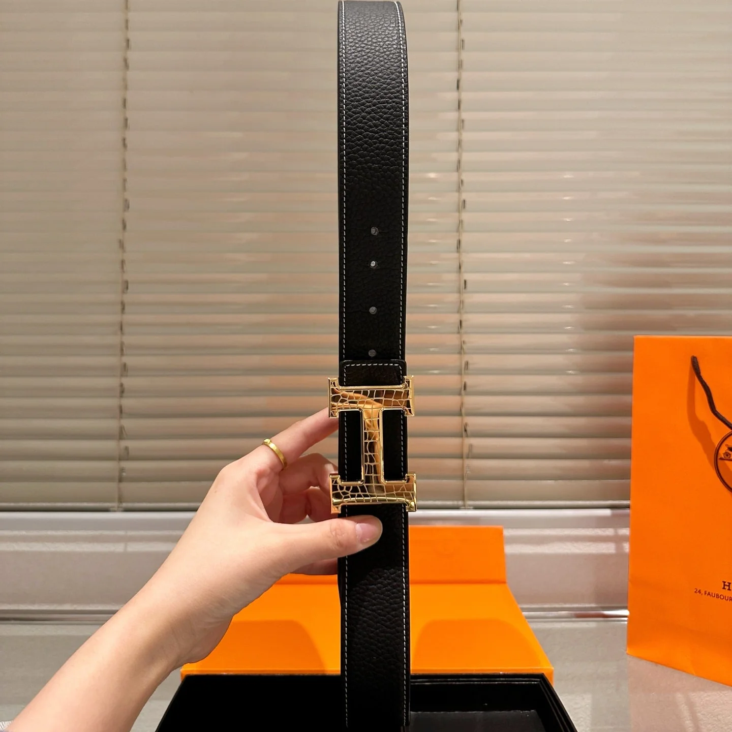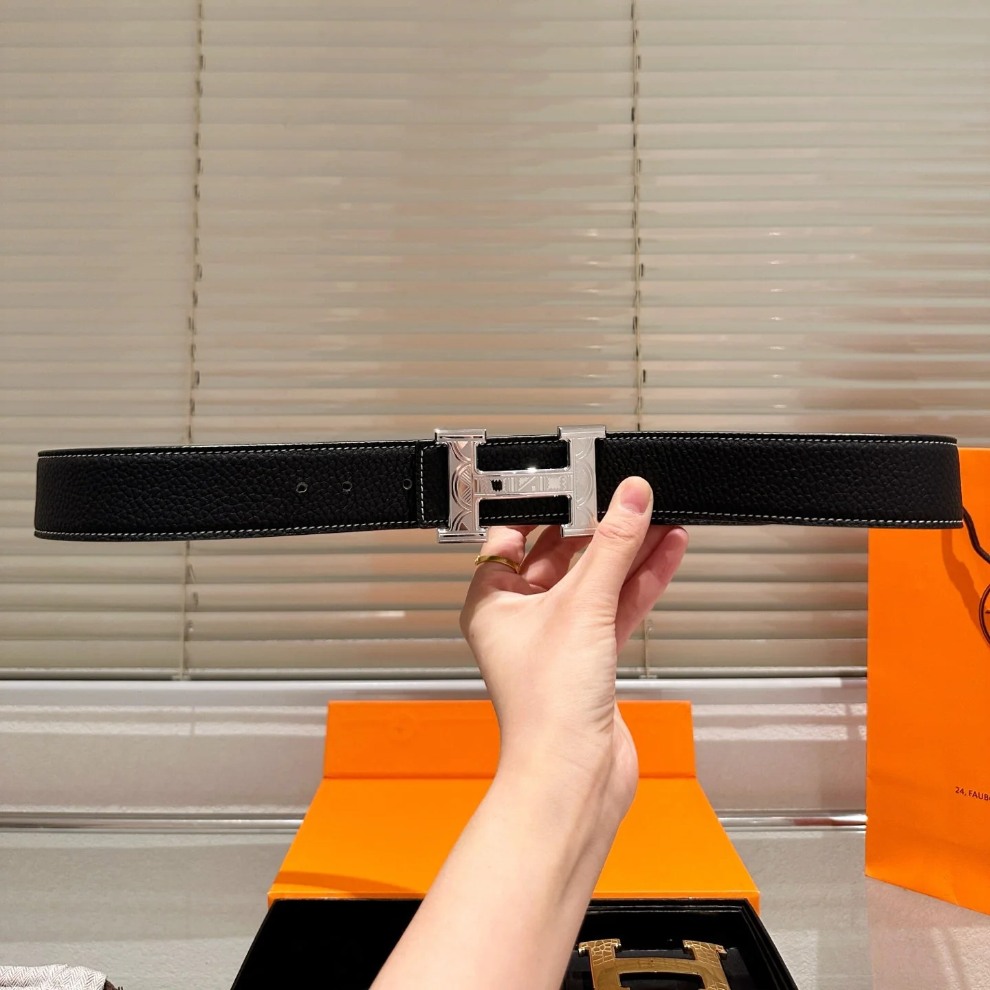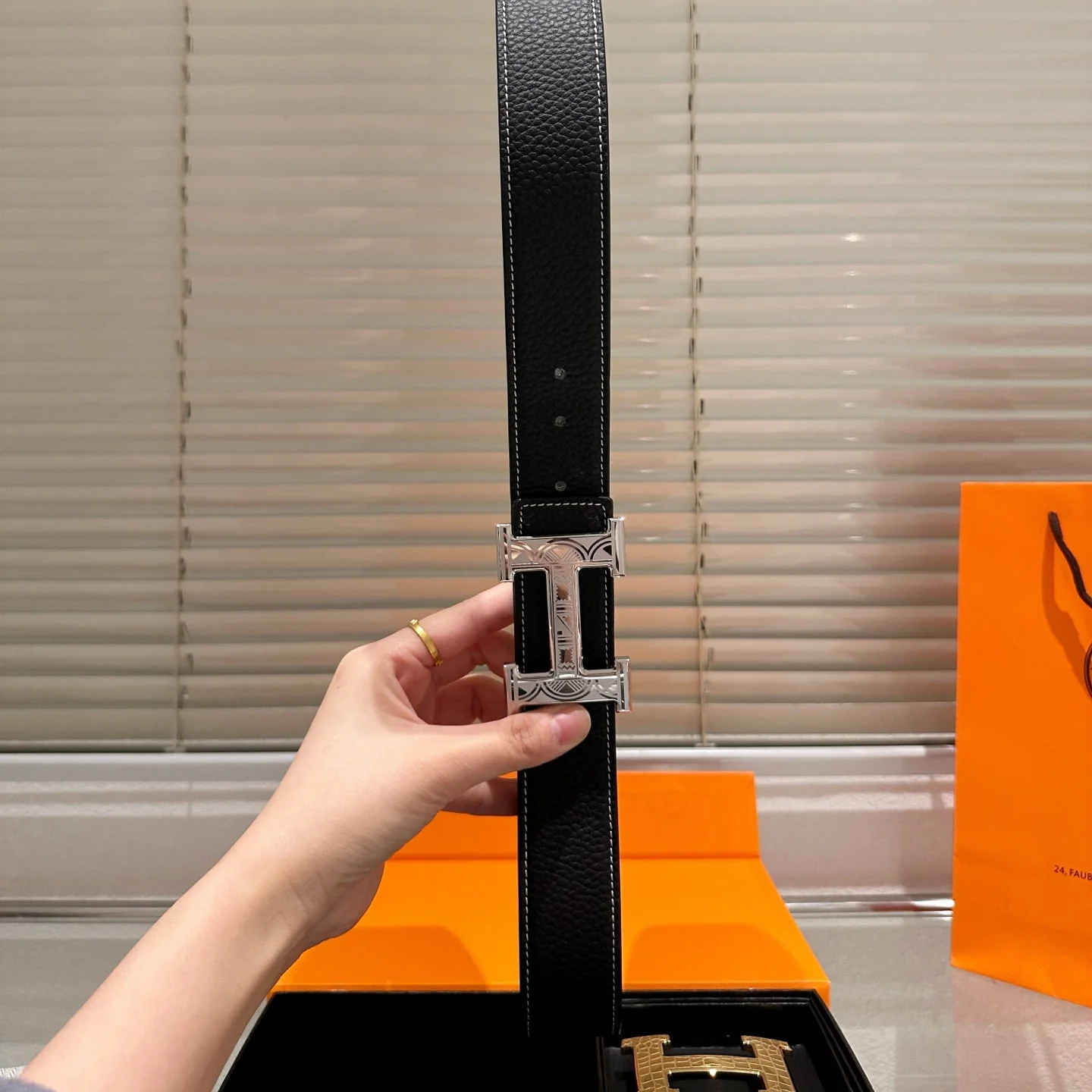 Leather belt with double metal buckle gift box