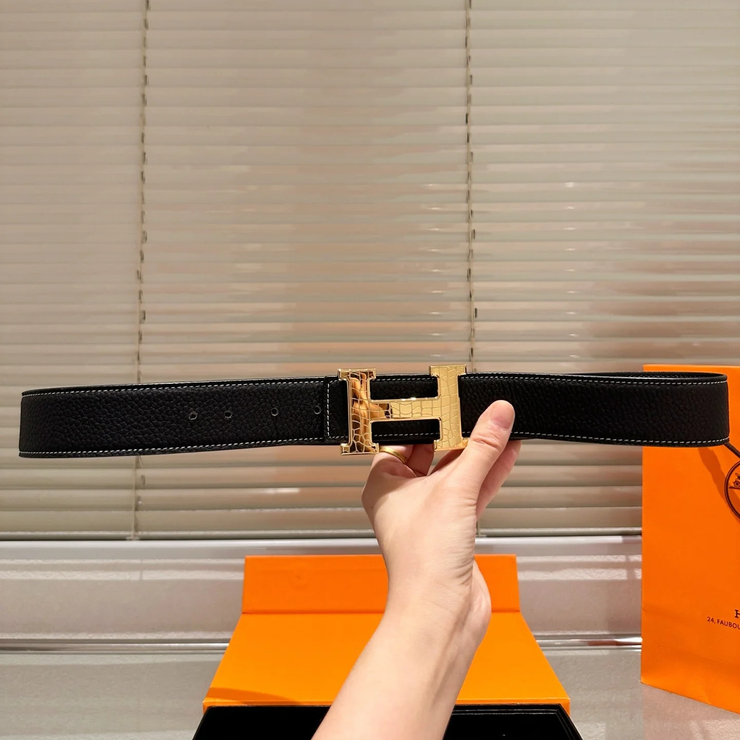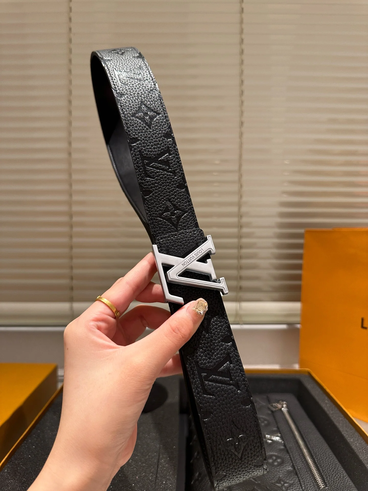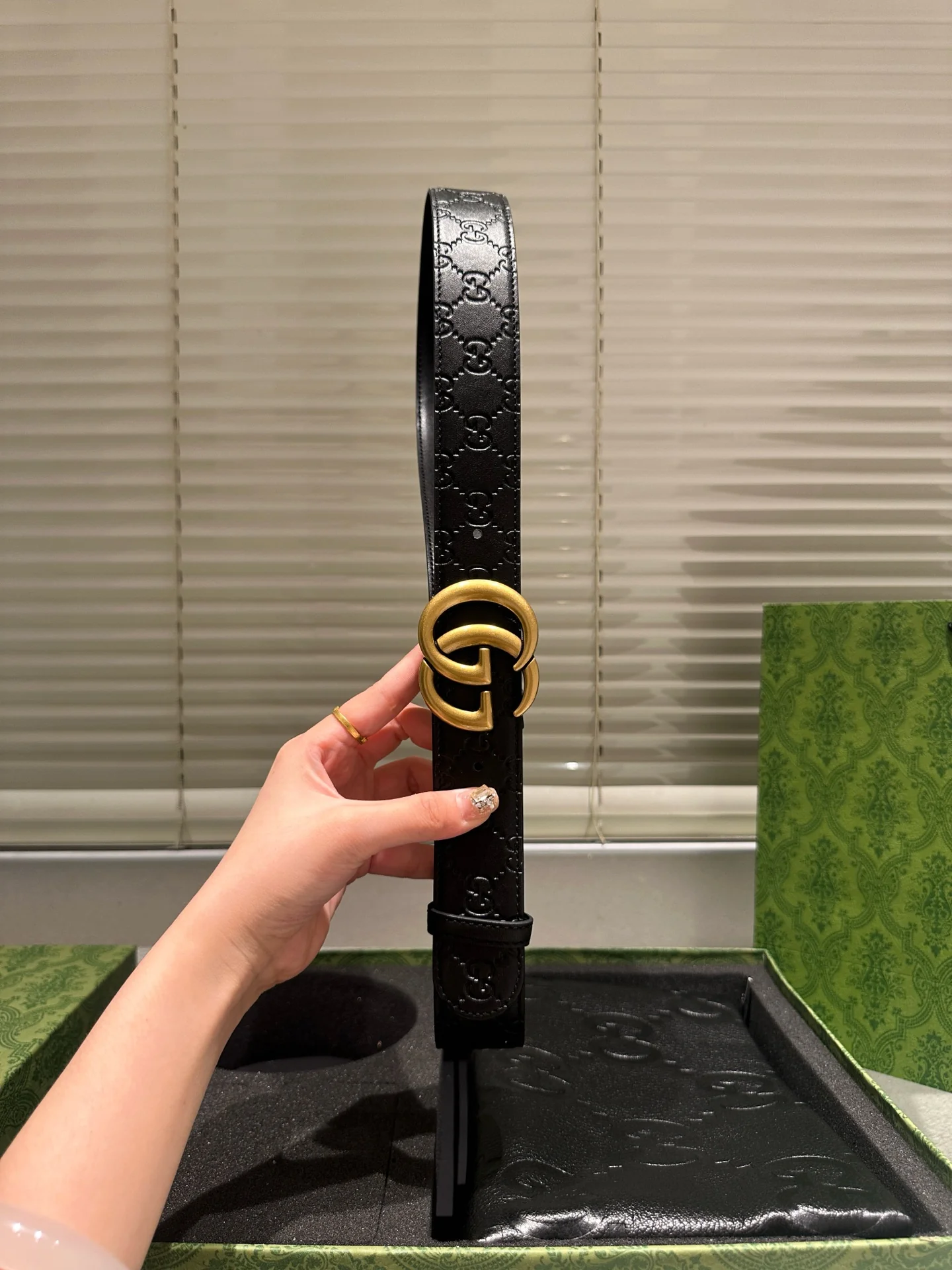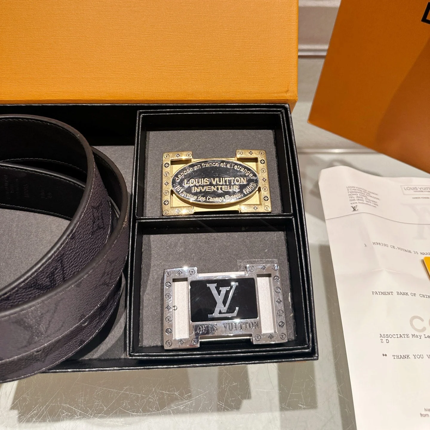 Leather belt with double metal buckle gift box