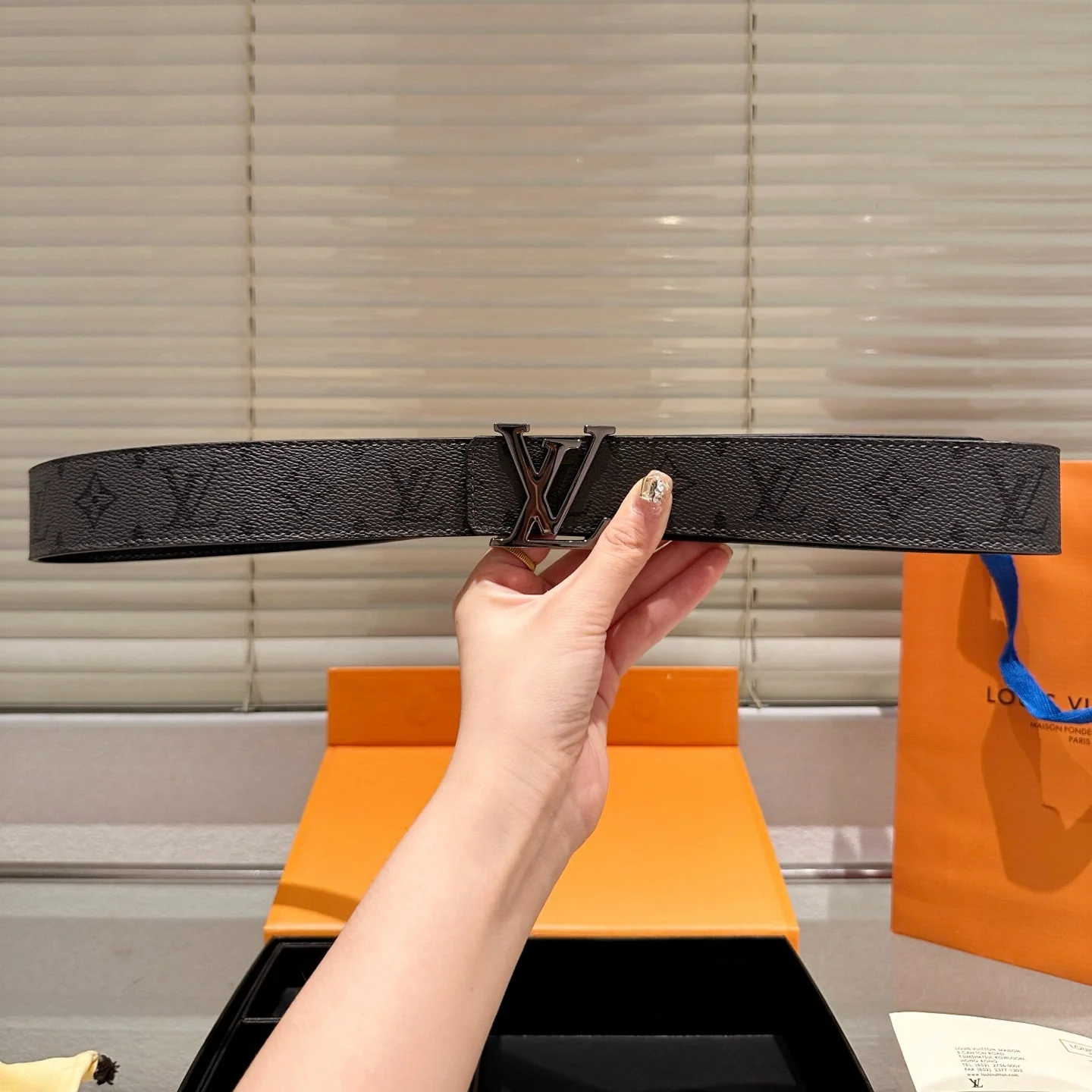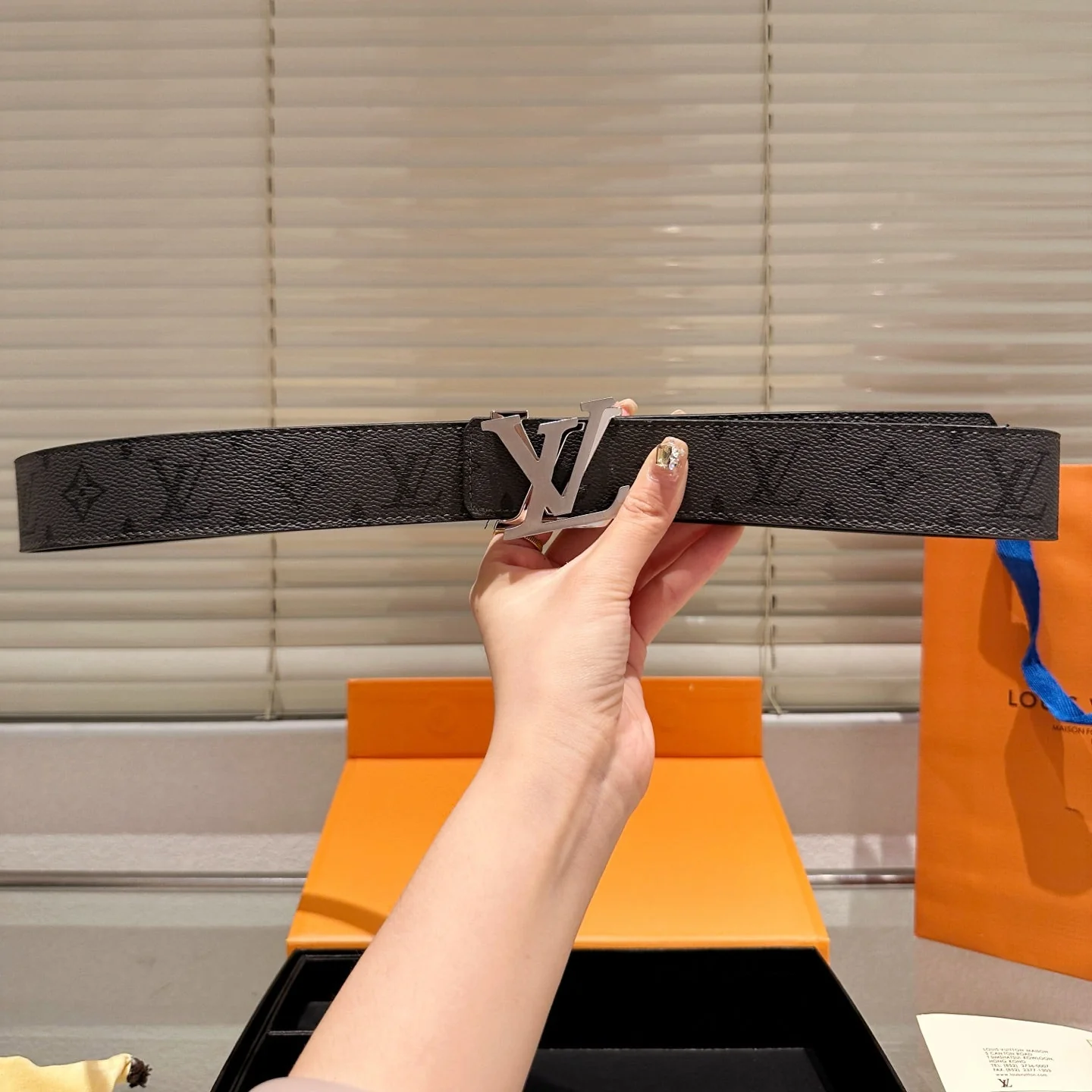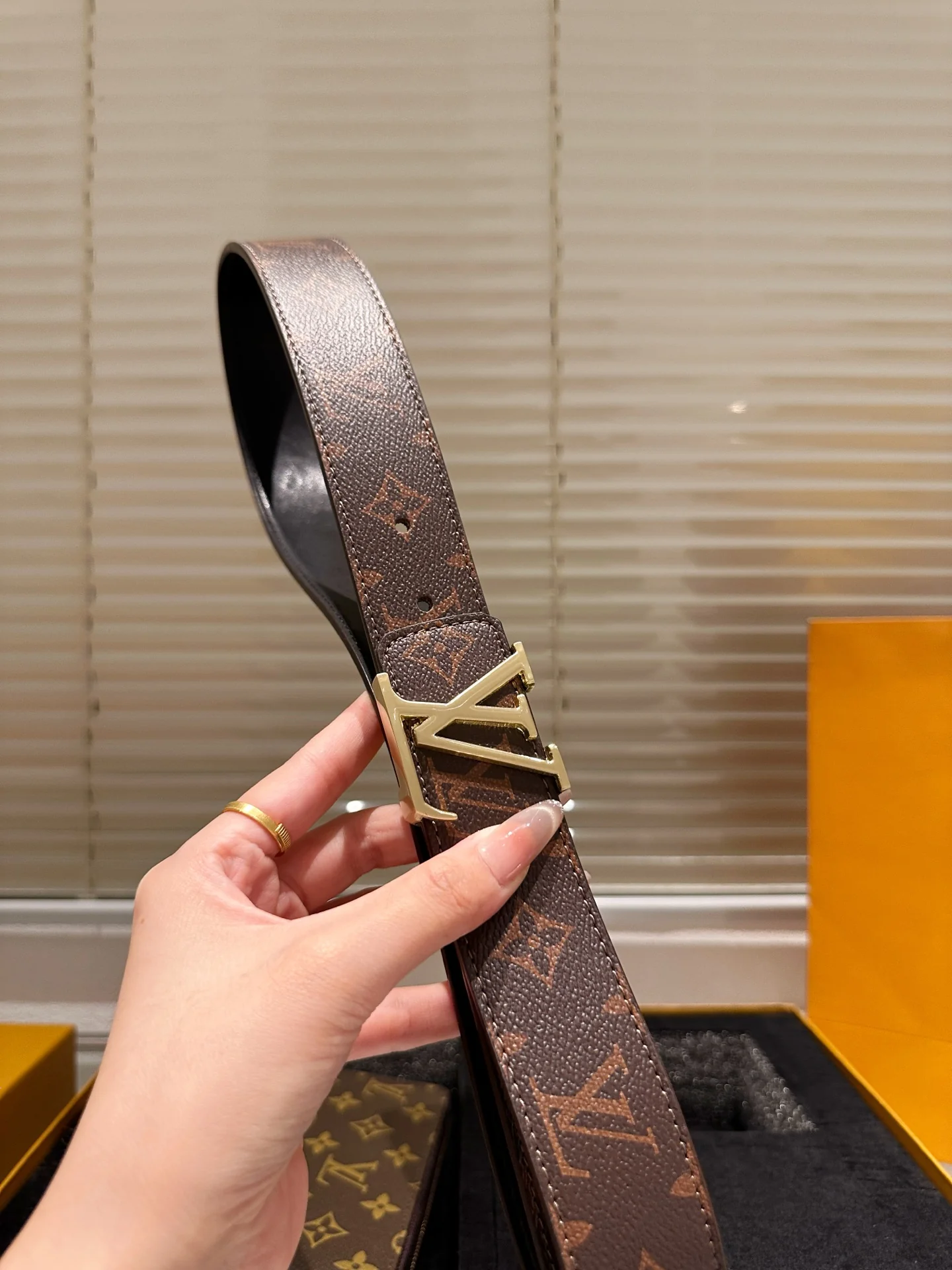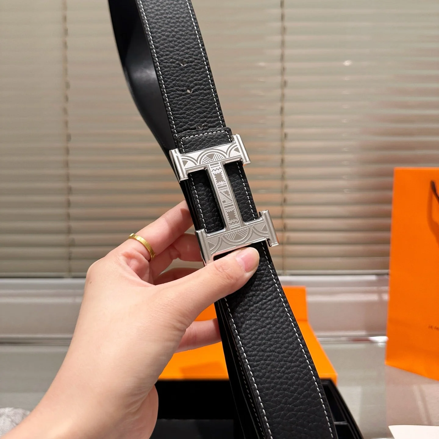 Leather belt with double metal buckle gift box
