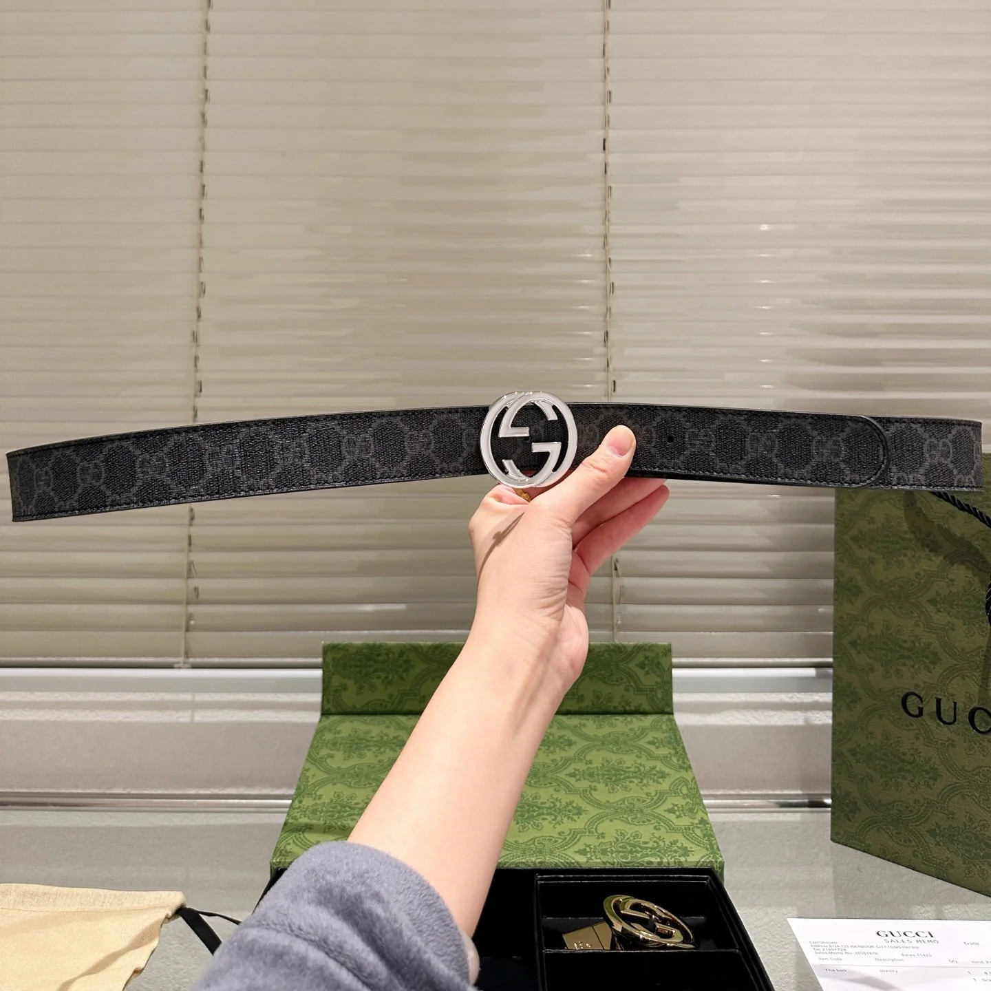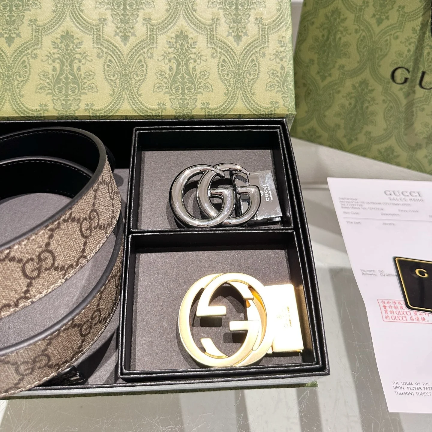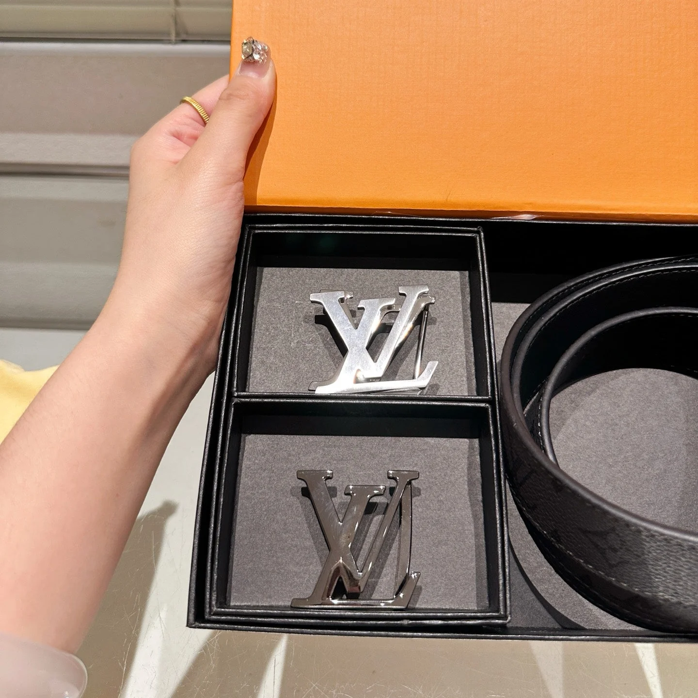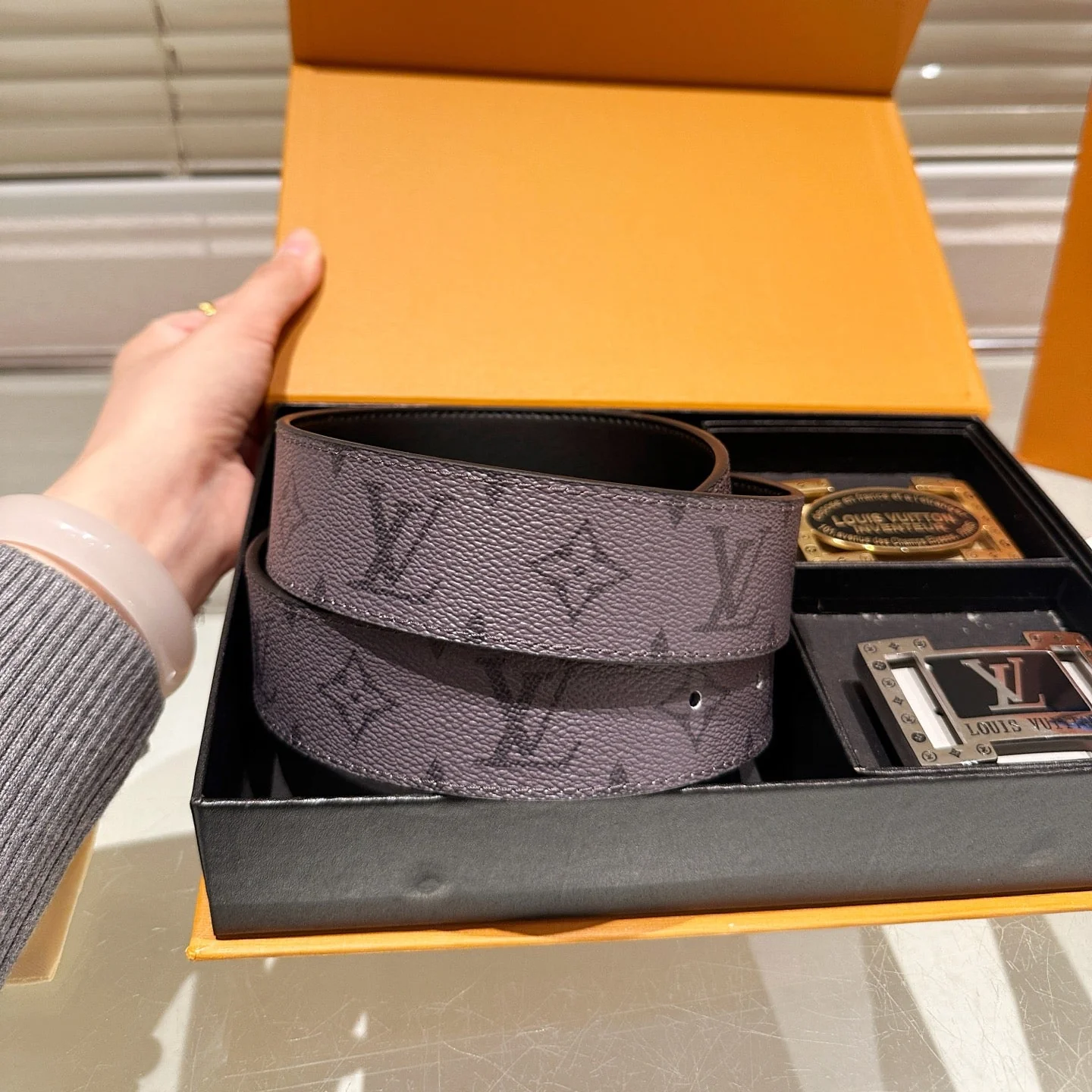 Gray Belt with Double Buckles Gift Box