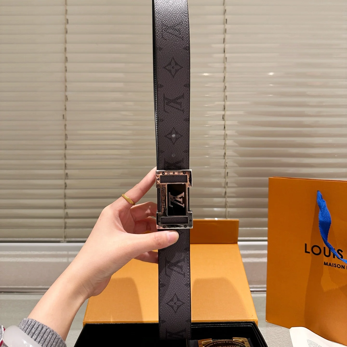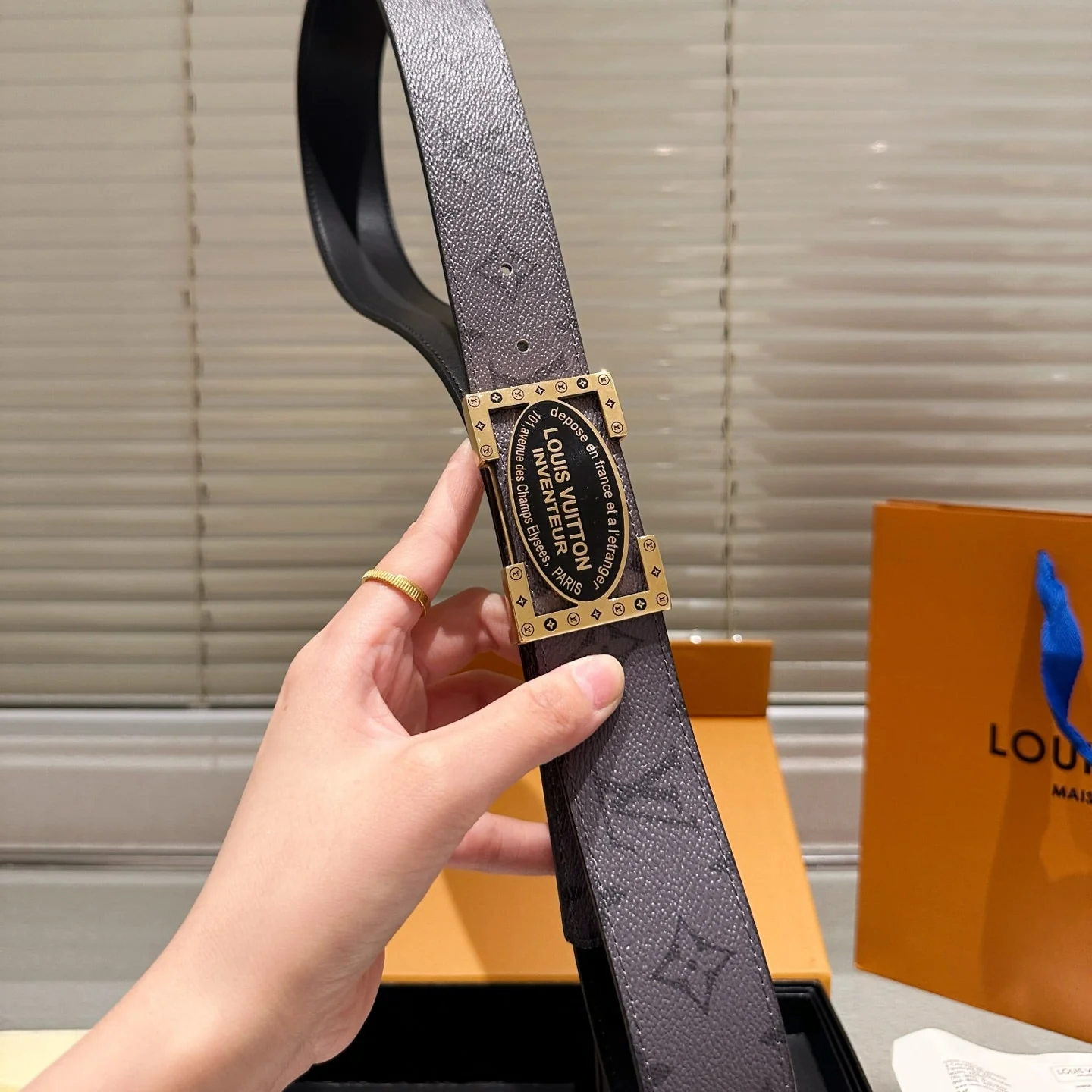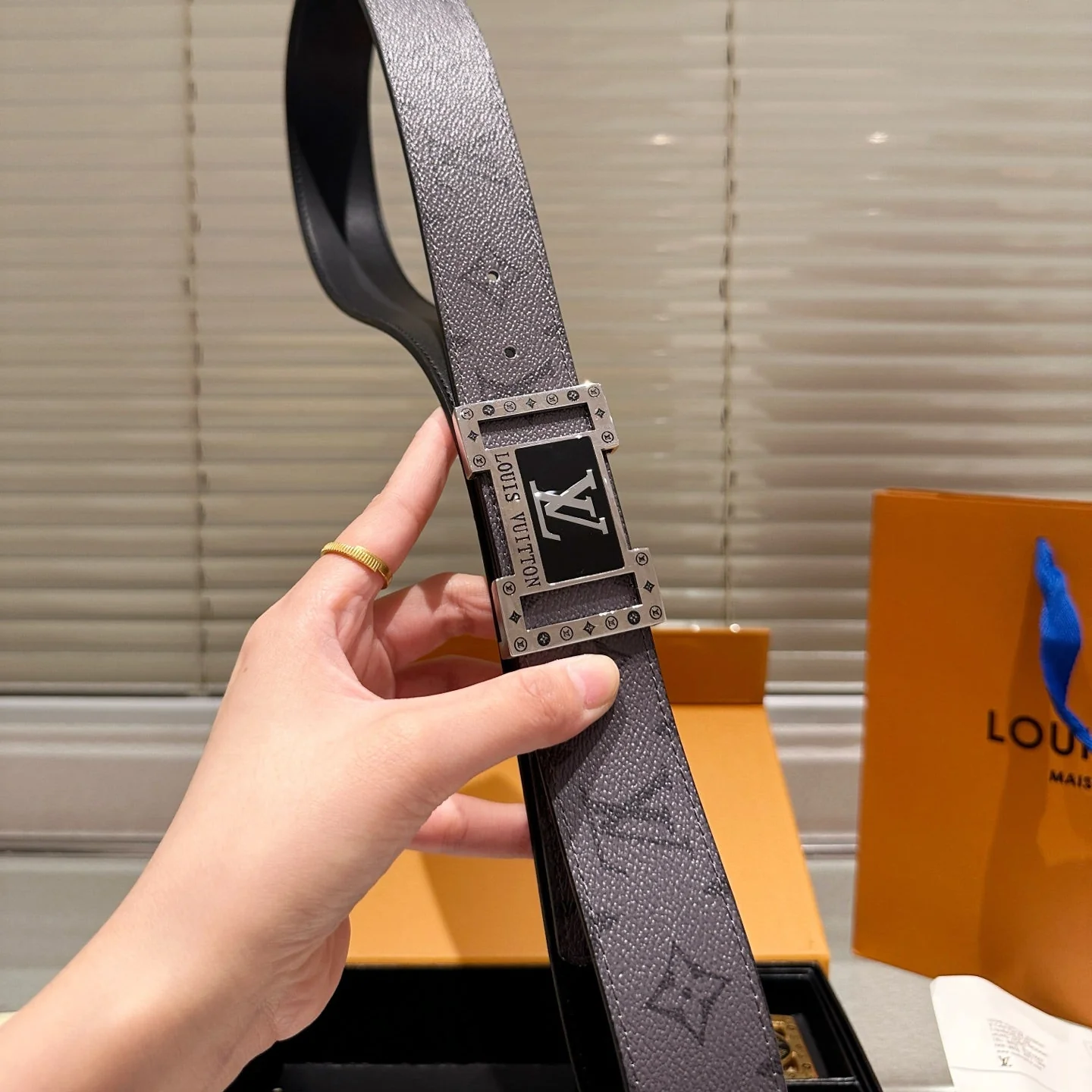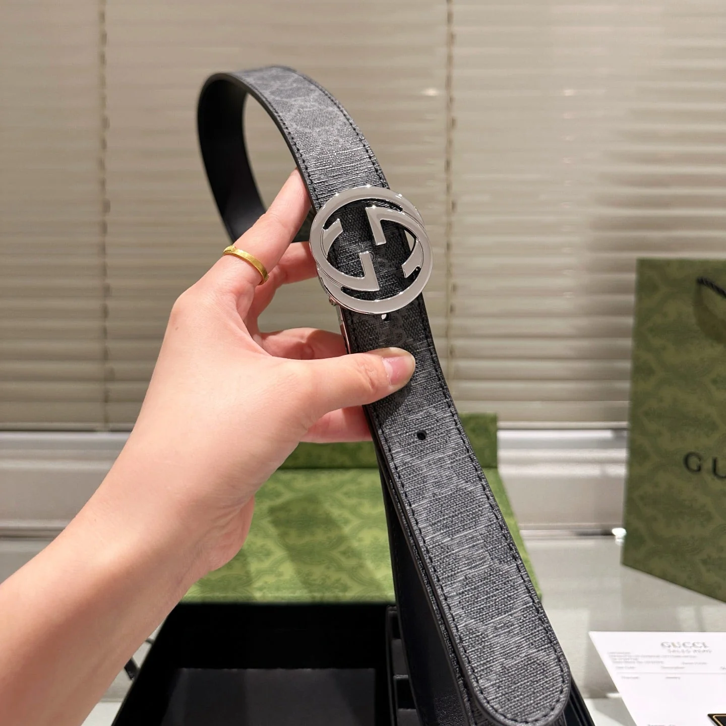 Gray Belt with Double Buckles Gift Box