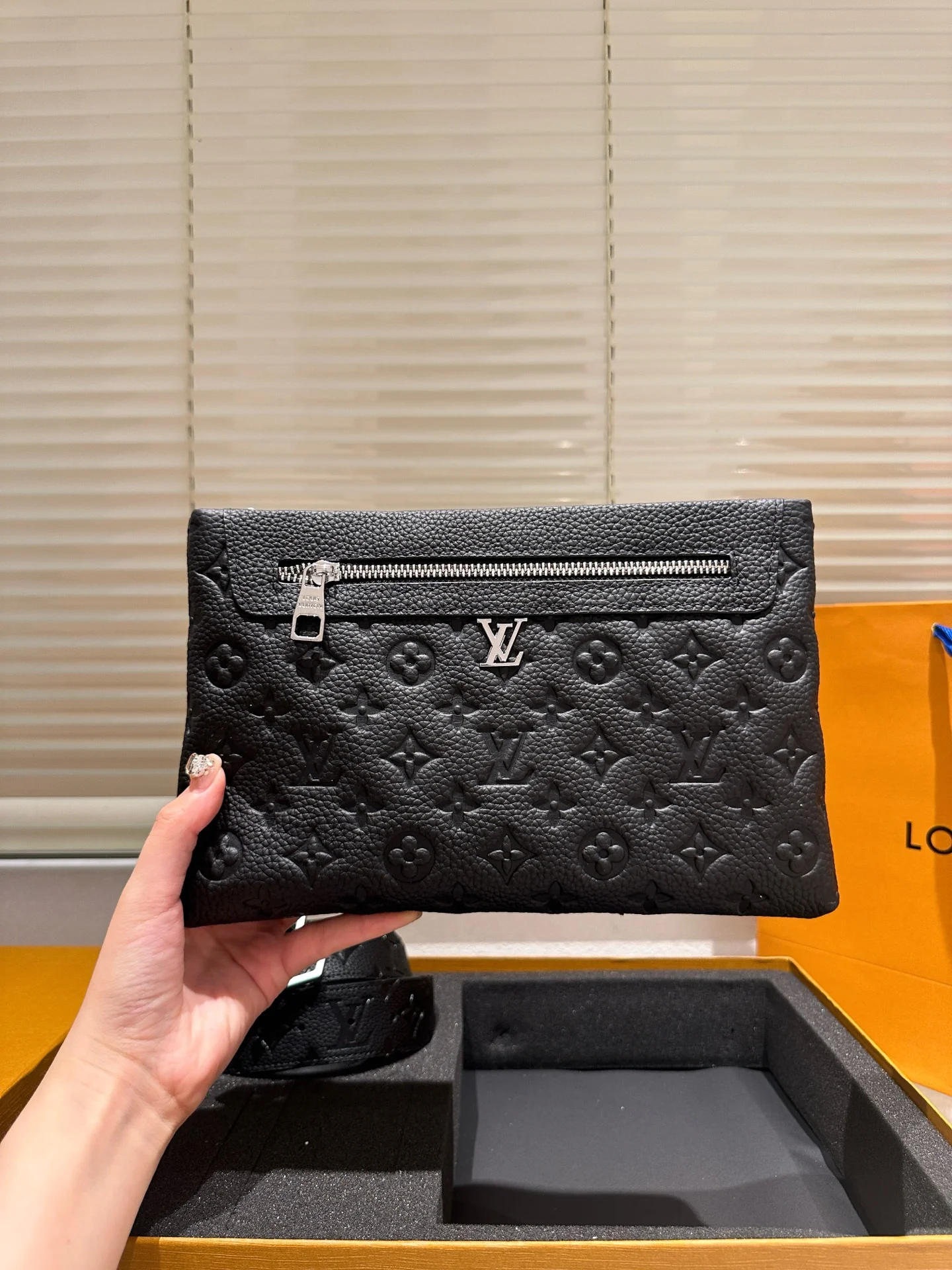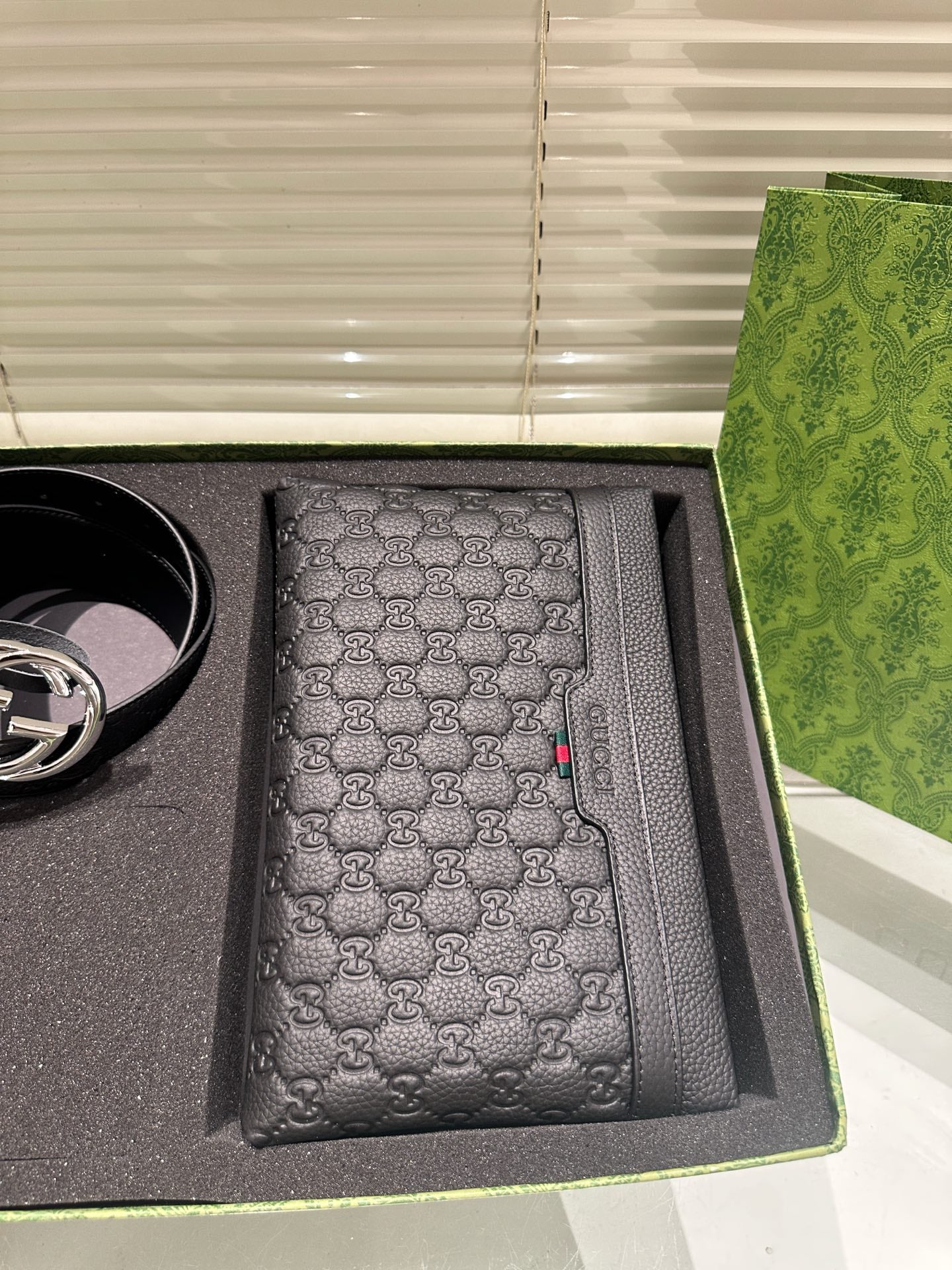 Black Embossed Clutch + Belt Gift Box