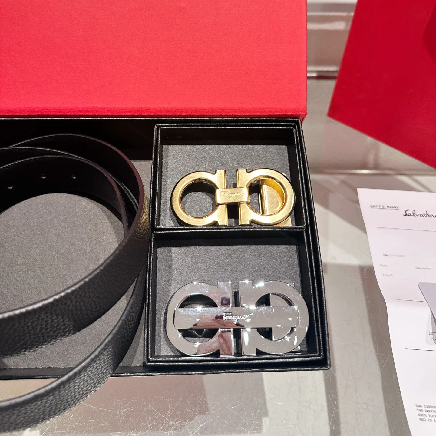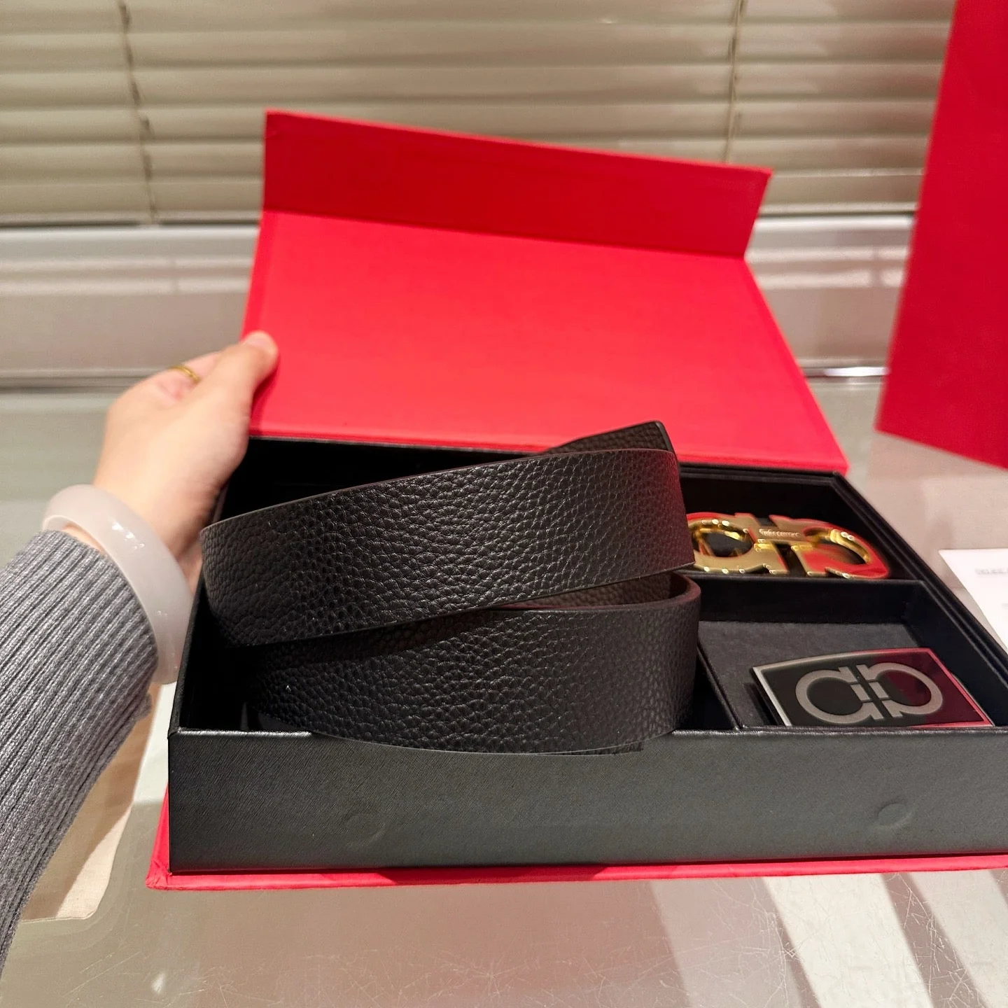Men's Gold & Silver Two-Buckle Belt Gift Box