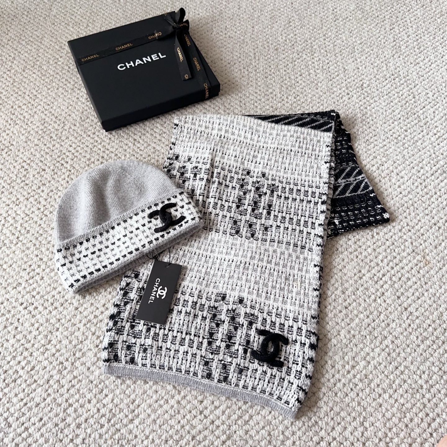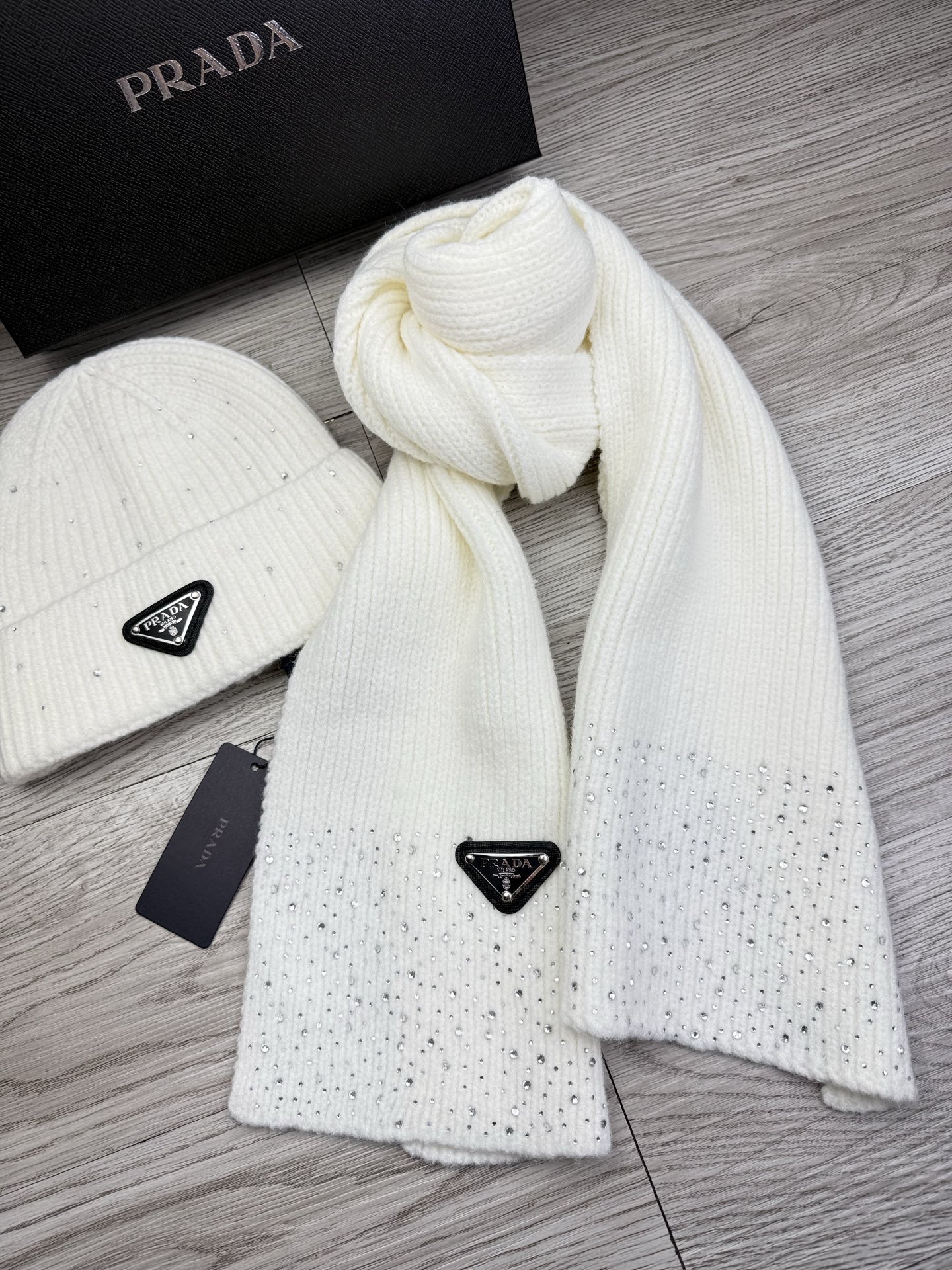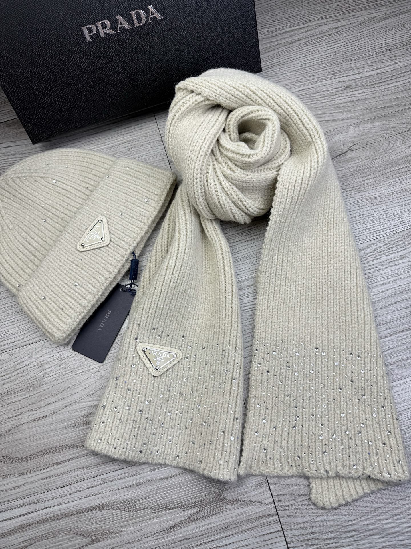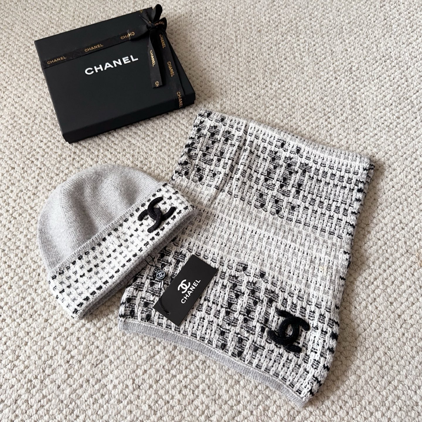 Metal logo knitted scarf and hat set