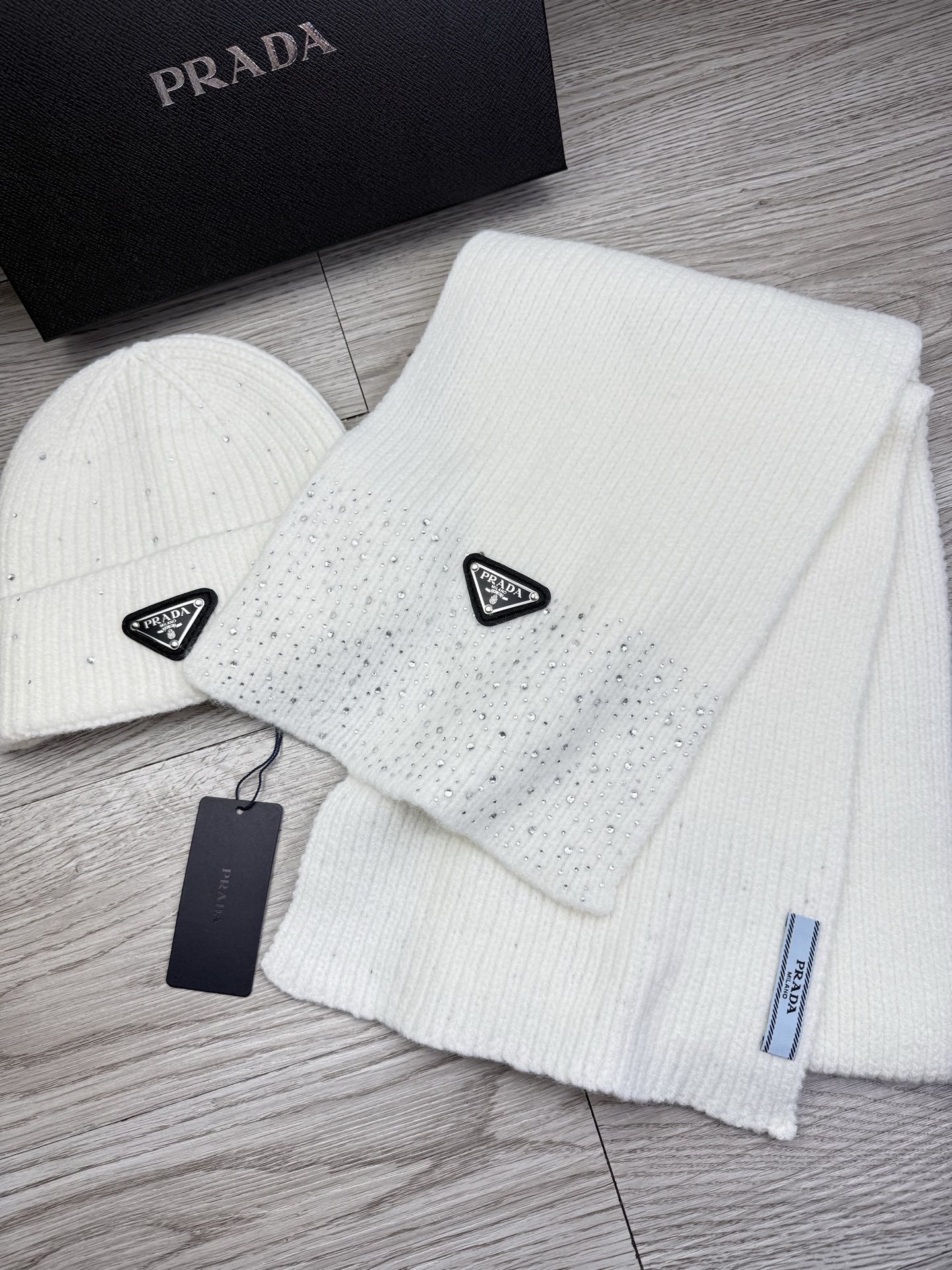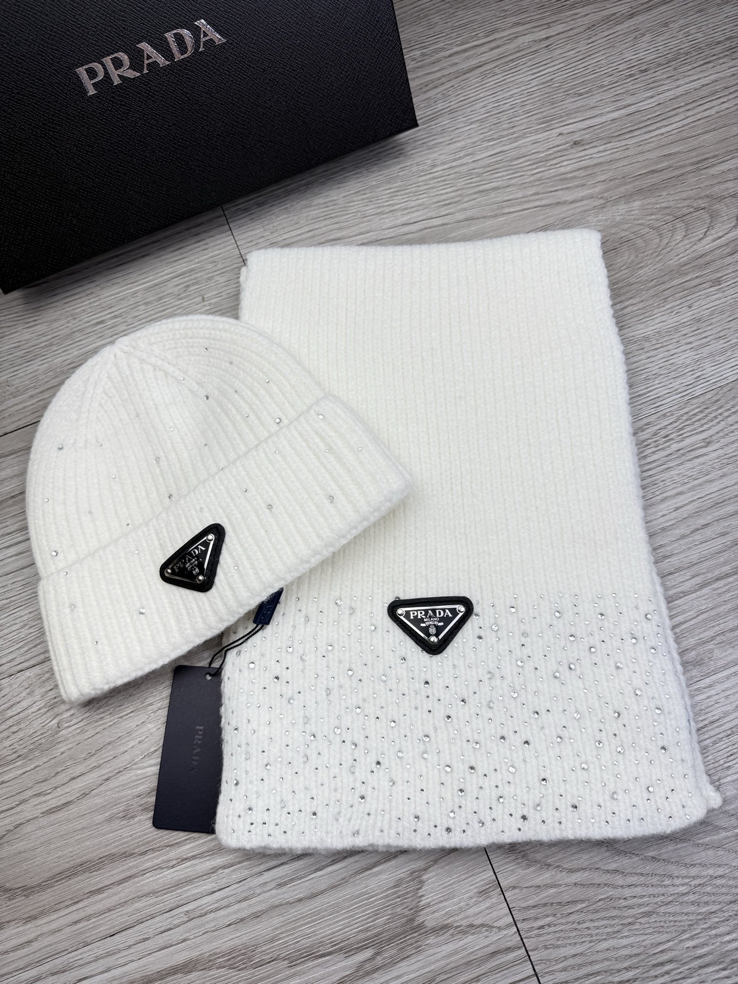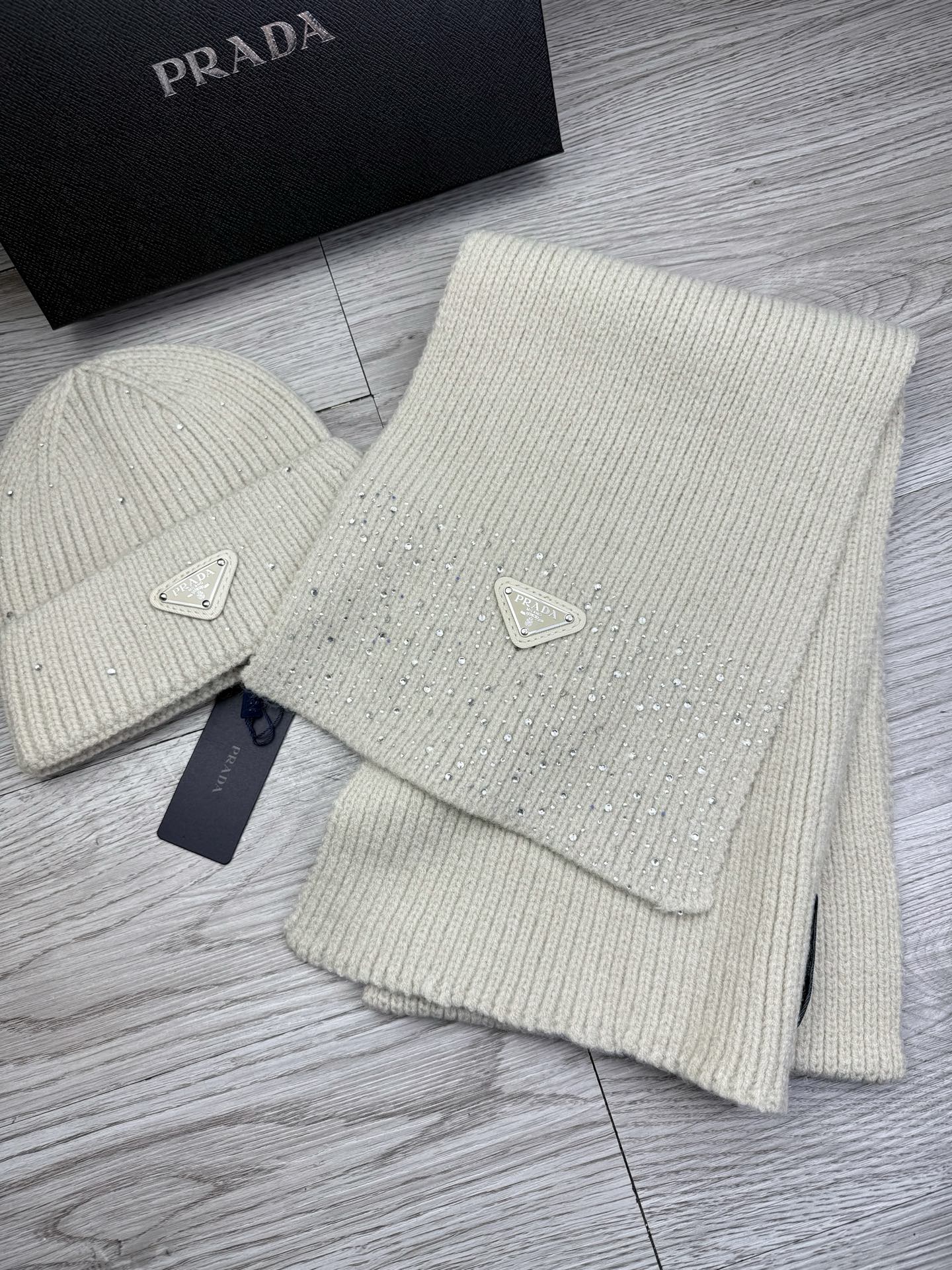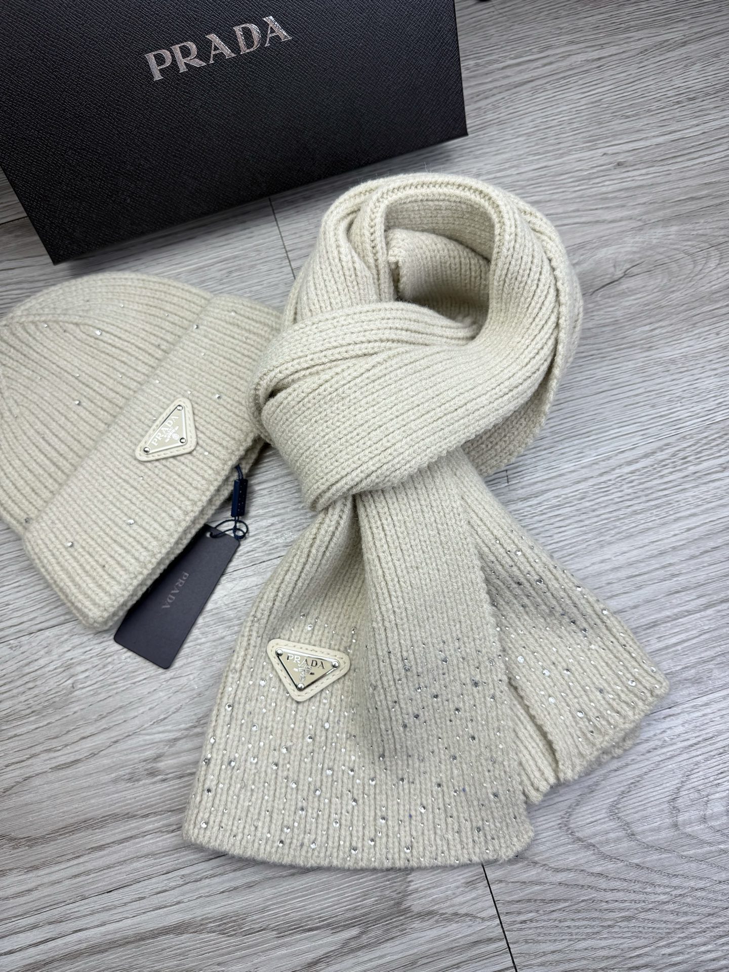 Metal logo knitted scarf and hat set