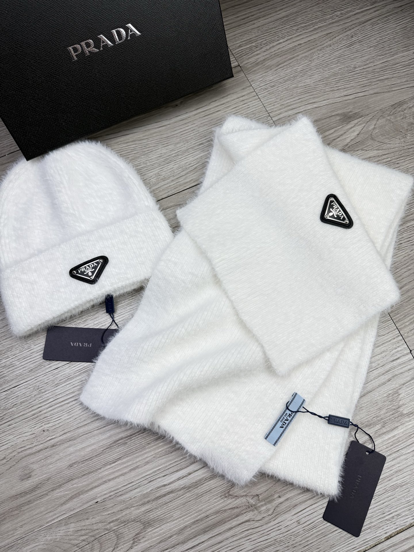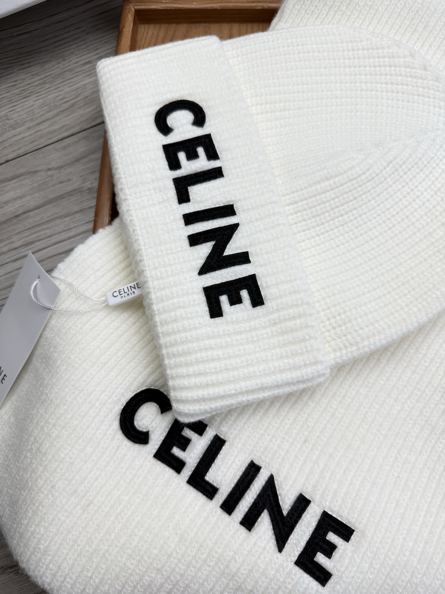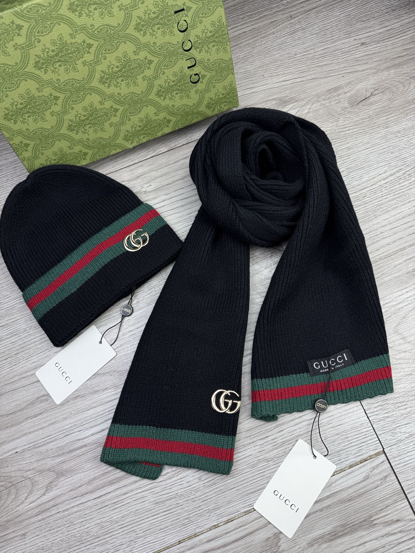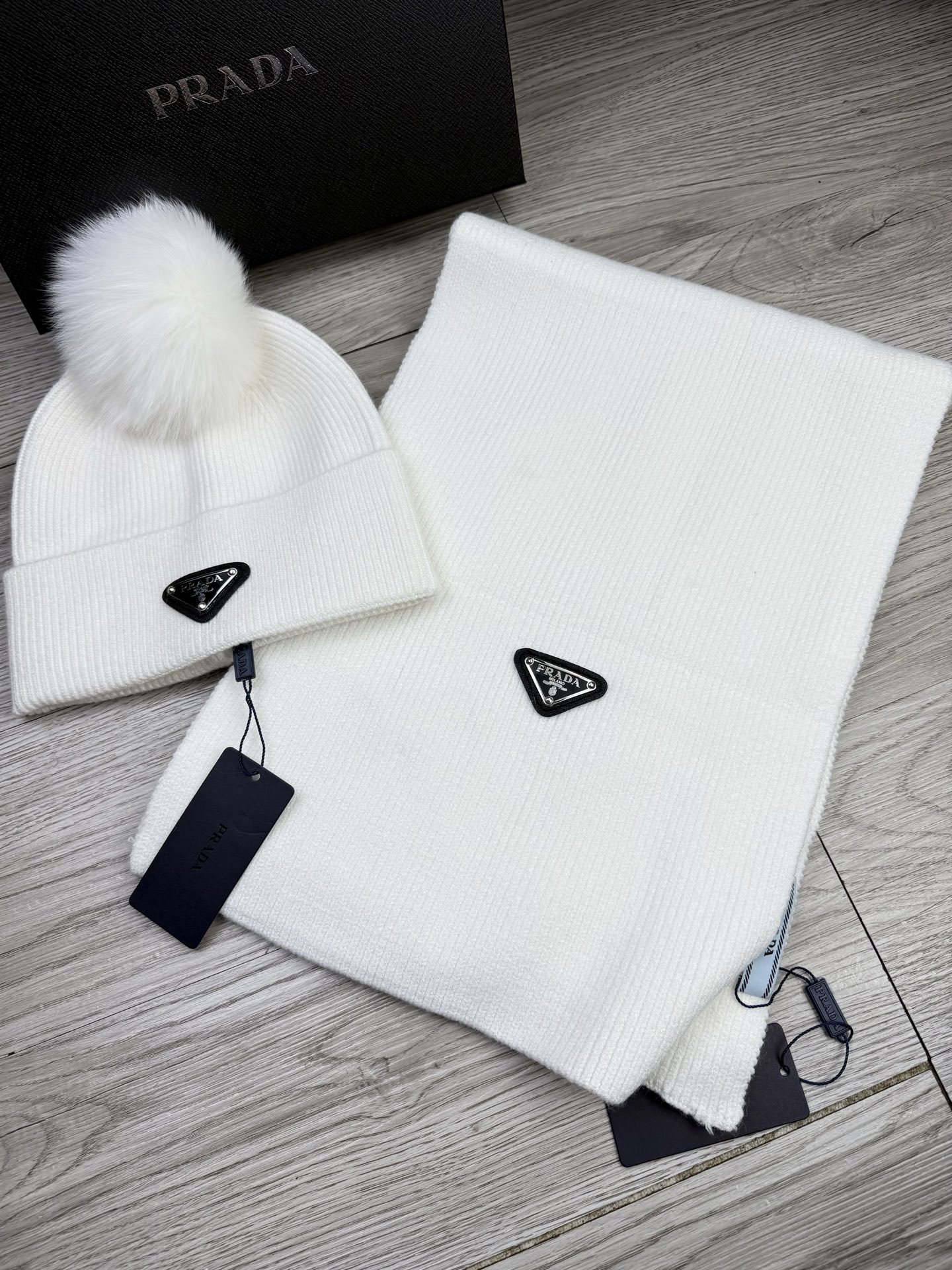 Leather logo knitted scarf and hat set