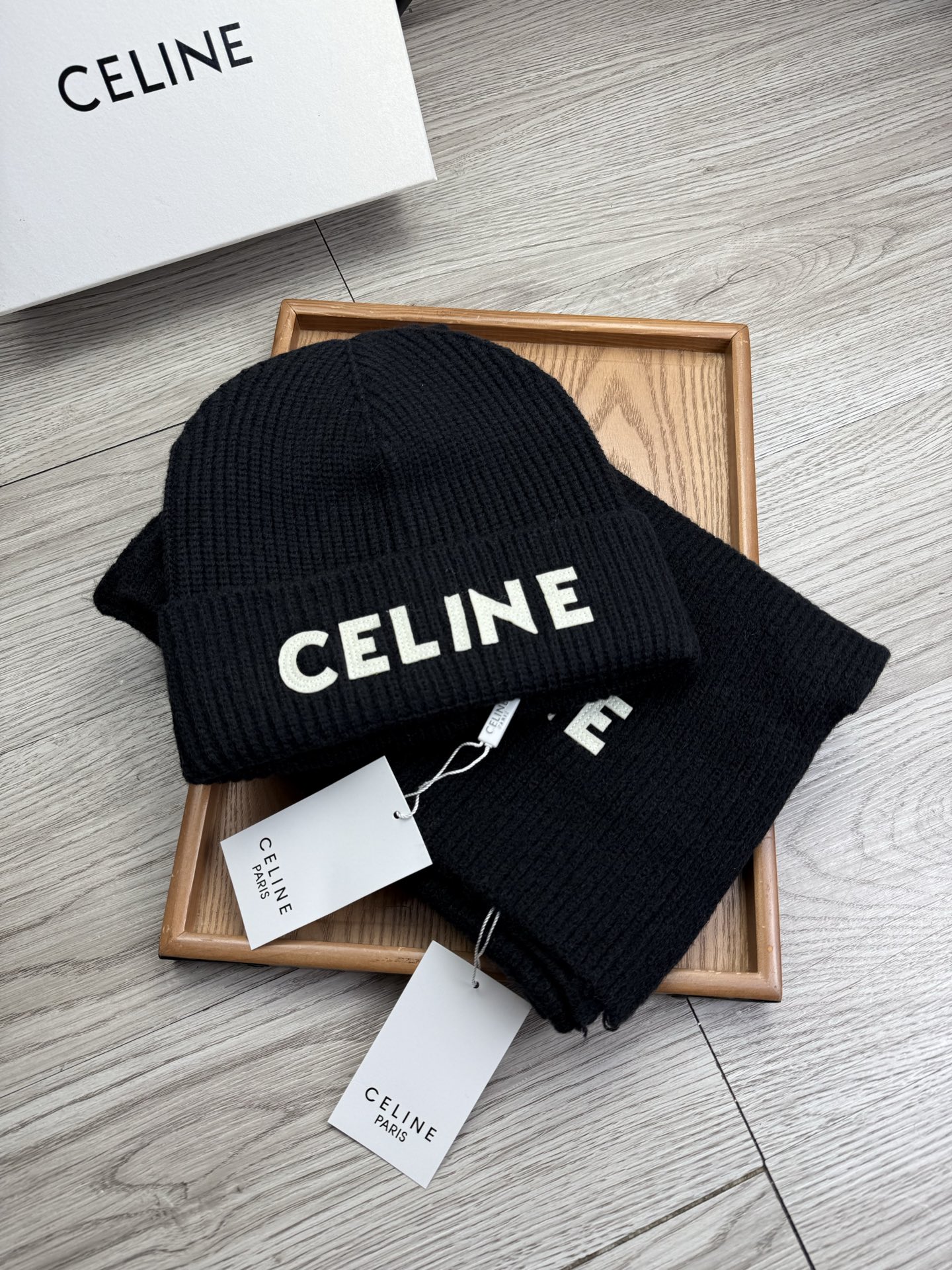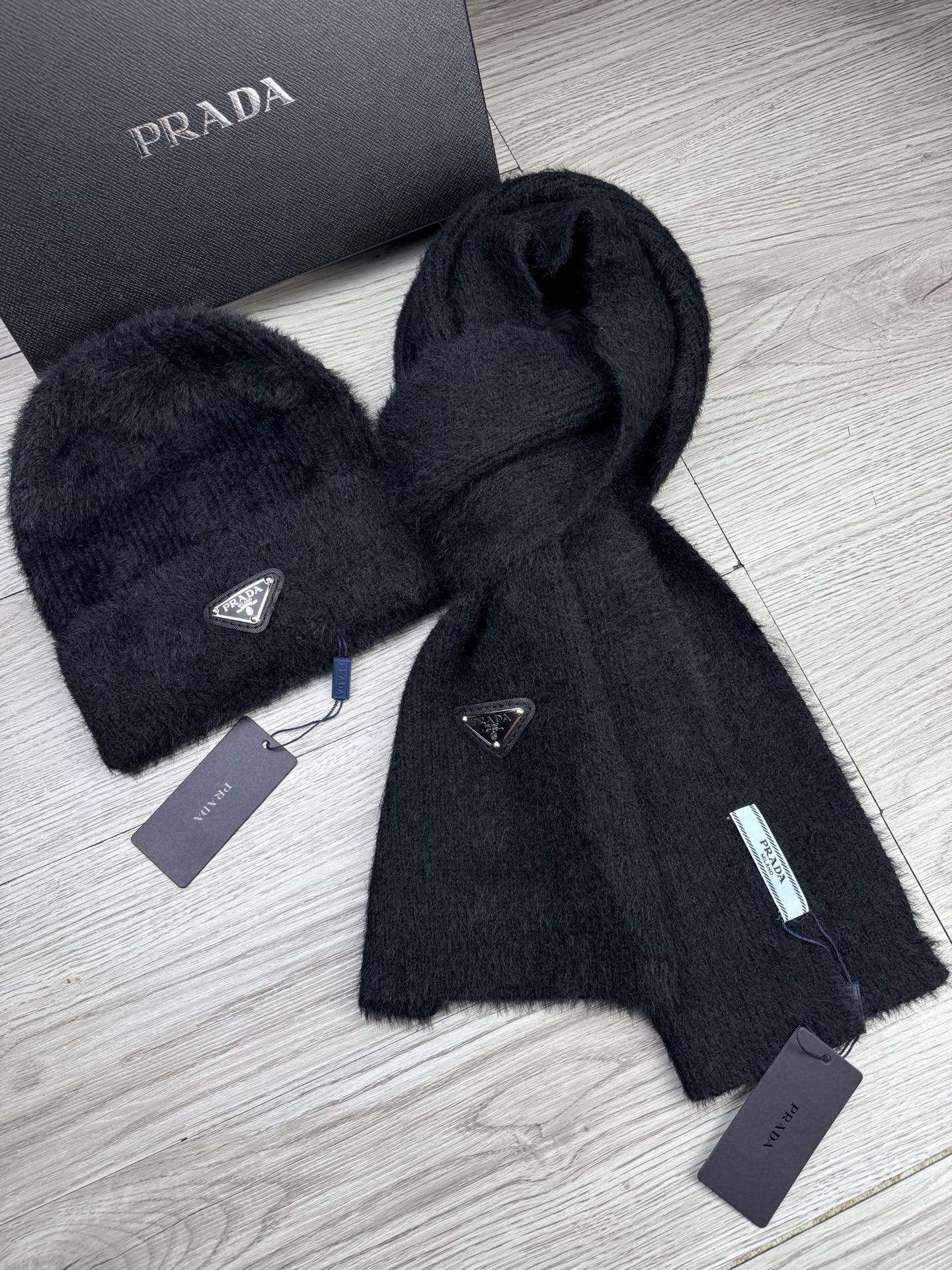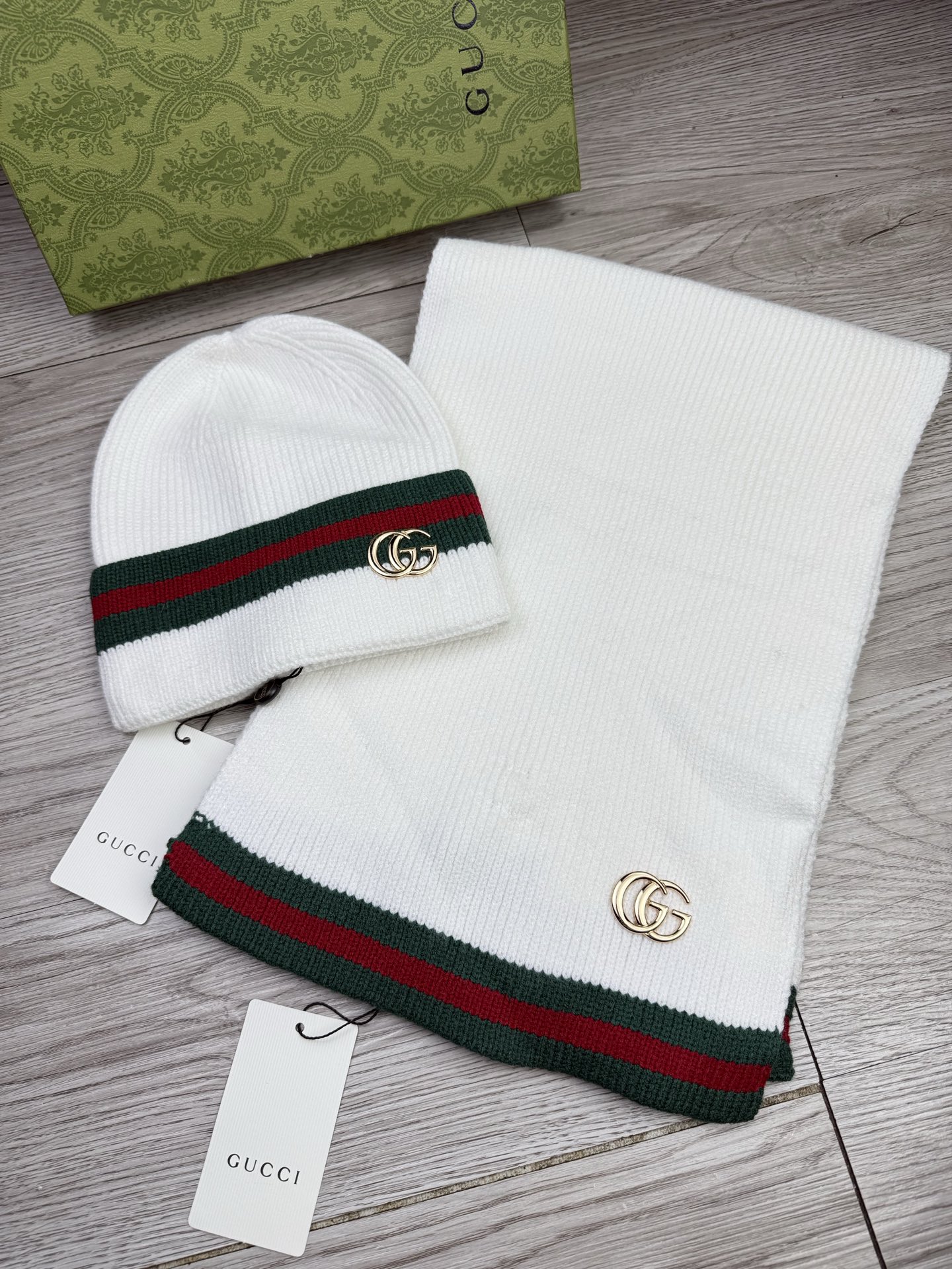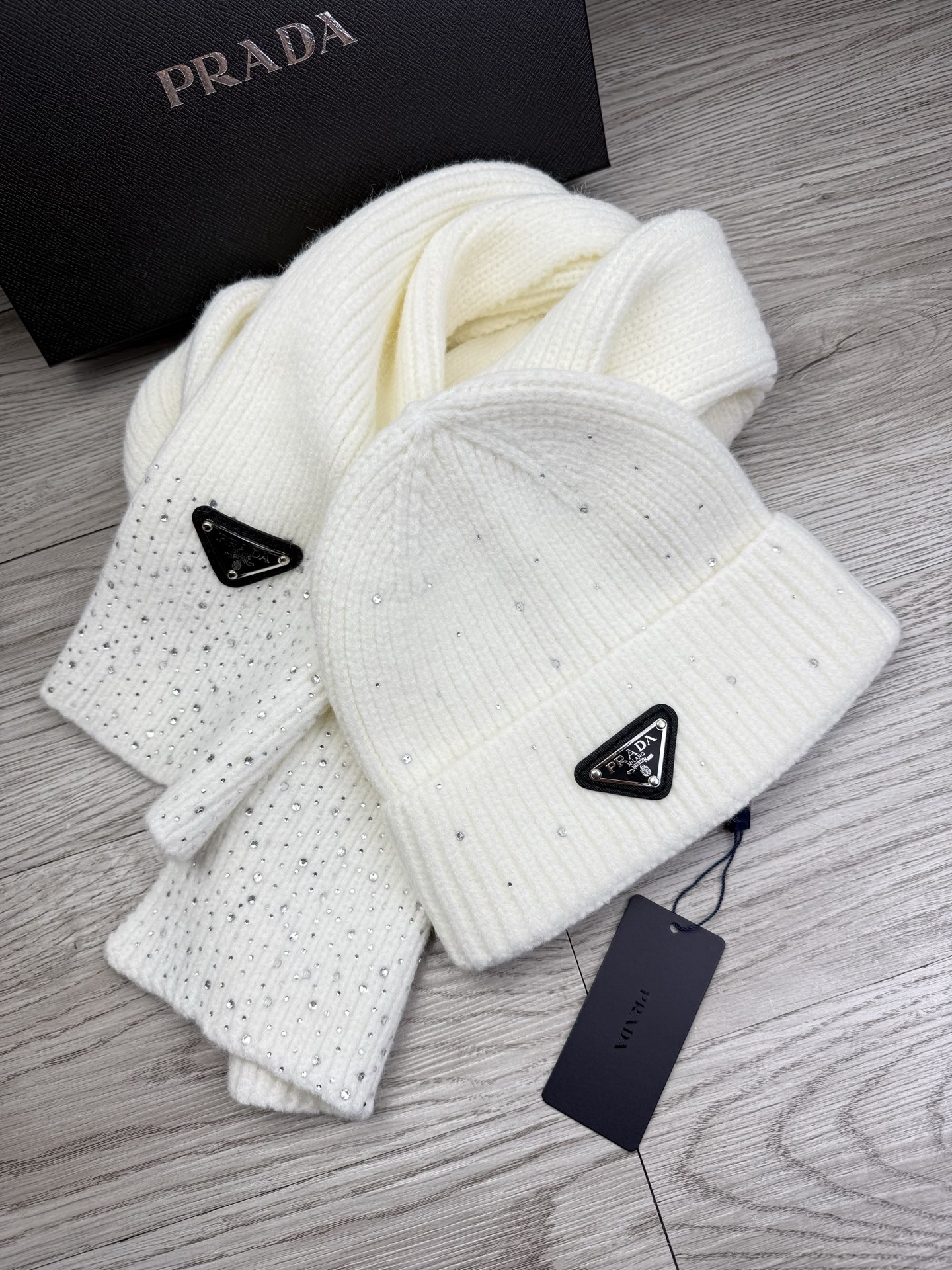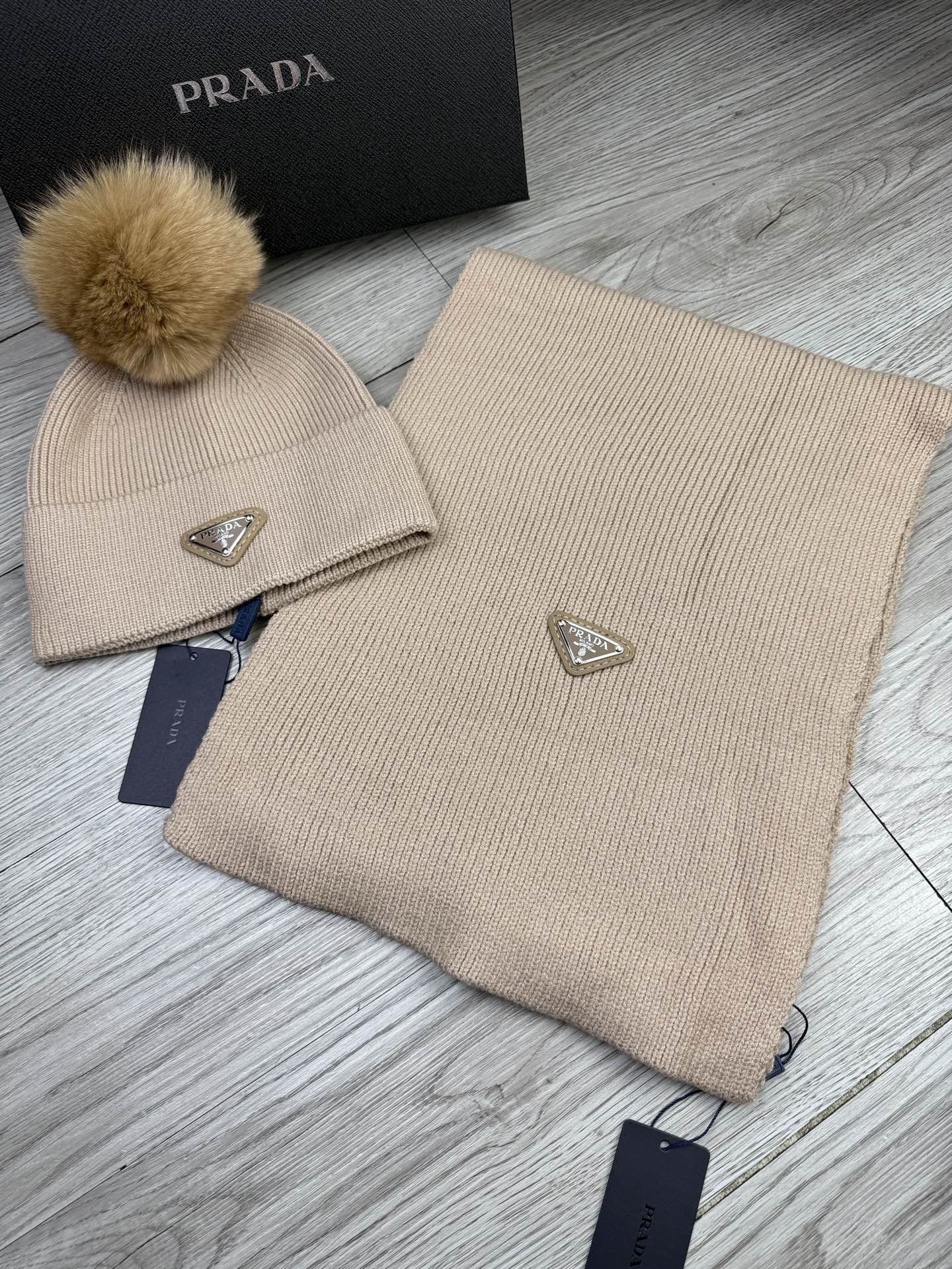 Leather logo knitted scarf and hat set