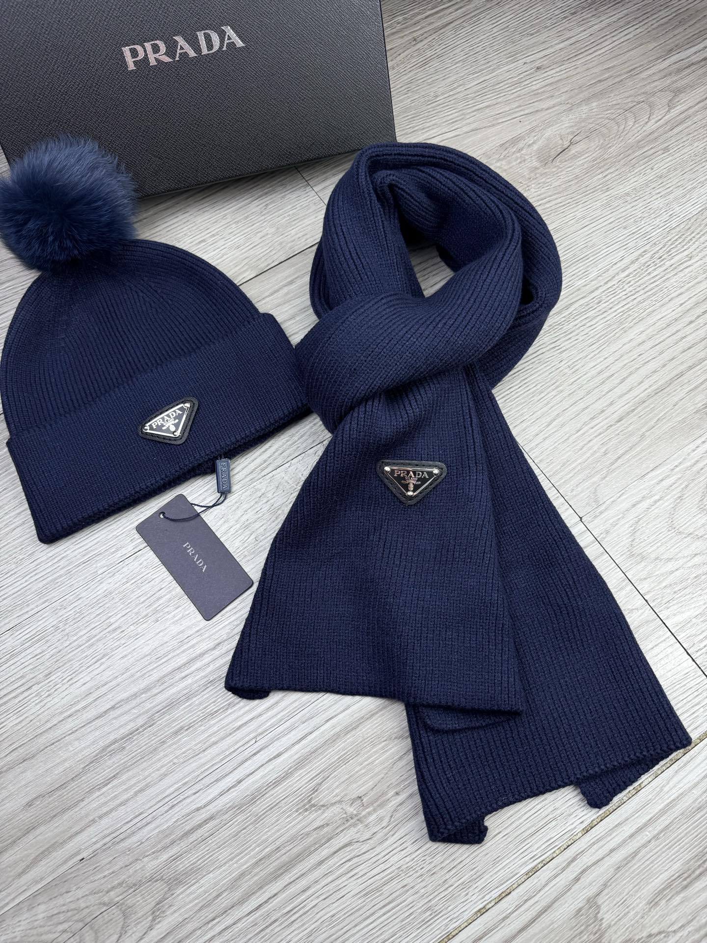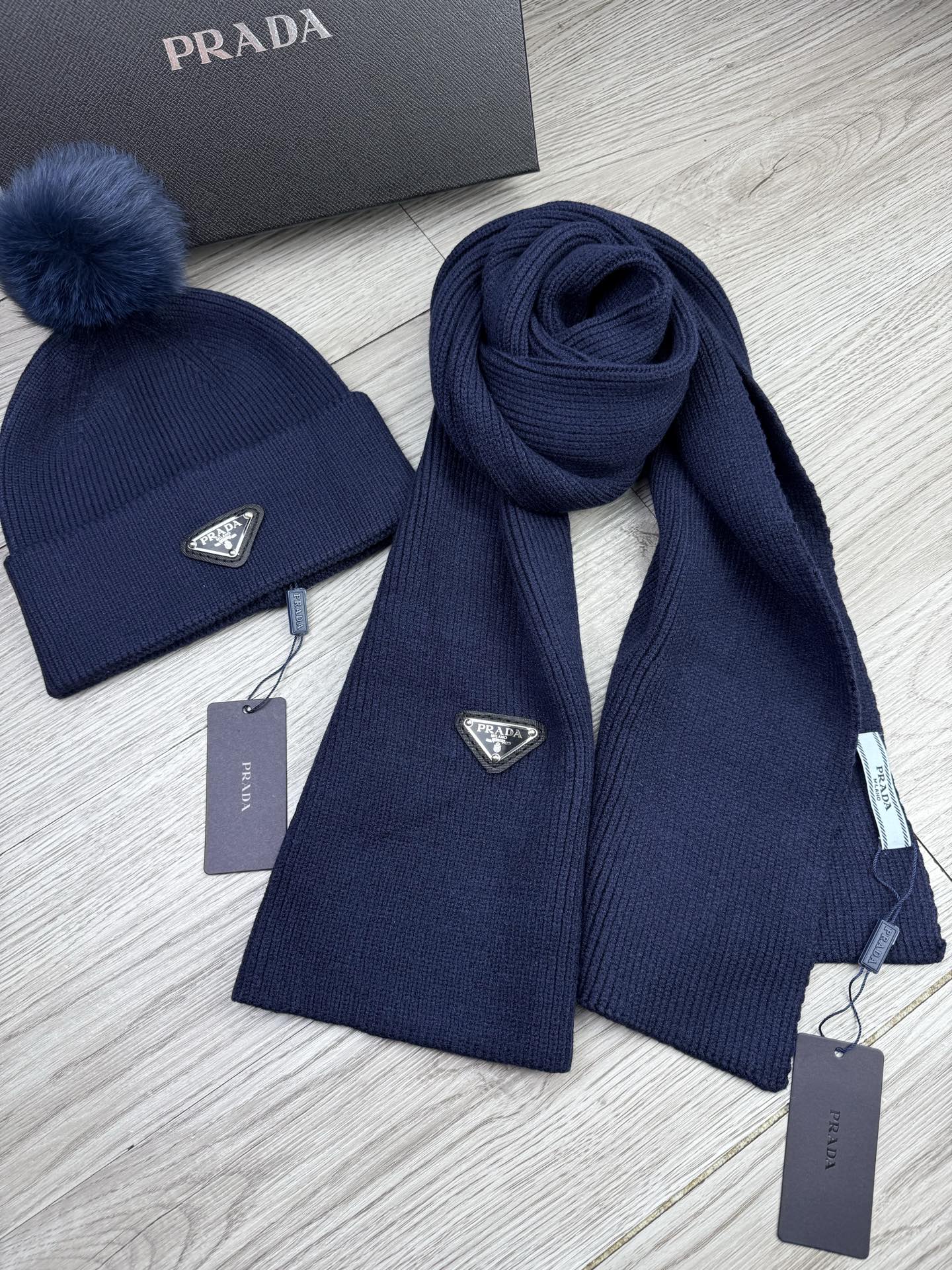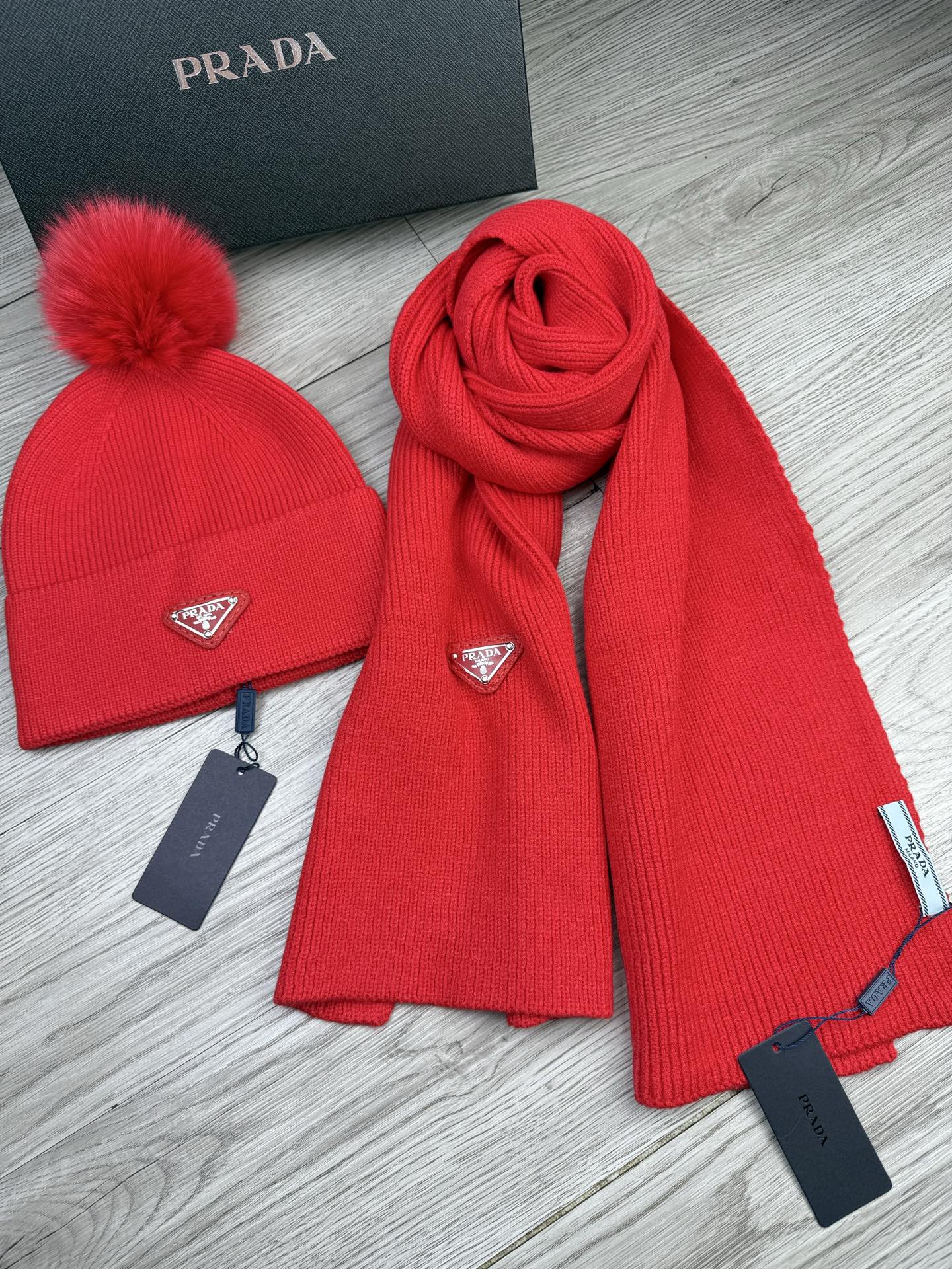 Triangle Knitted Scarf and Hat Set
