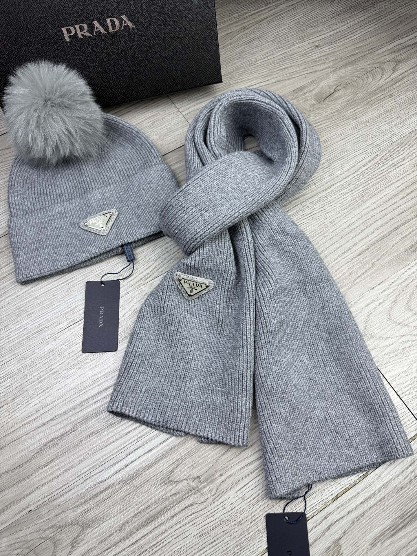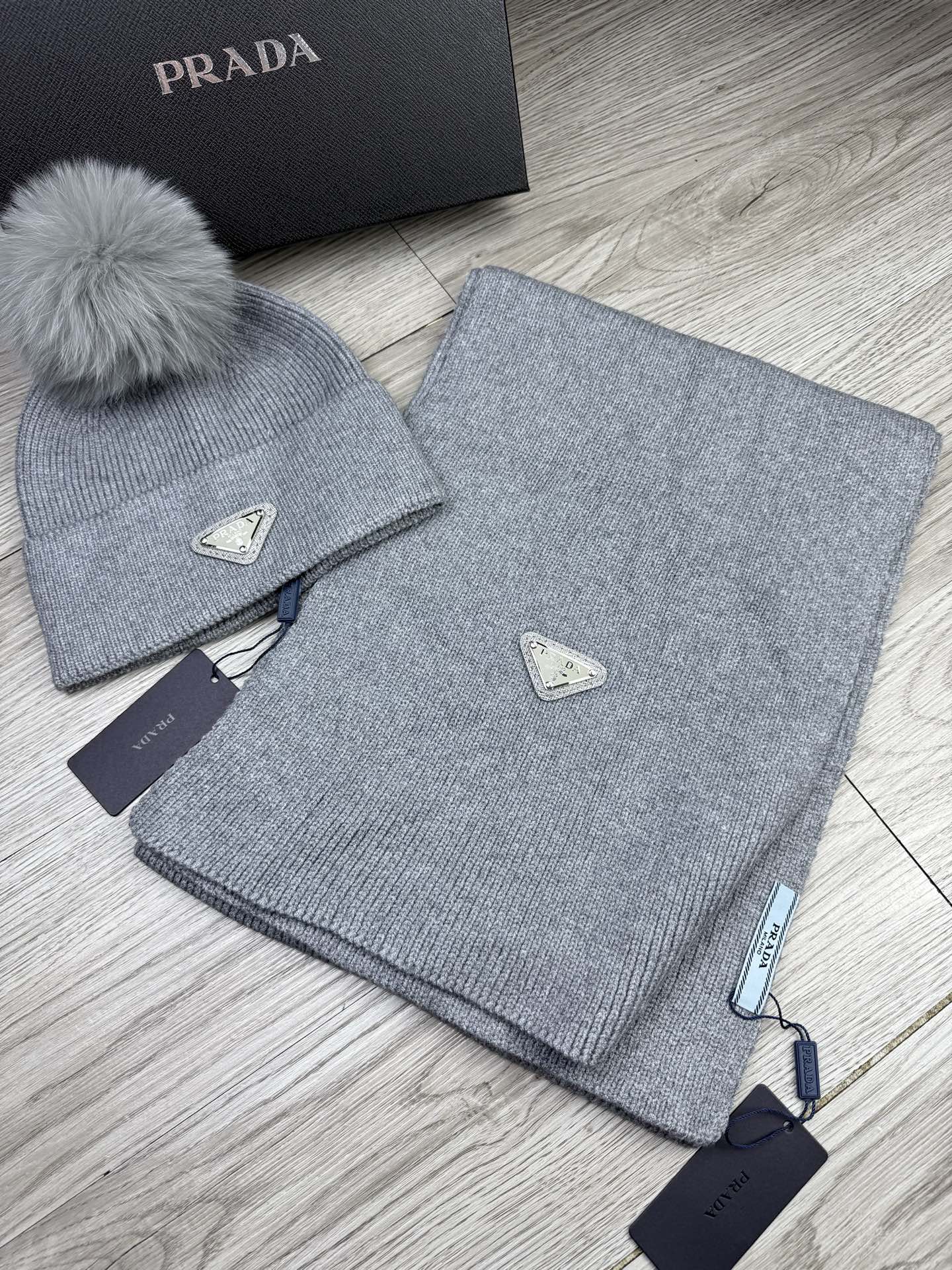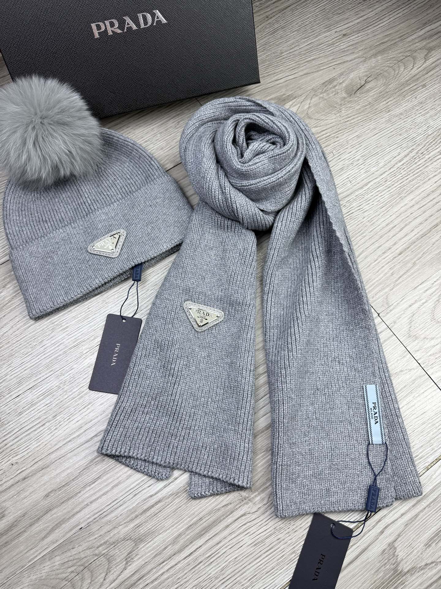 Silver Triangle Knitted Scarf and Hat Set