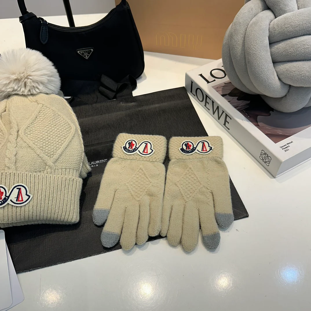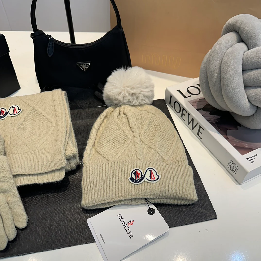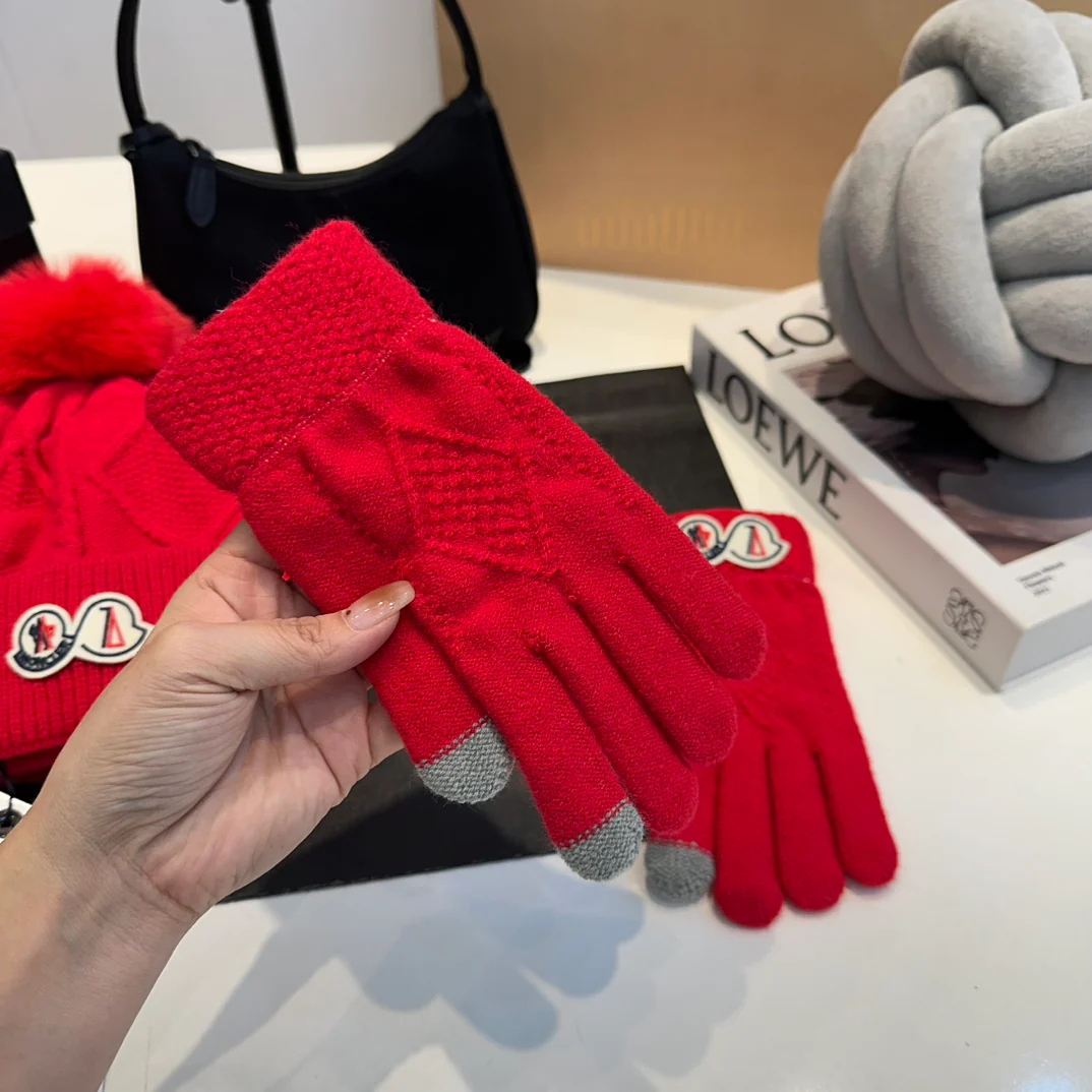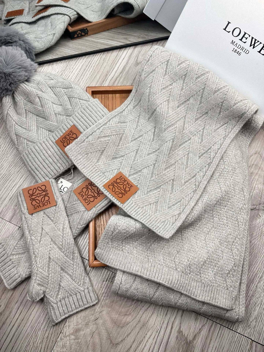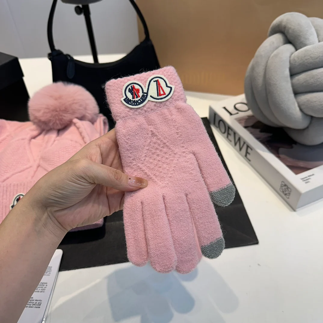 Leather label knitted scarf hat gloves set