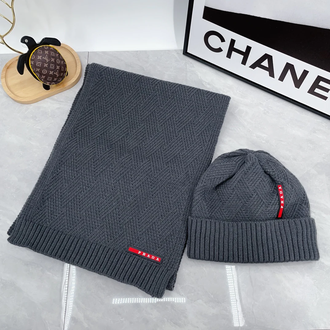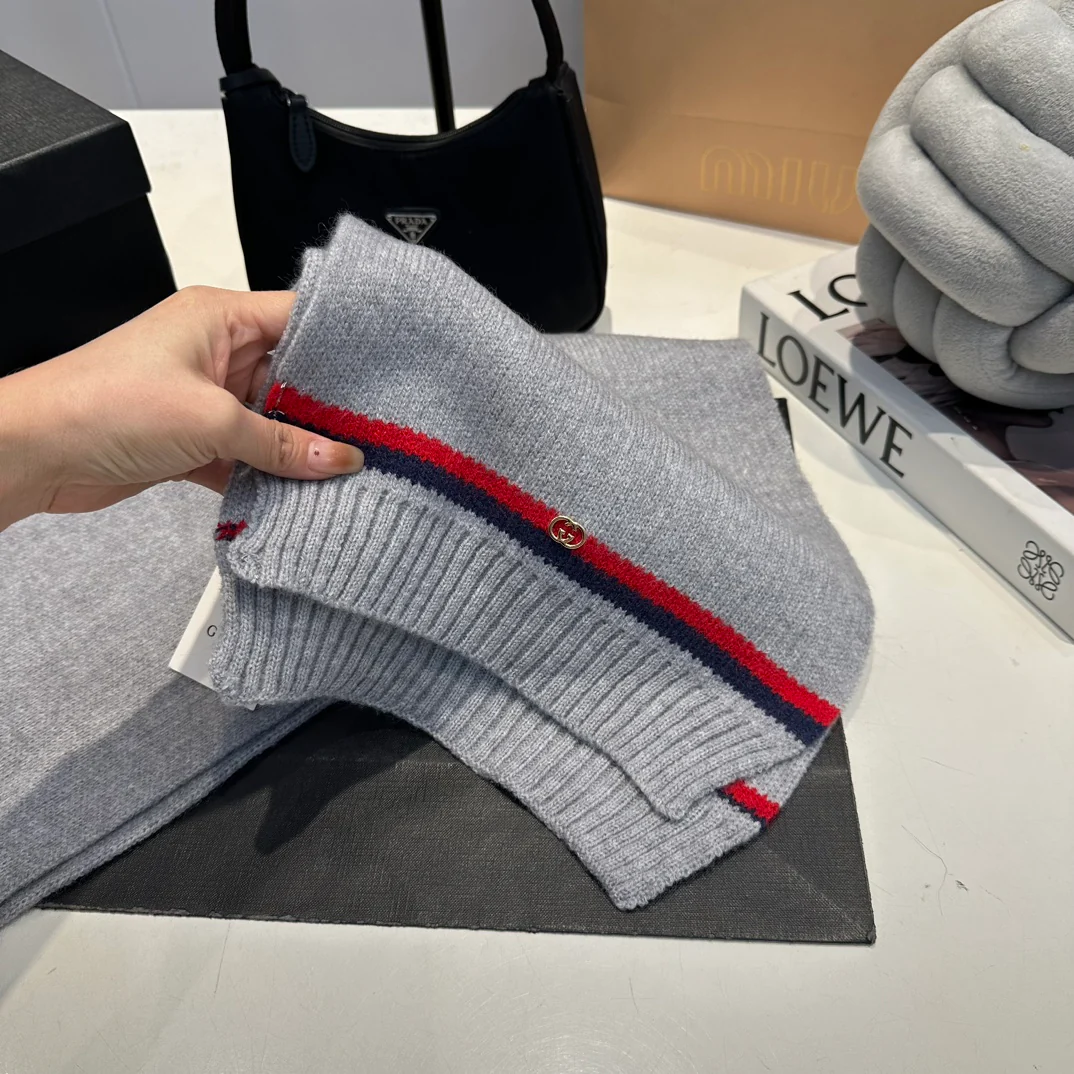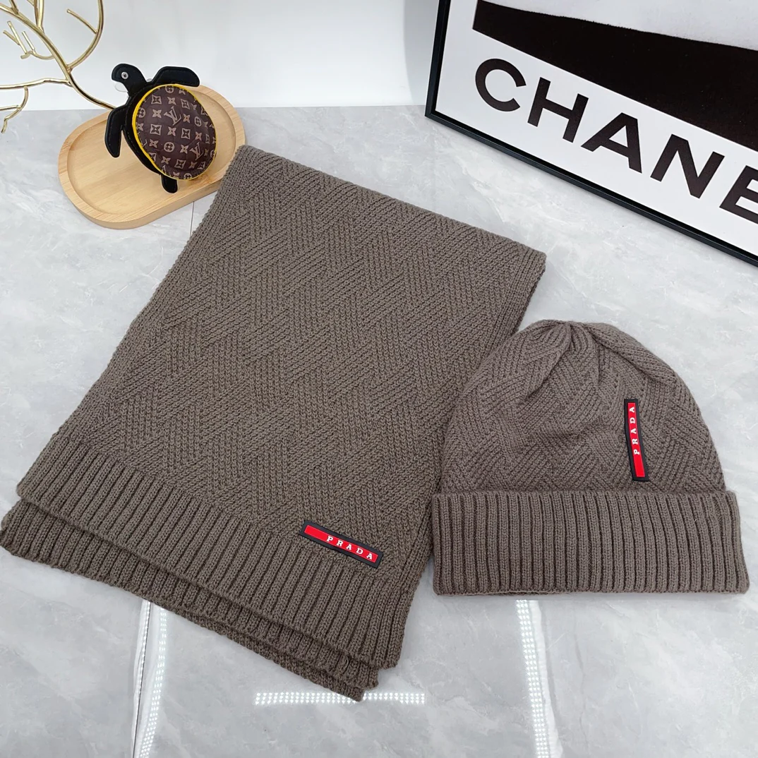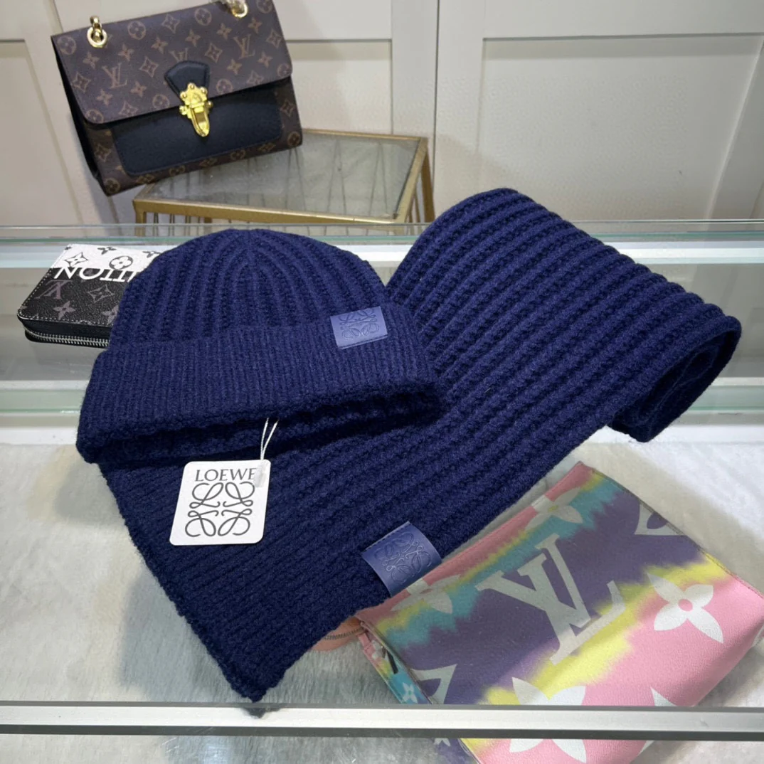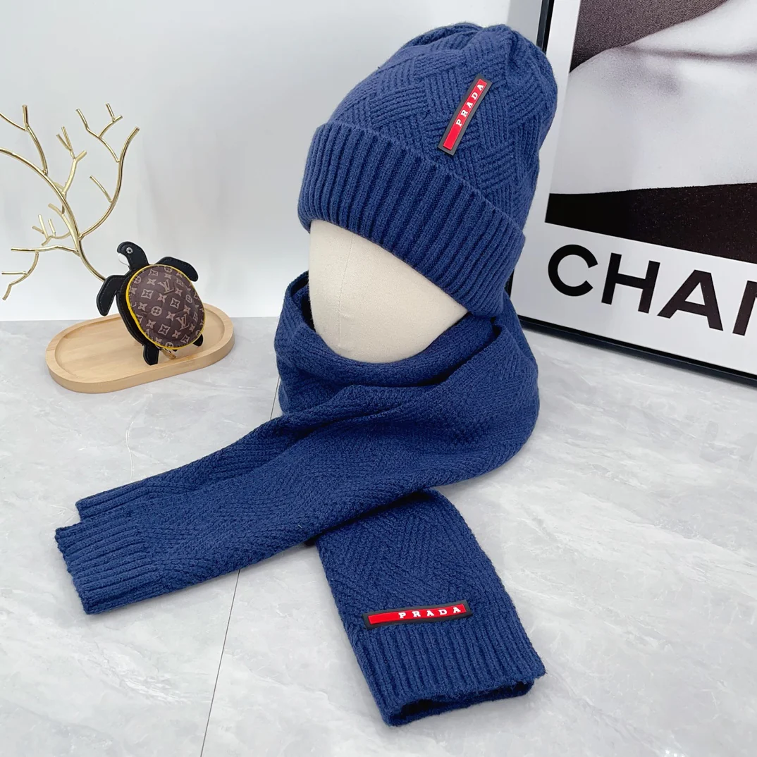 Leather label knitted scarf hat gloves set