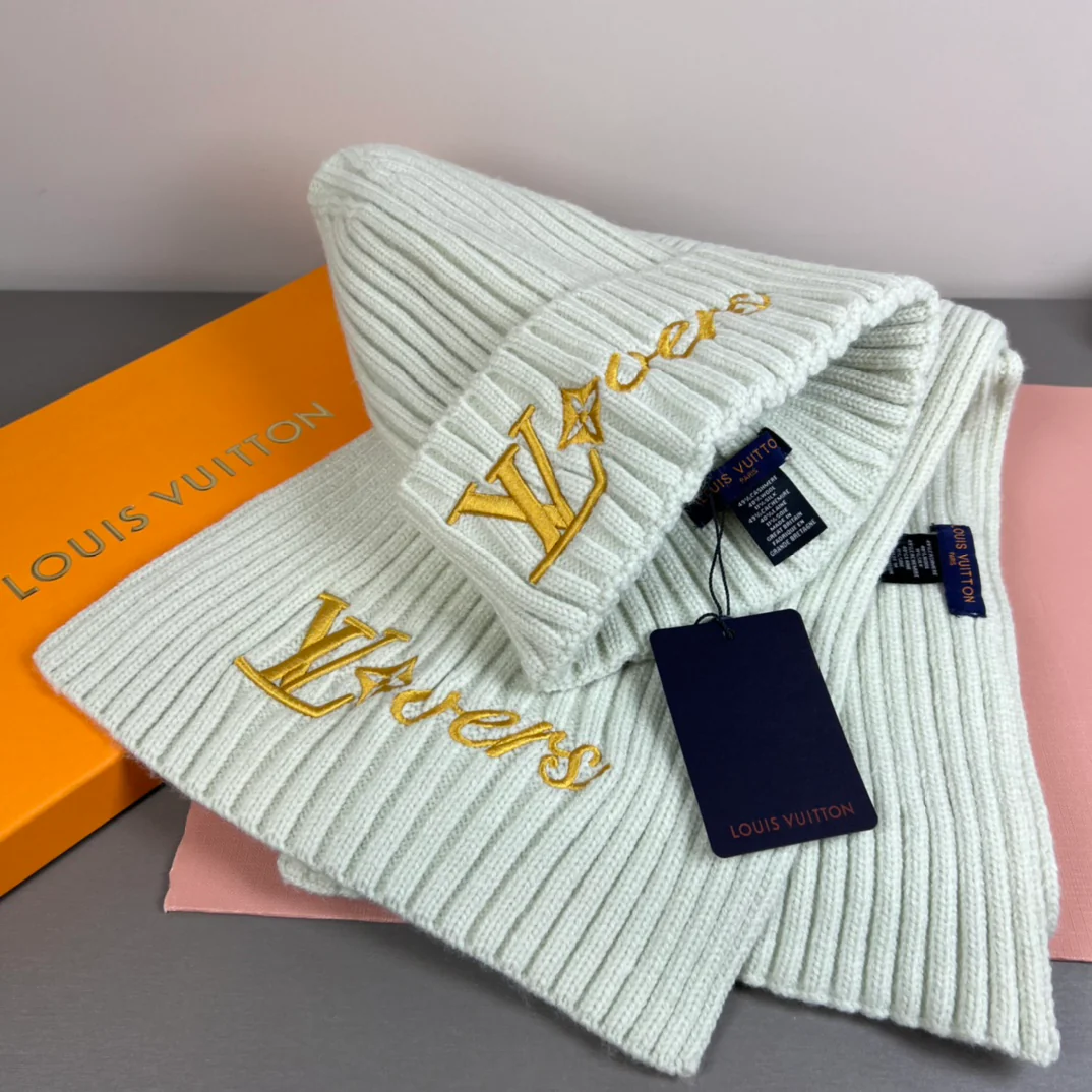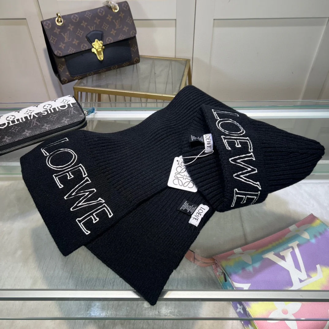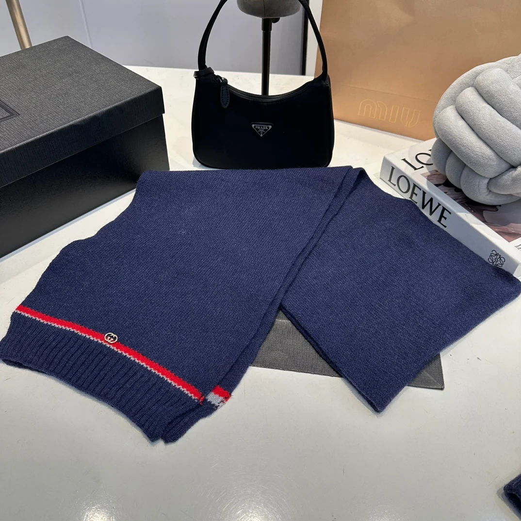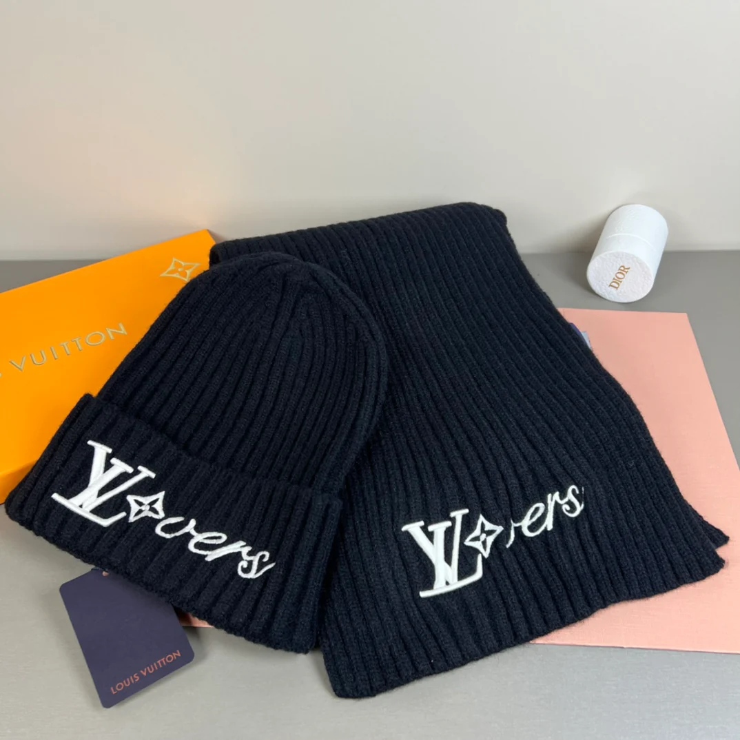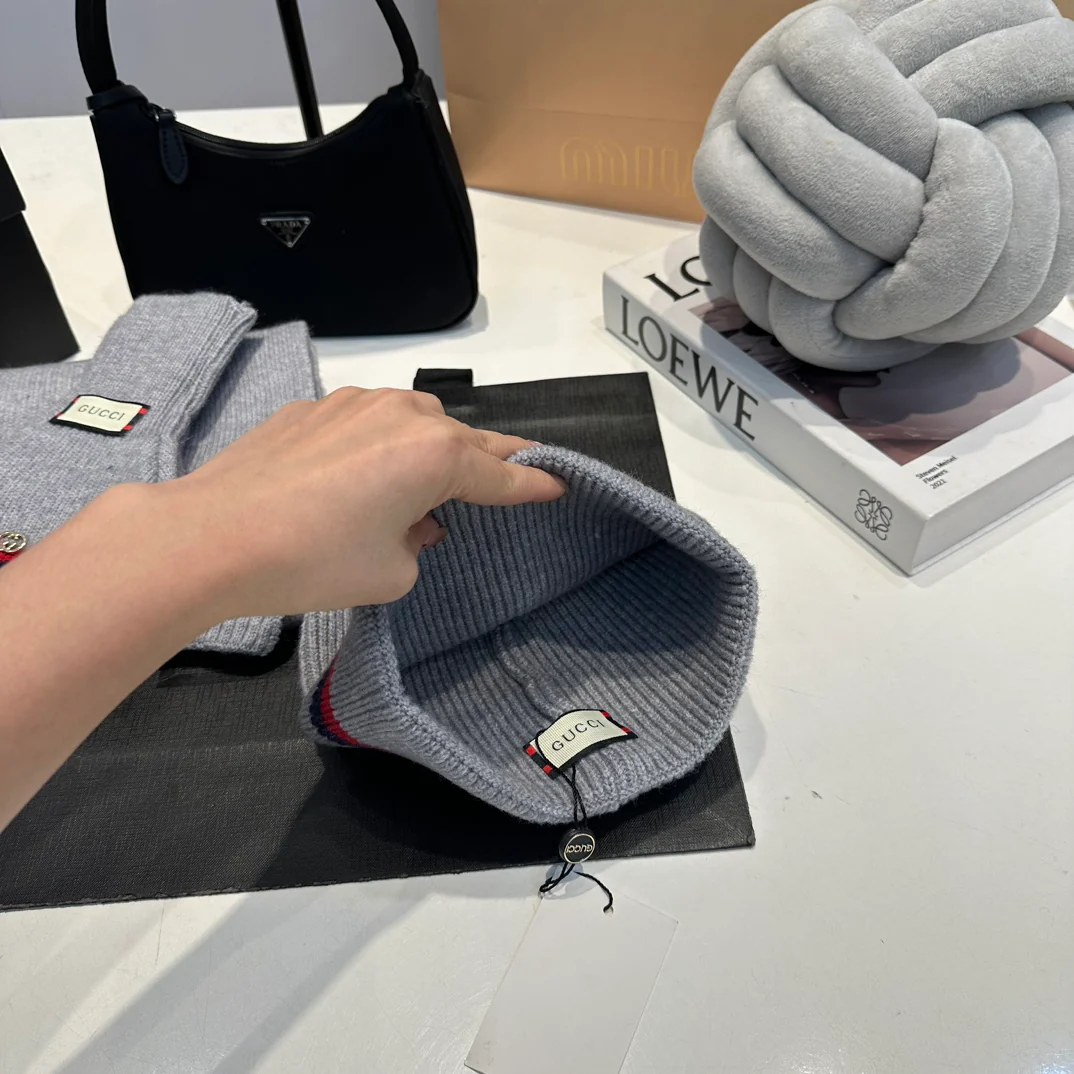 Leather label knitted scarf hat gloves set