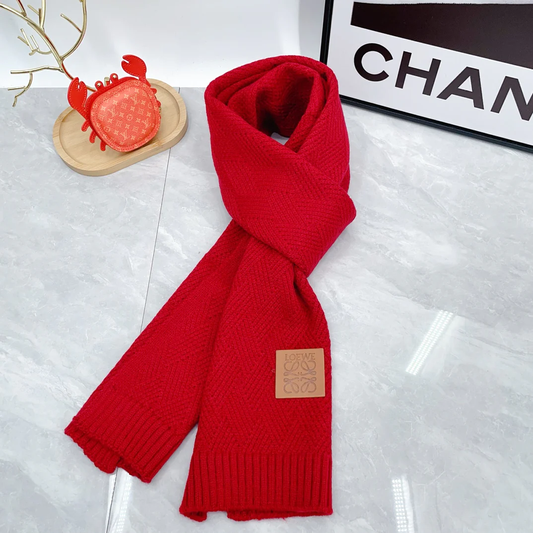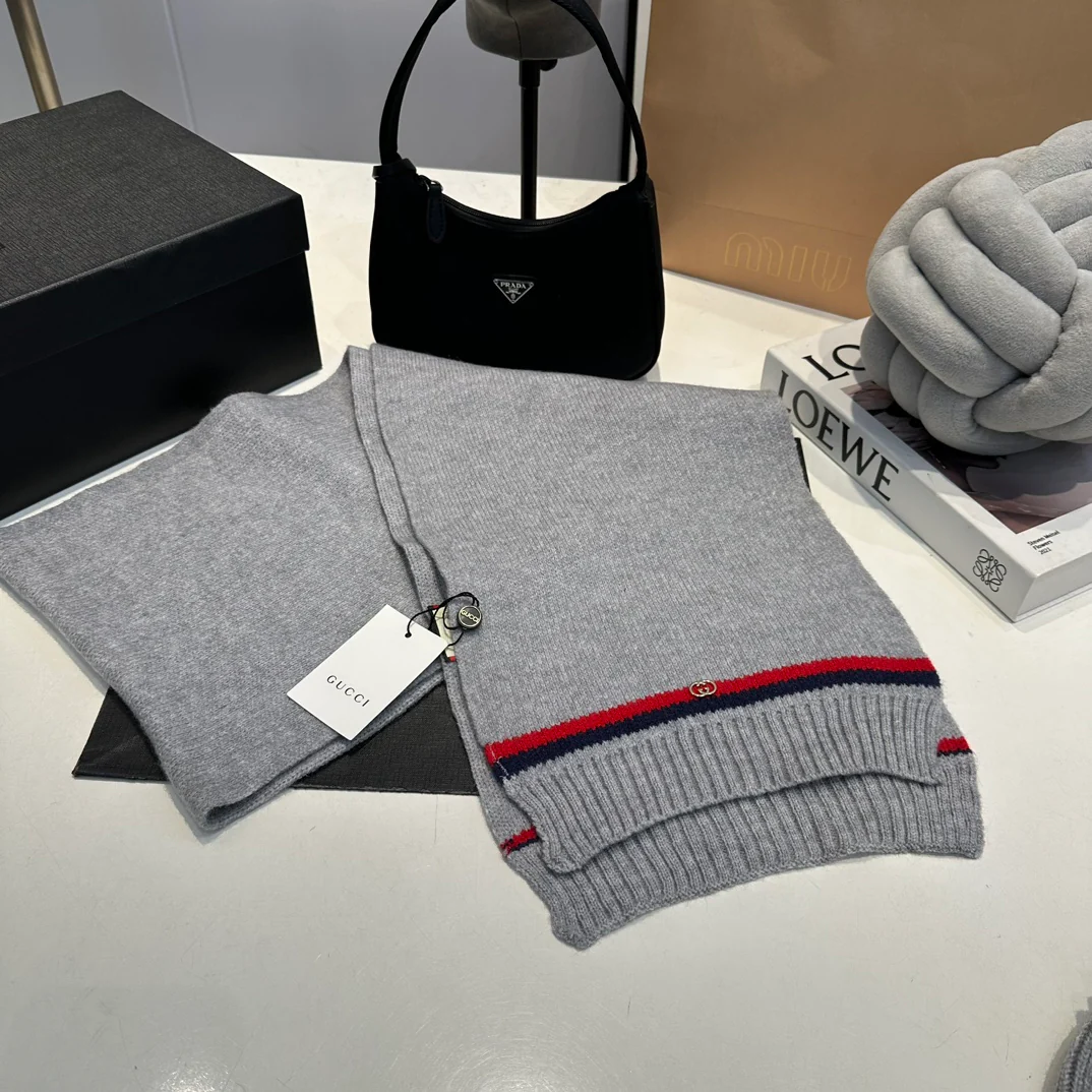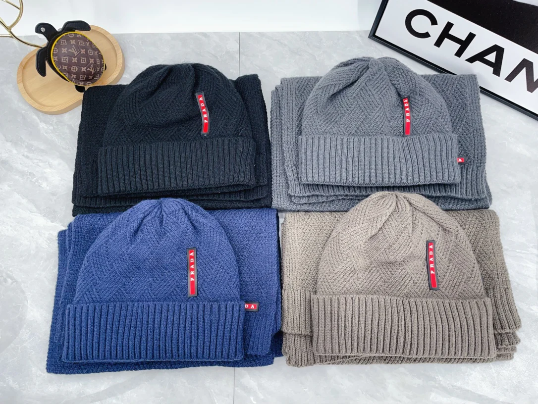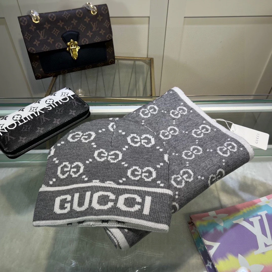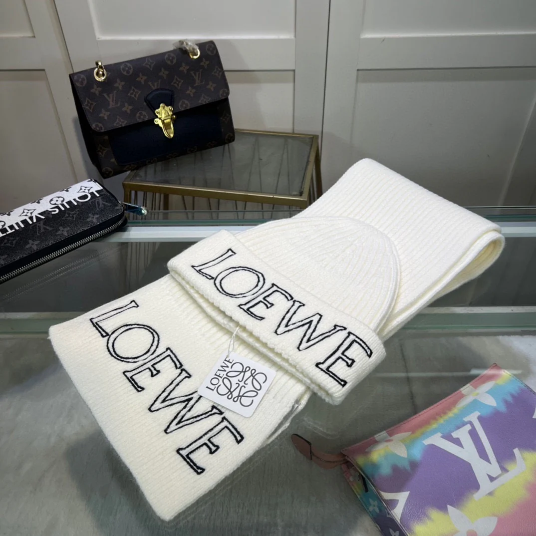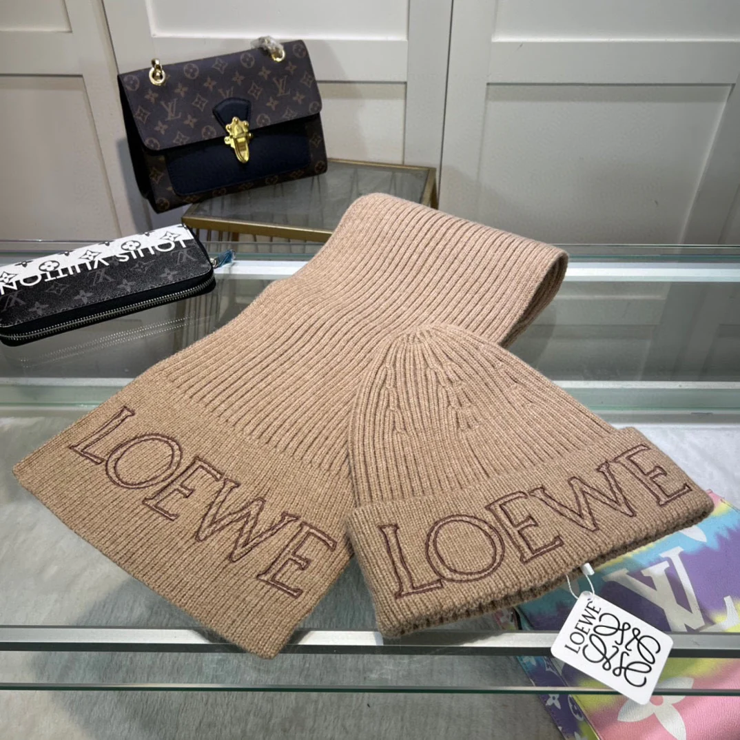 Leather label knitted scarf hat gloves set