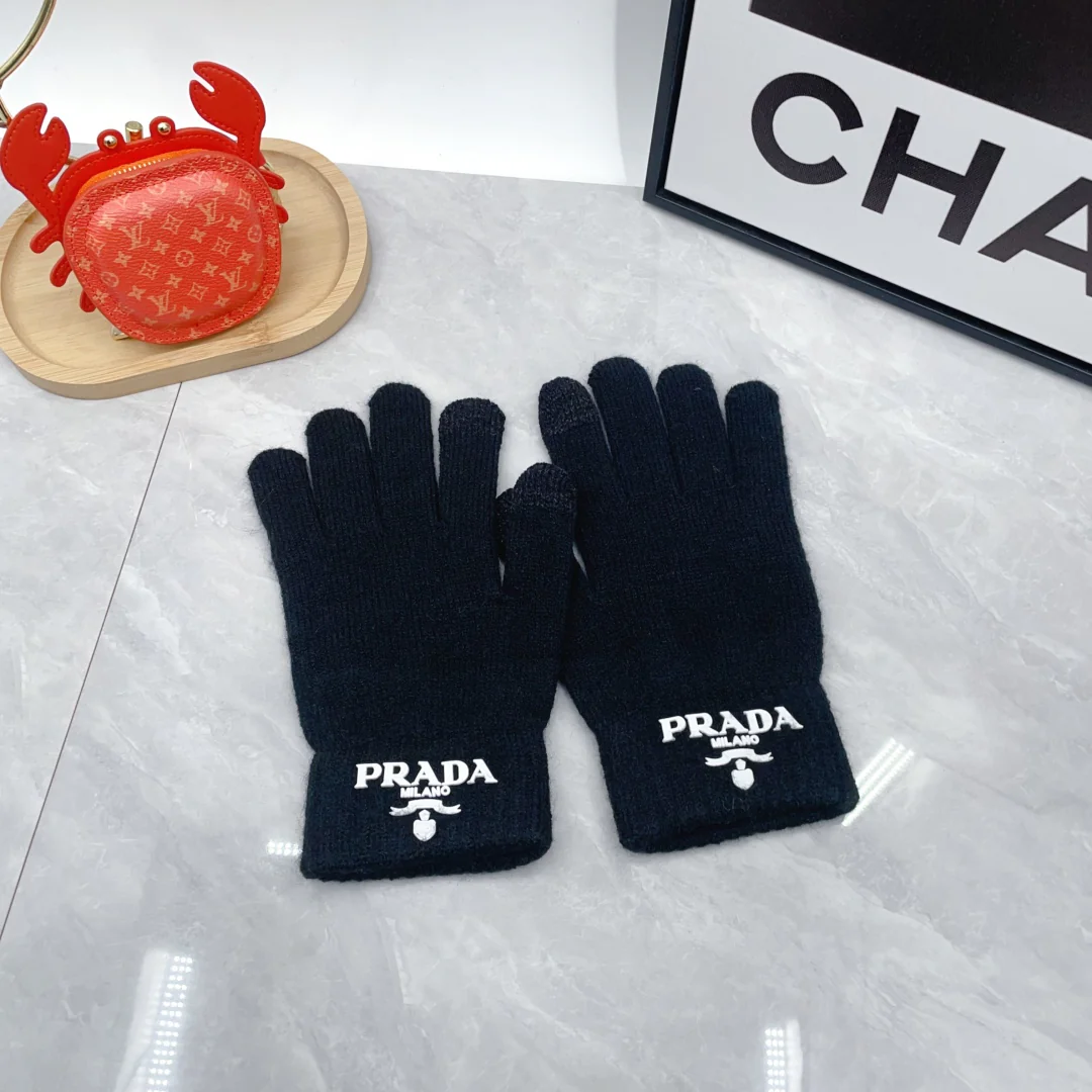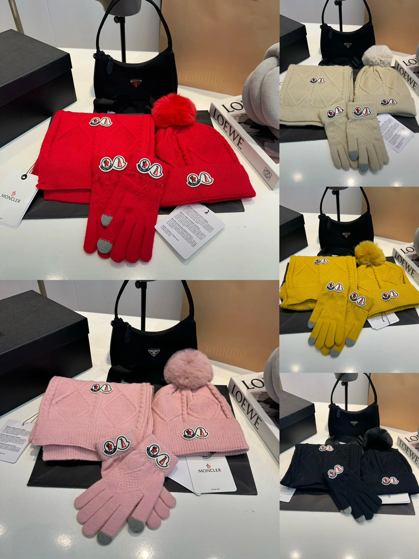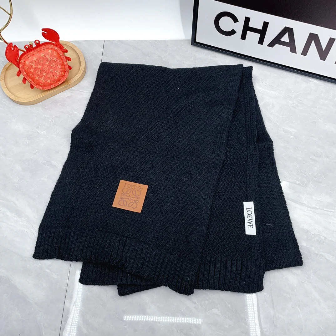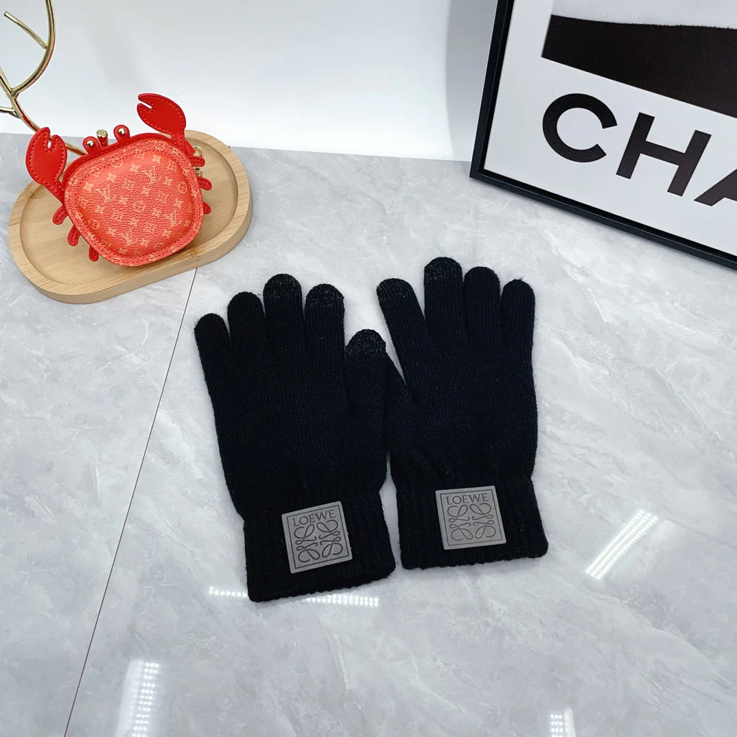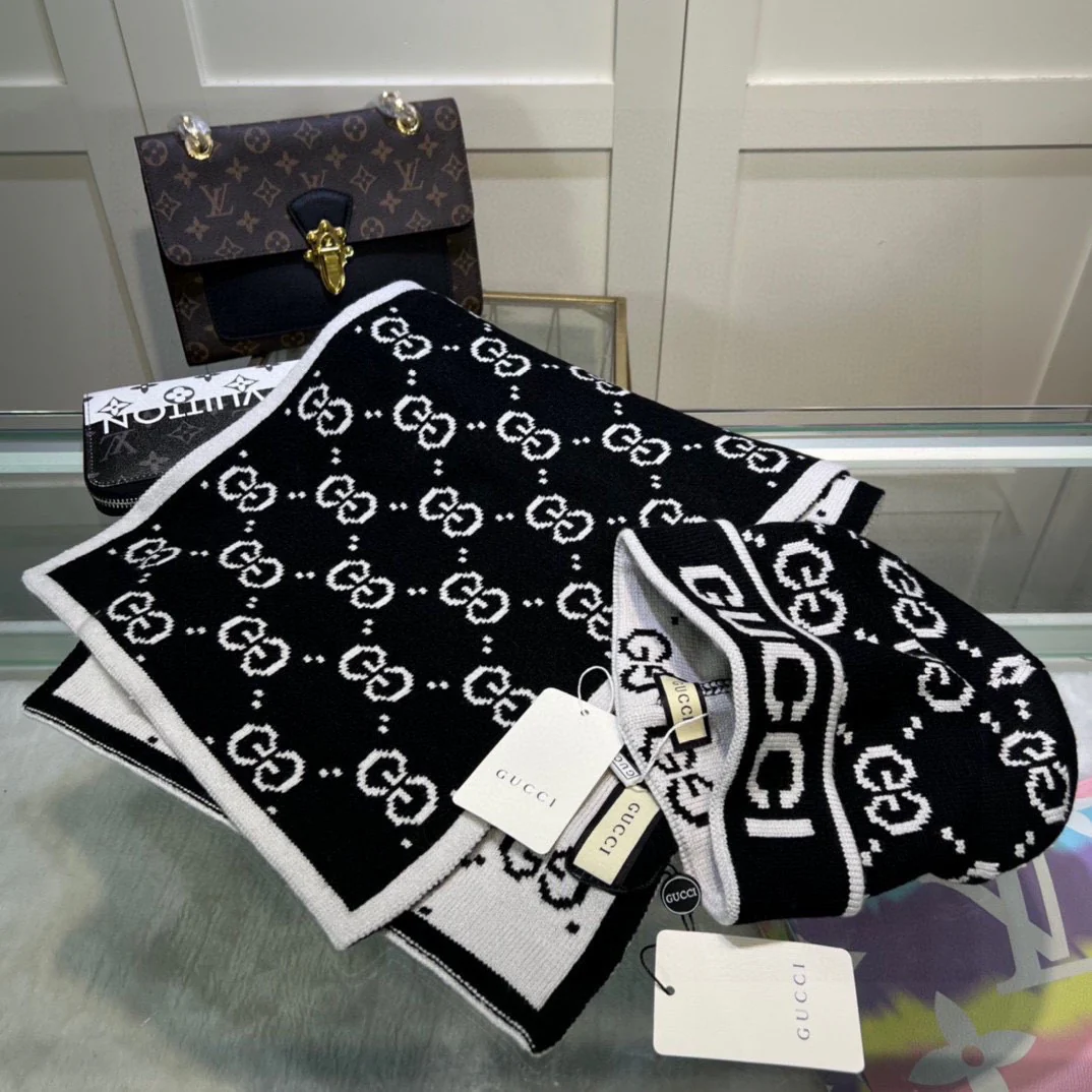 Leather label knitted scarf hat gloves set