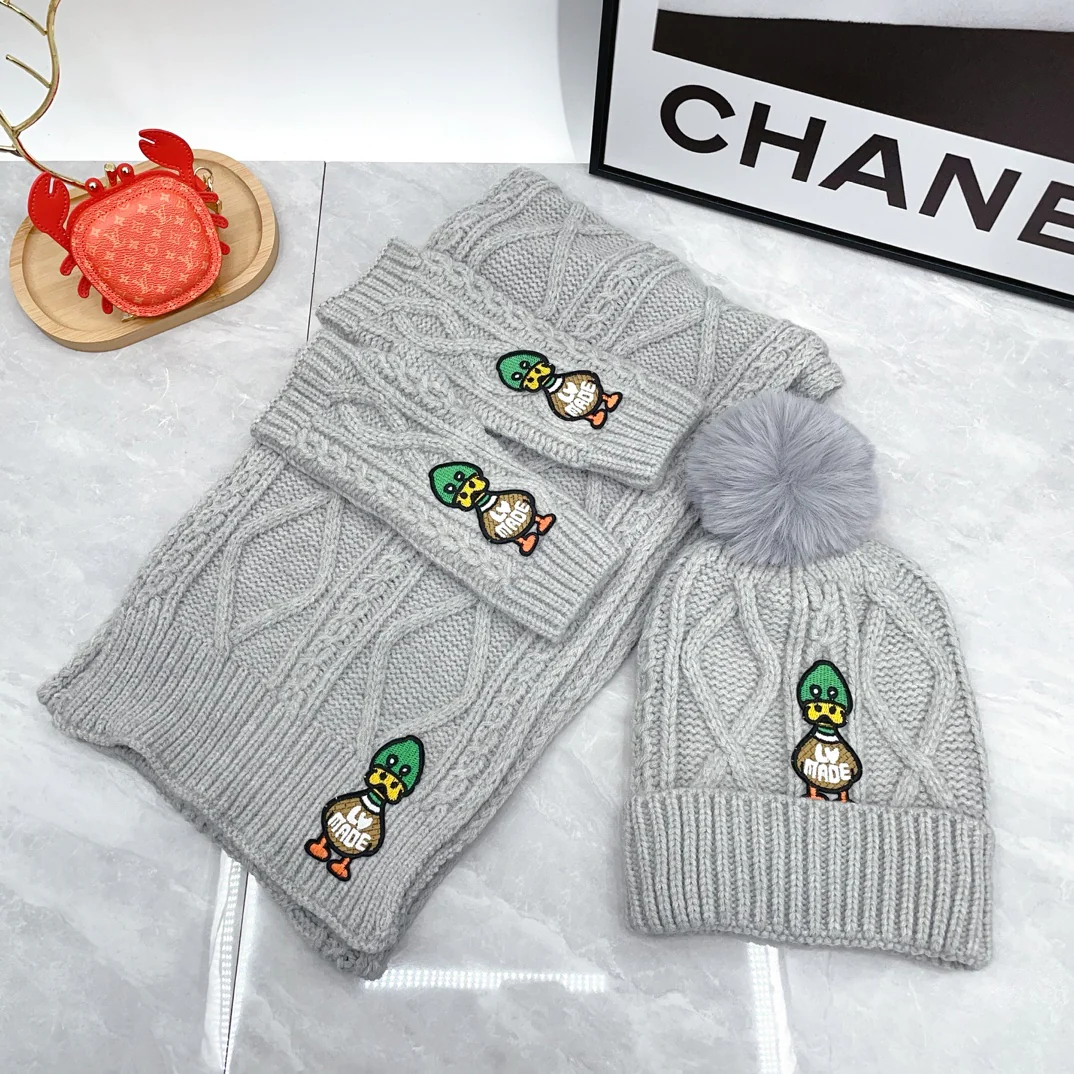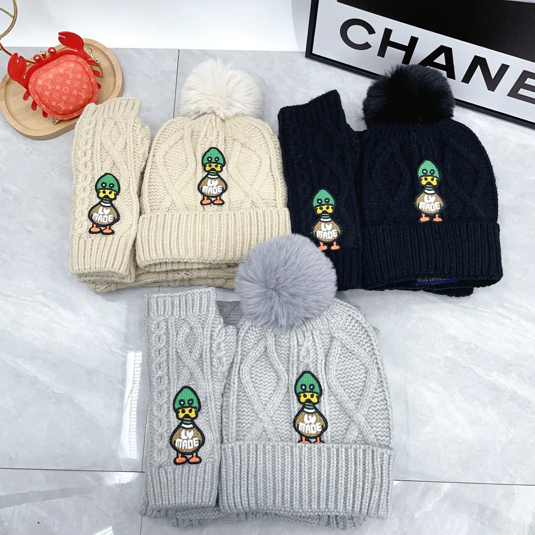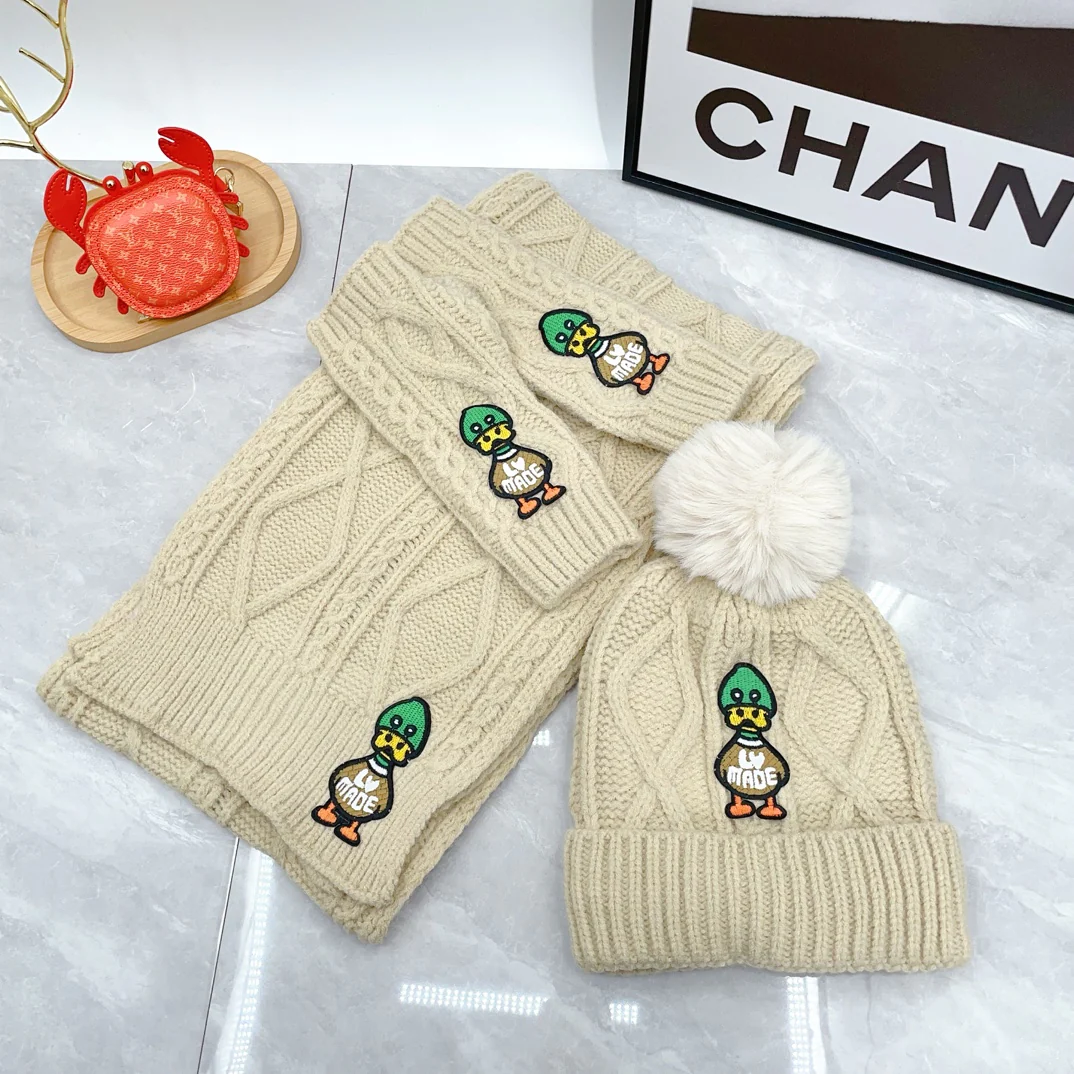 Embroidered duck knitted scarf hat gloves set