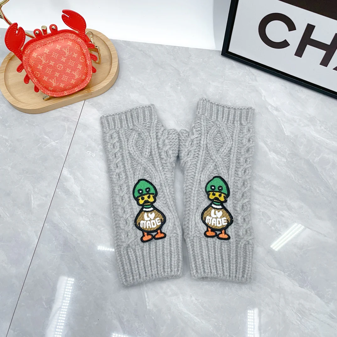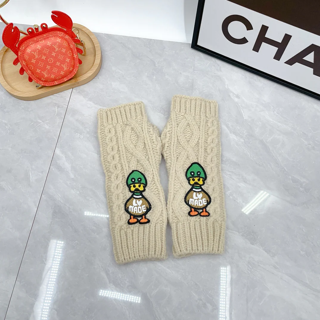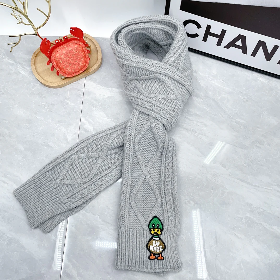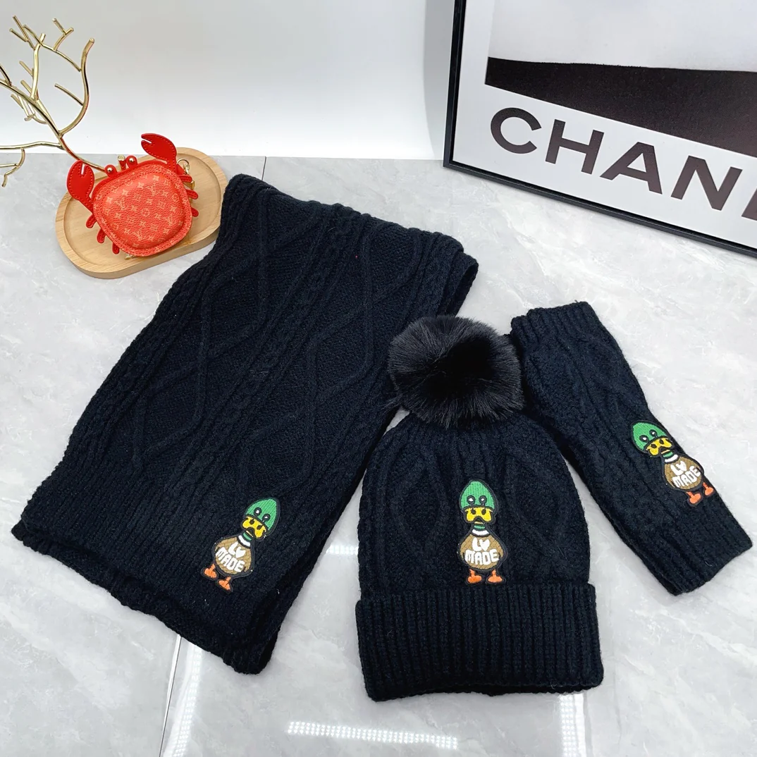 Embroidered duck knitted scarf hat gloves set