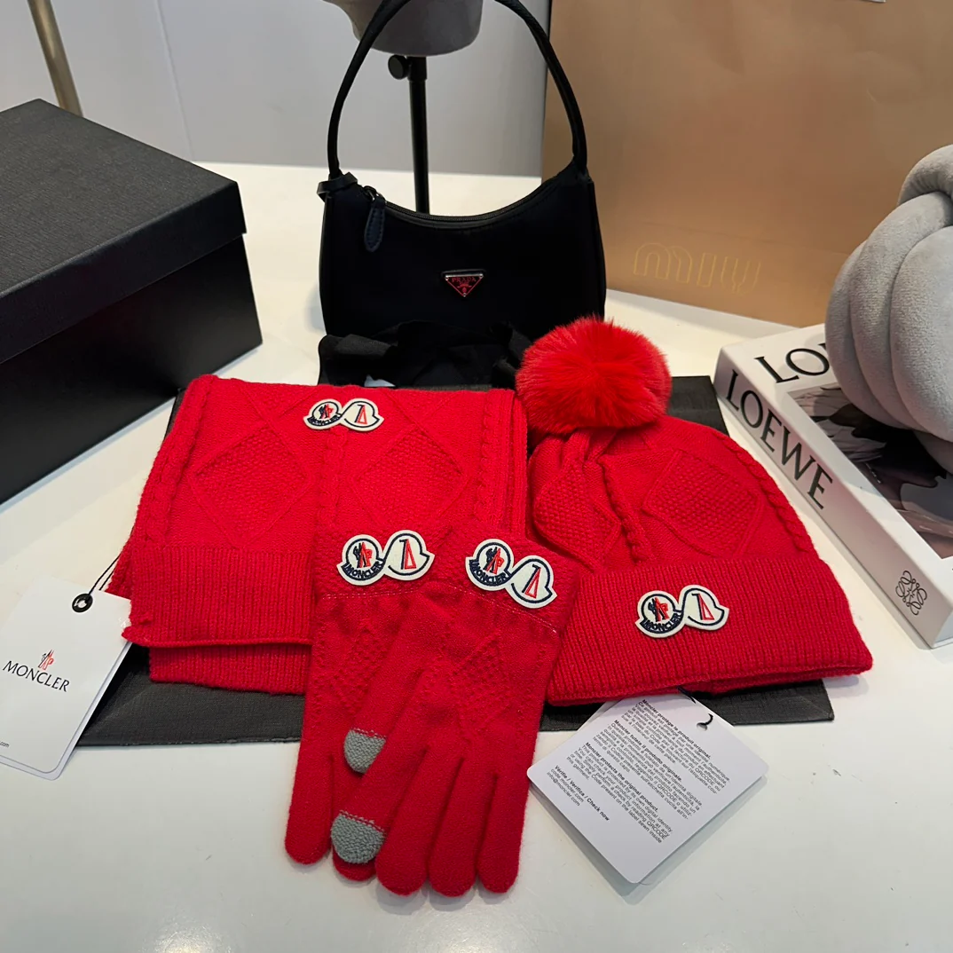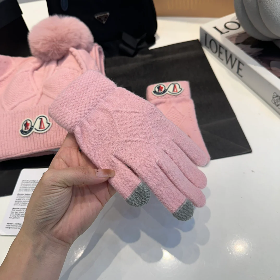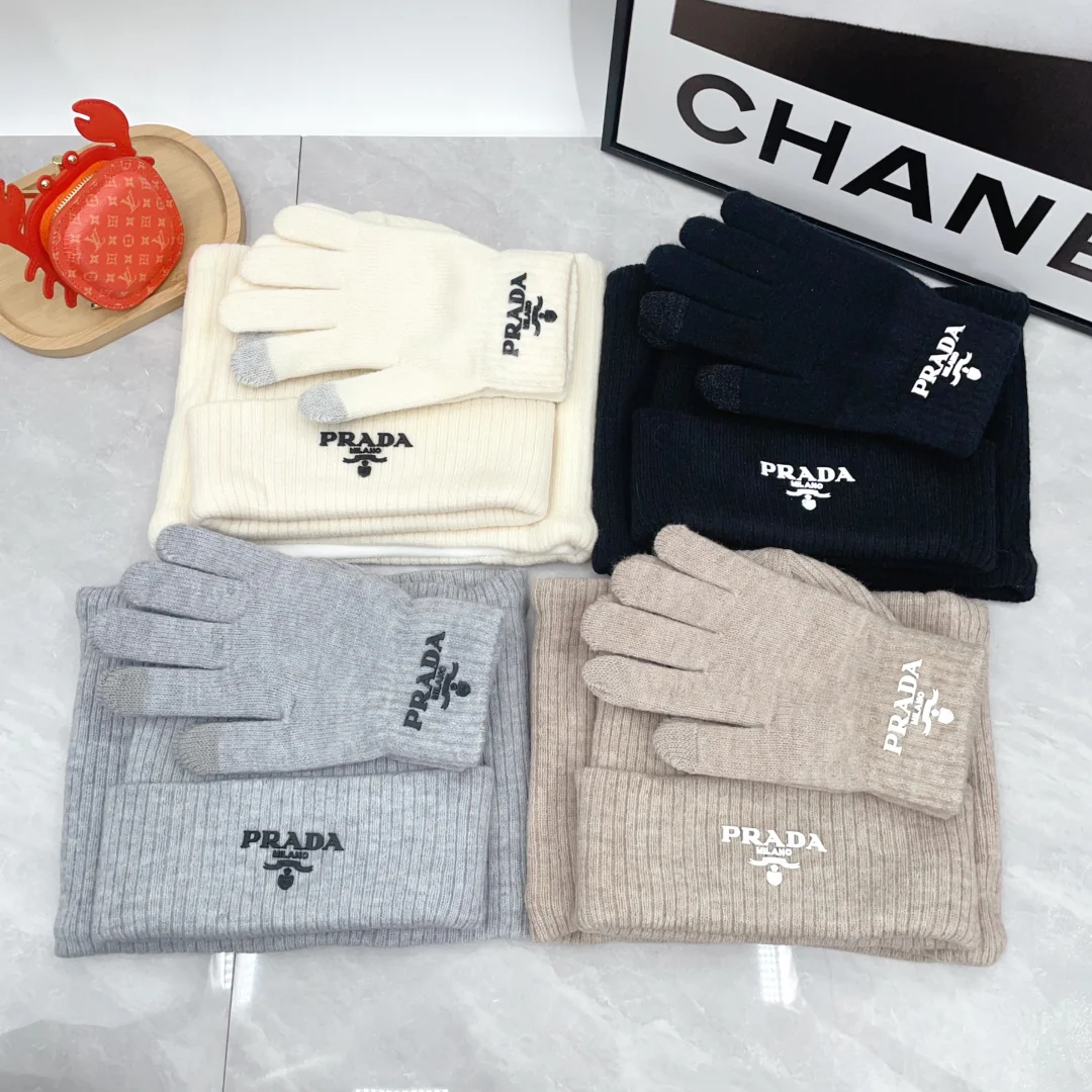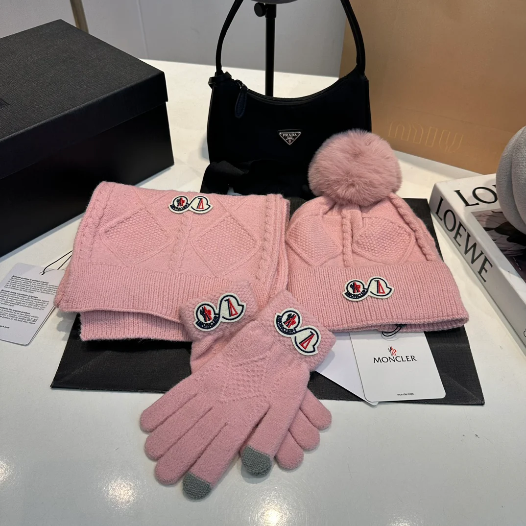 Embroidery knitted scarf hat gloves set