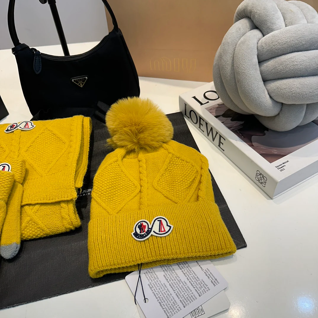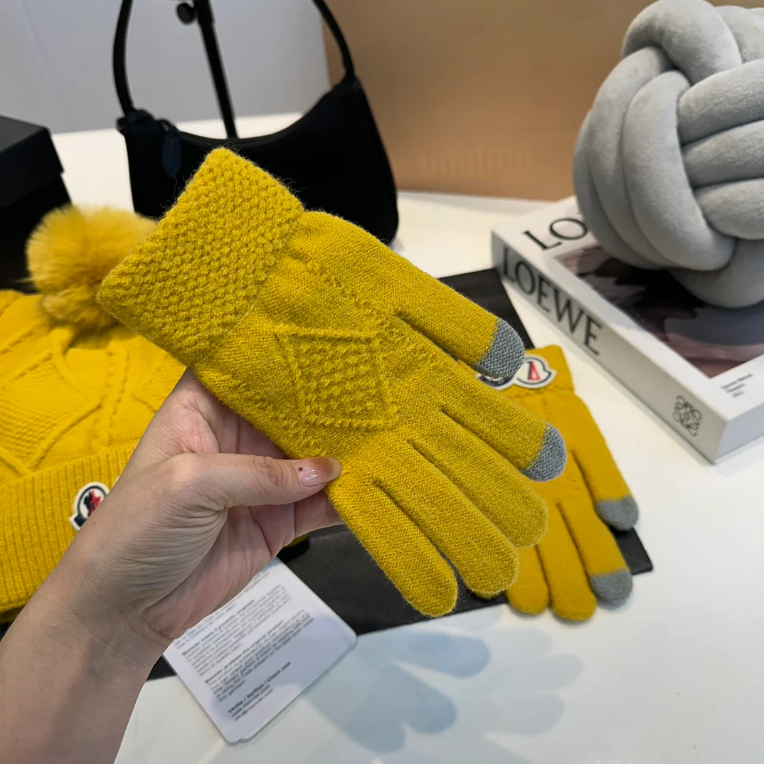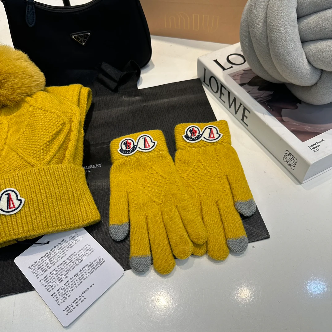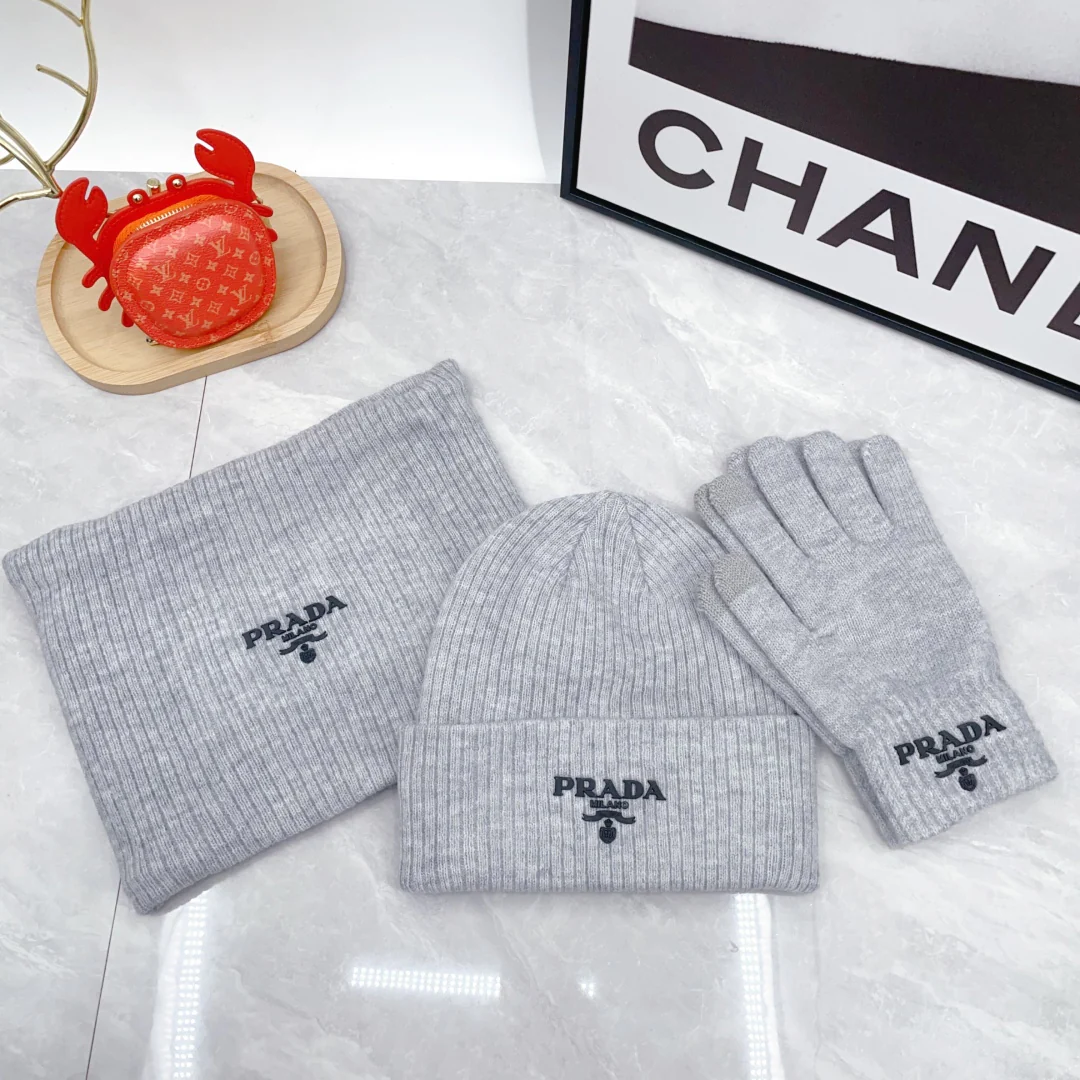 Embroidery knitted scarf hat gloves set
