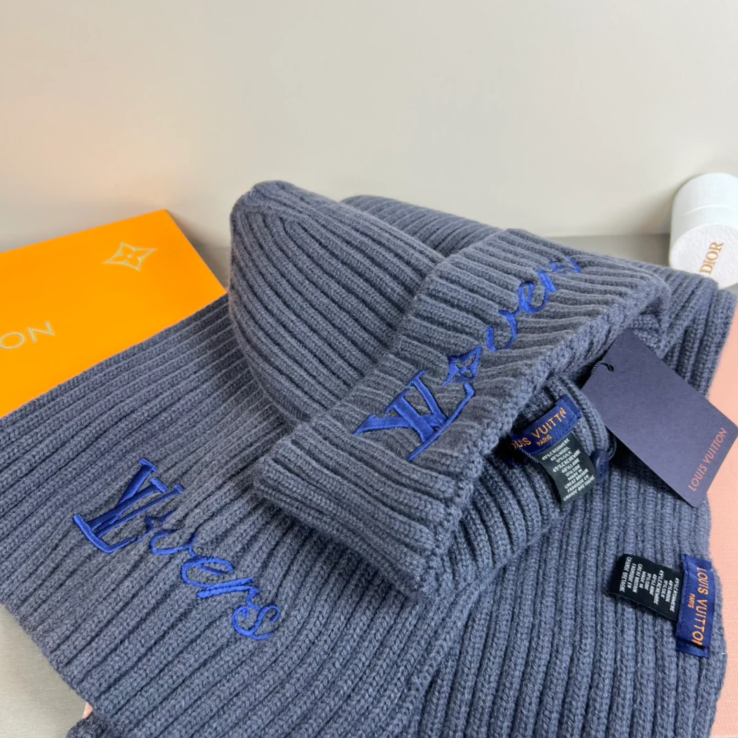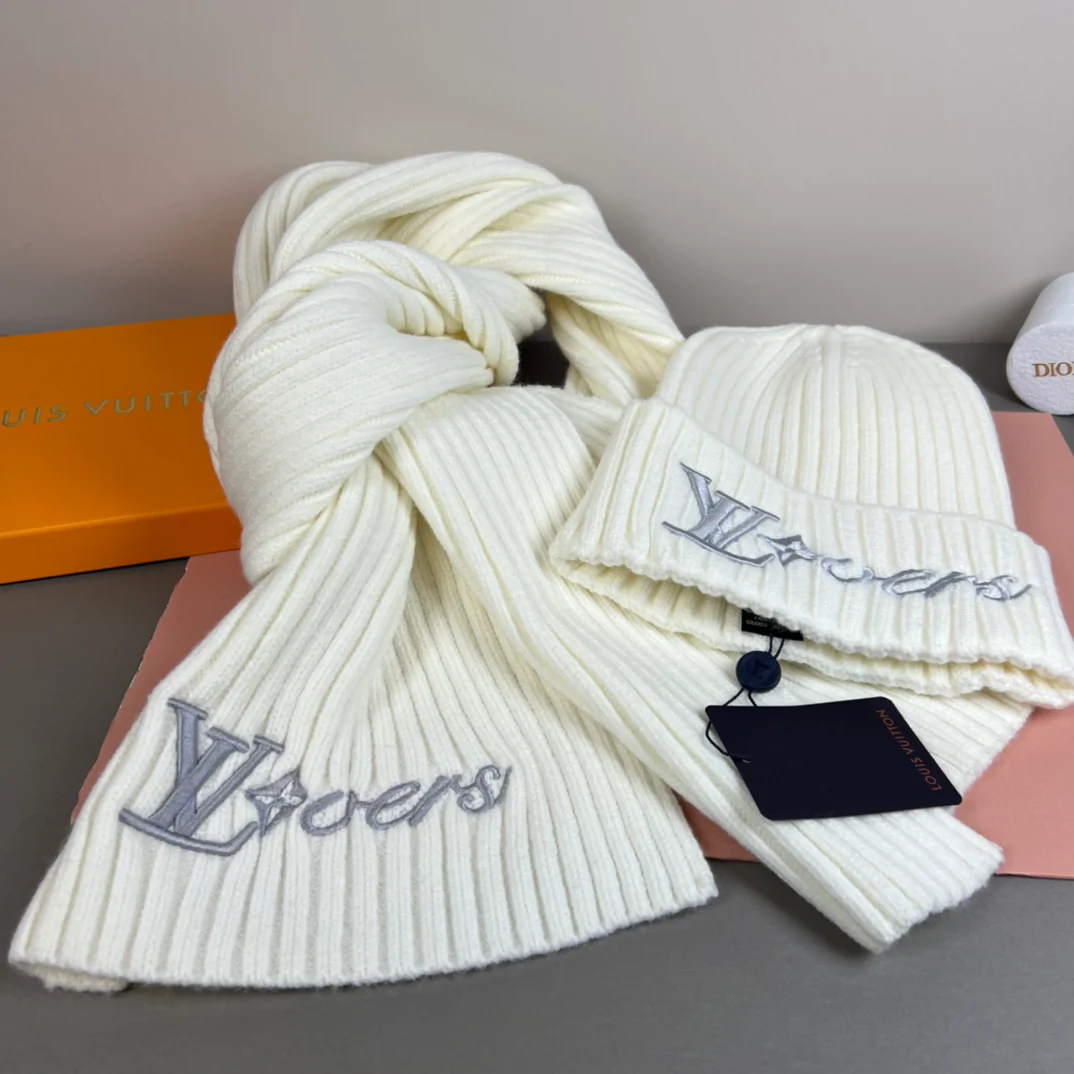 Embroidery knit scarf and hat set