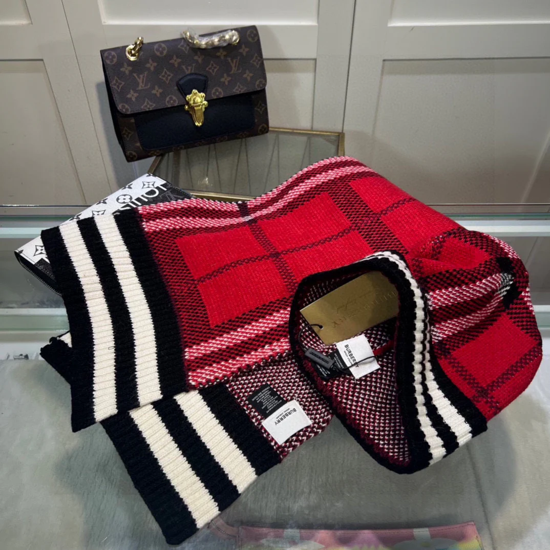 Plaid knit scarf and hat set