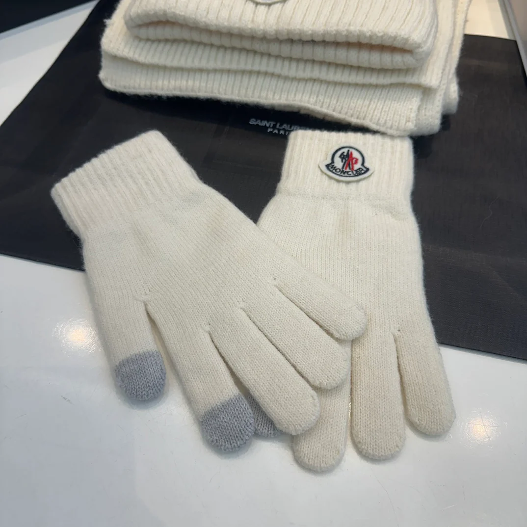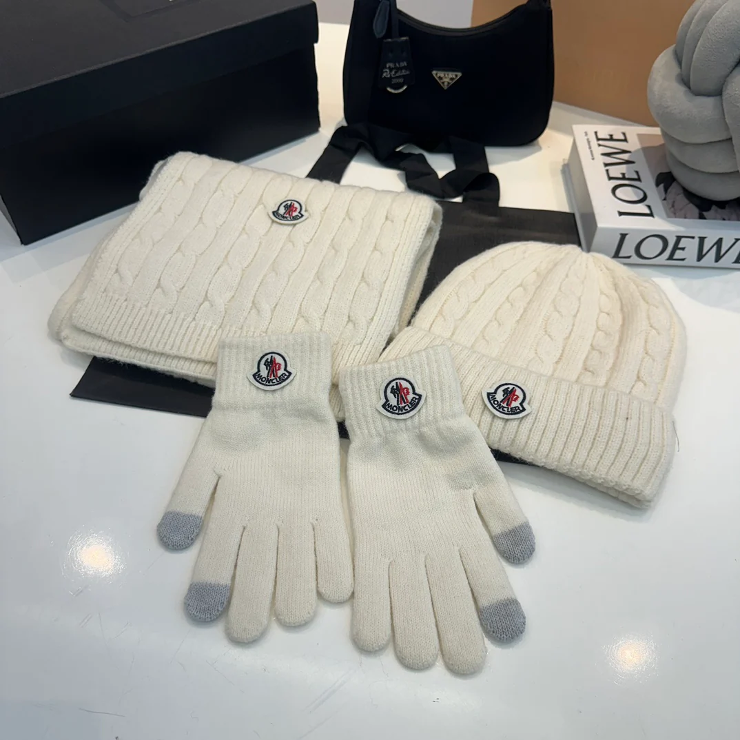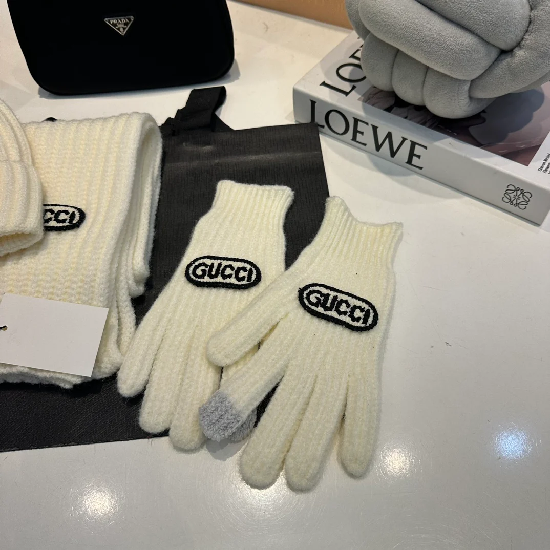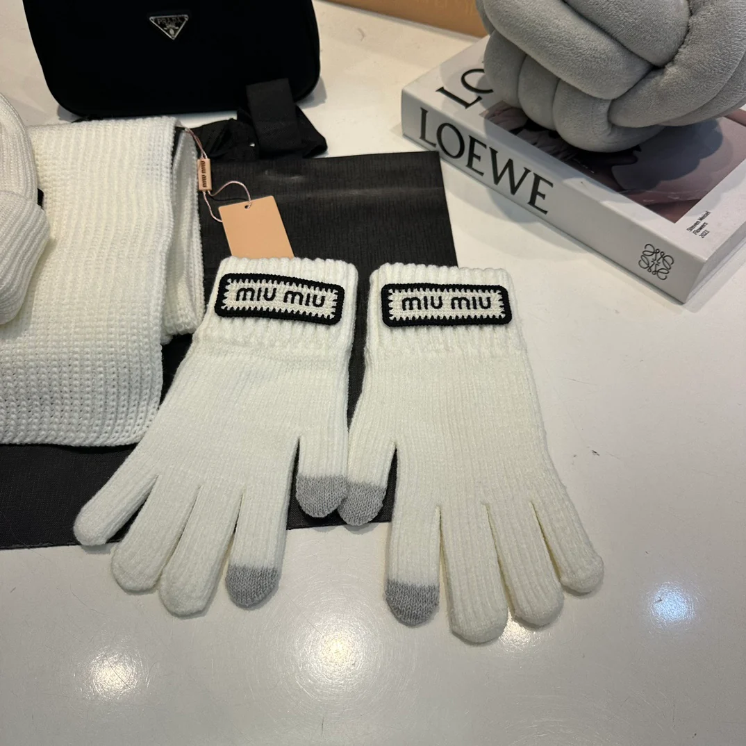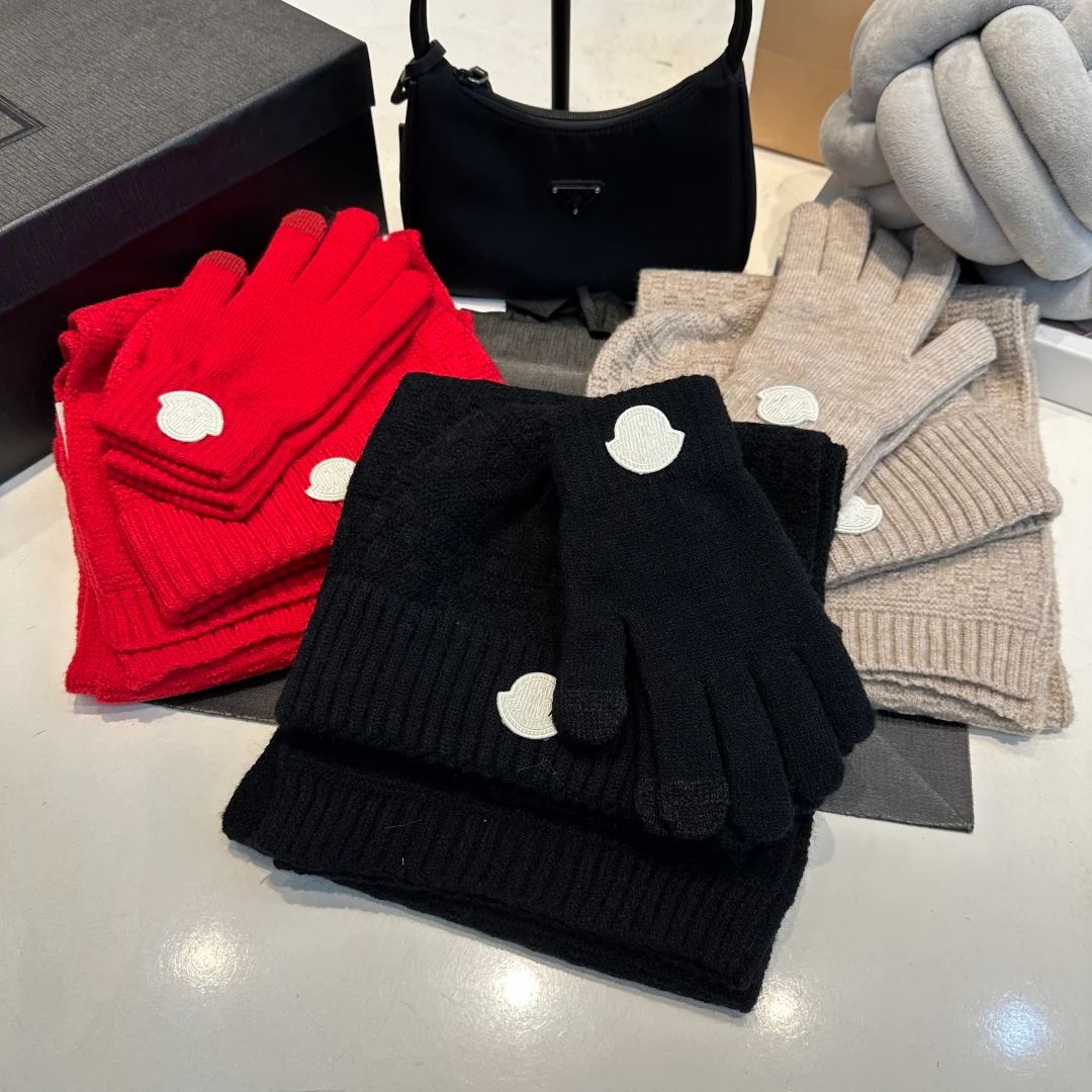 Embroidery knitted scarf hat gloves set