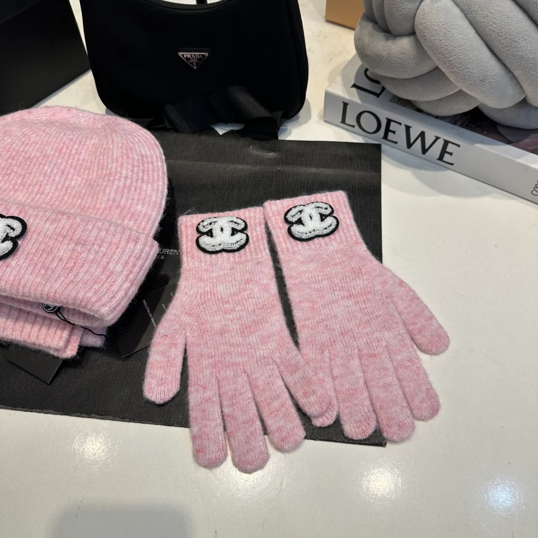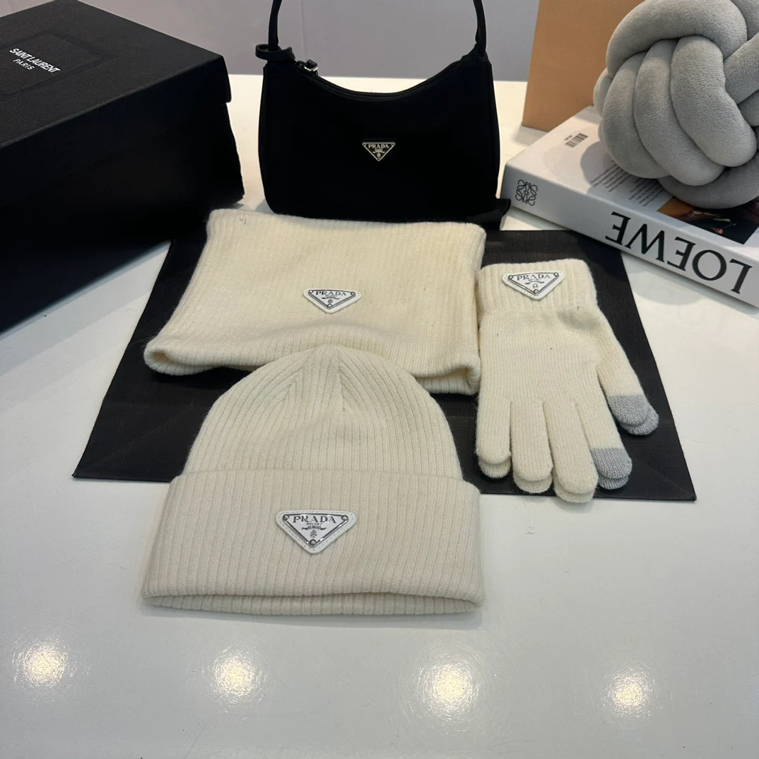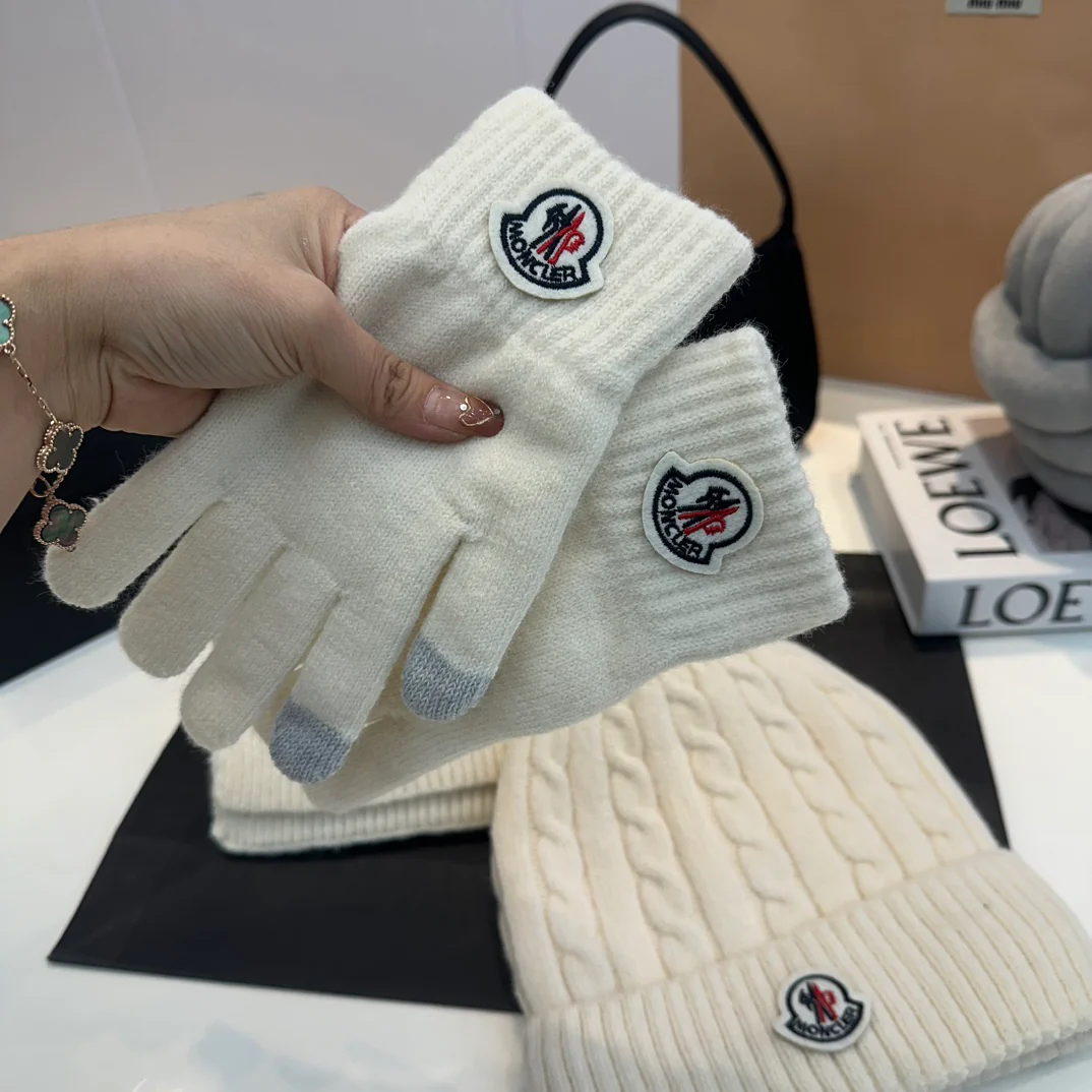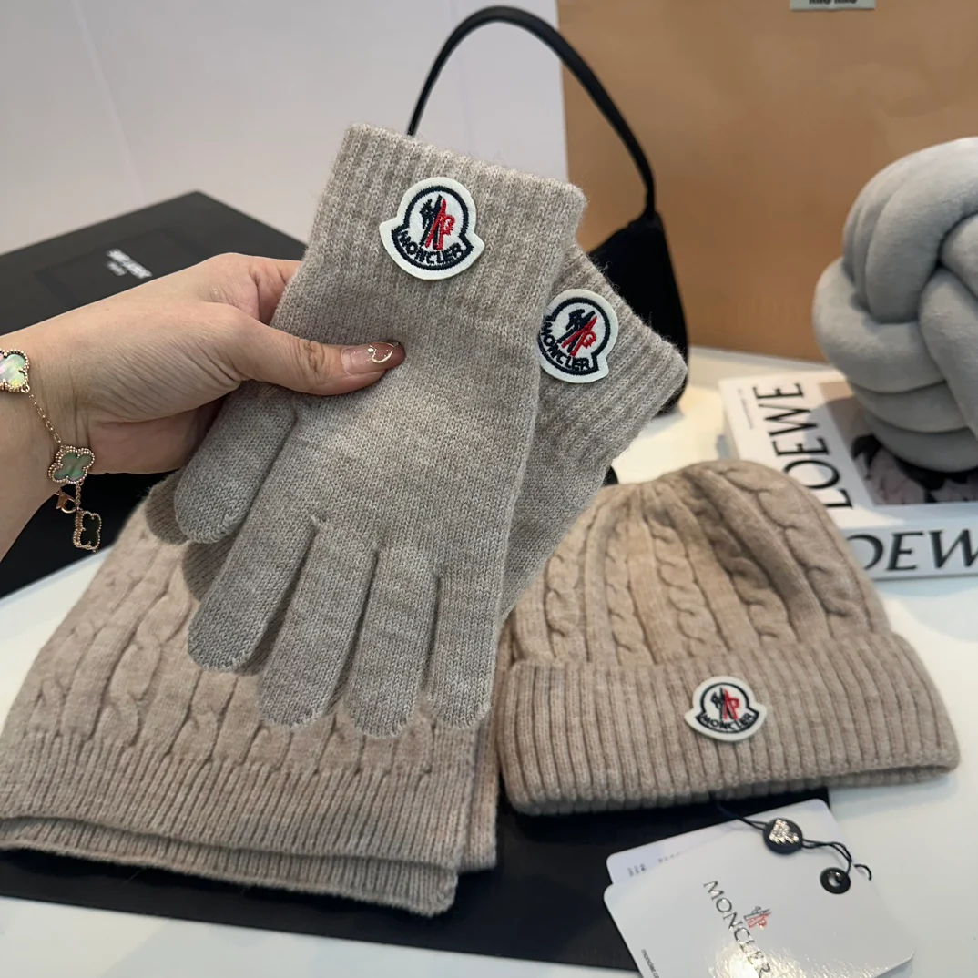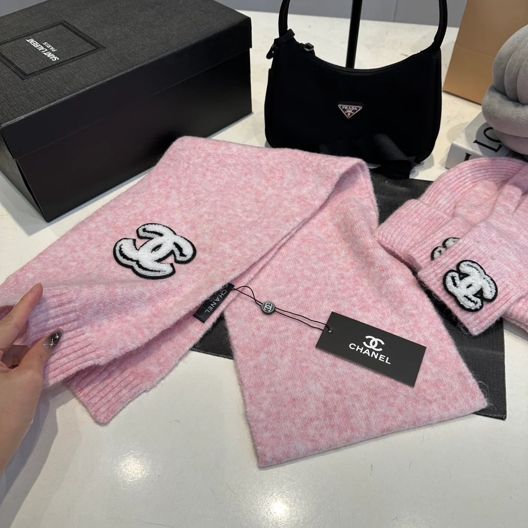 Embroidery knitted scarf hat gloves set