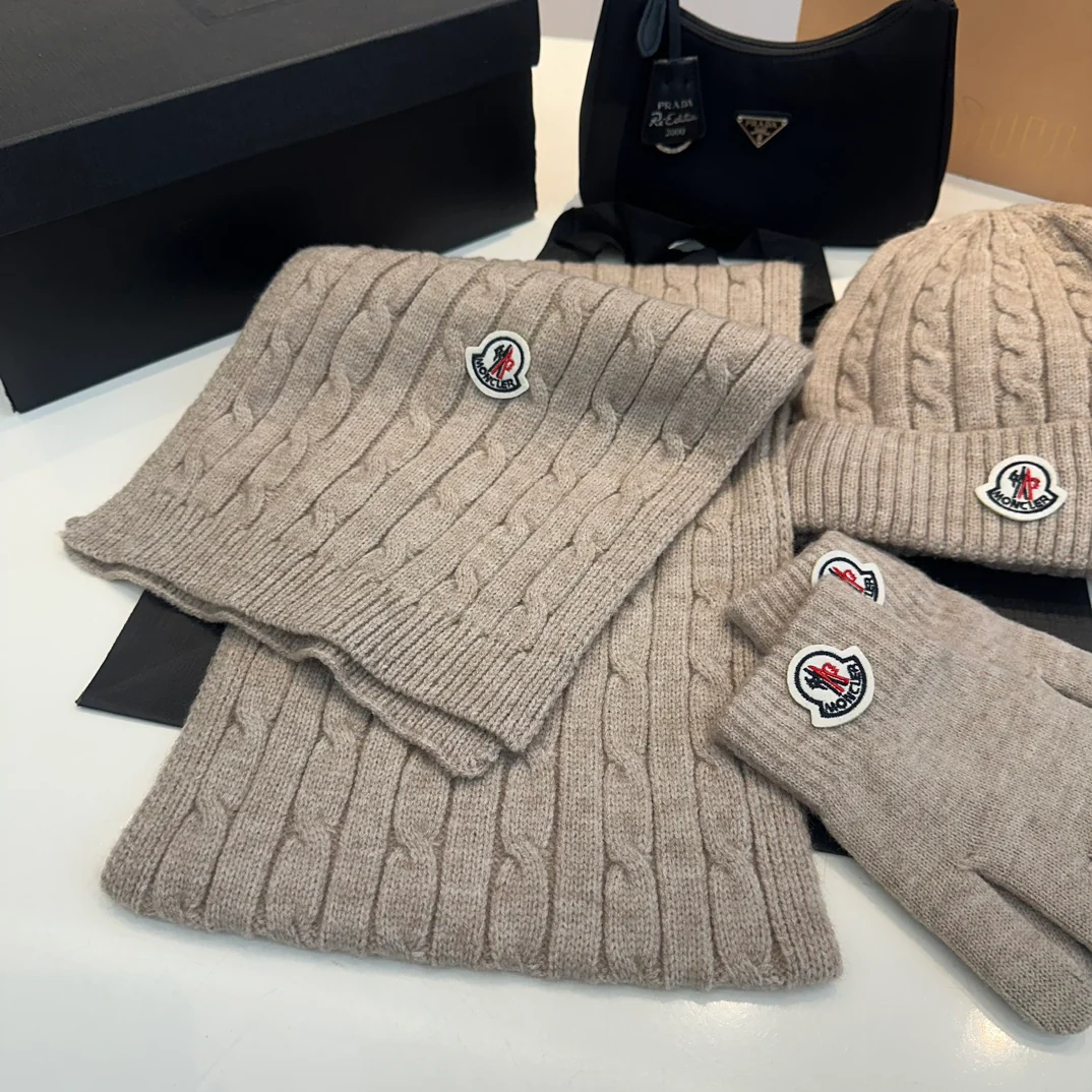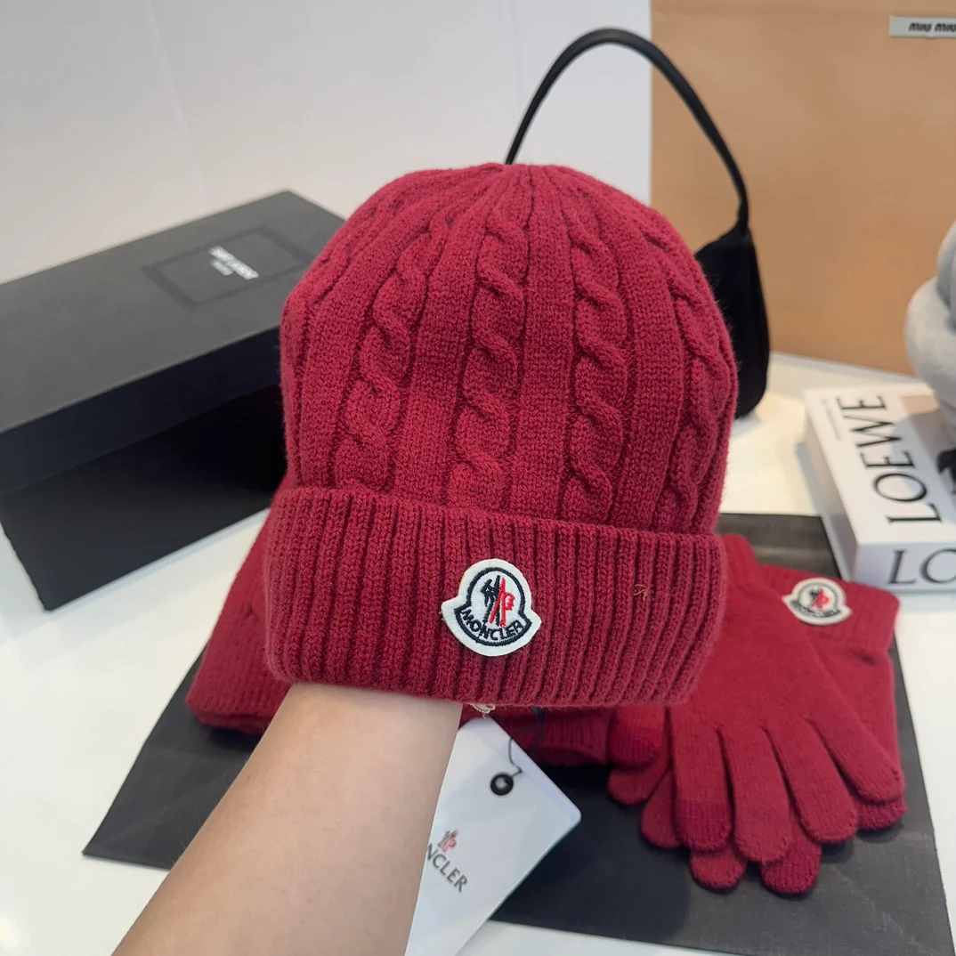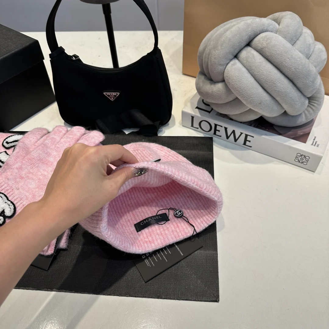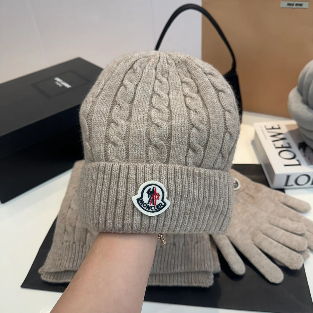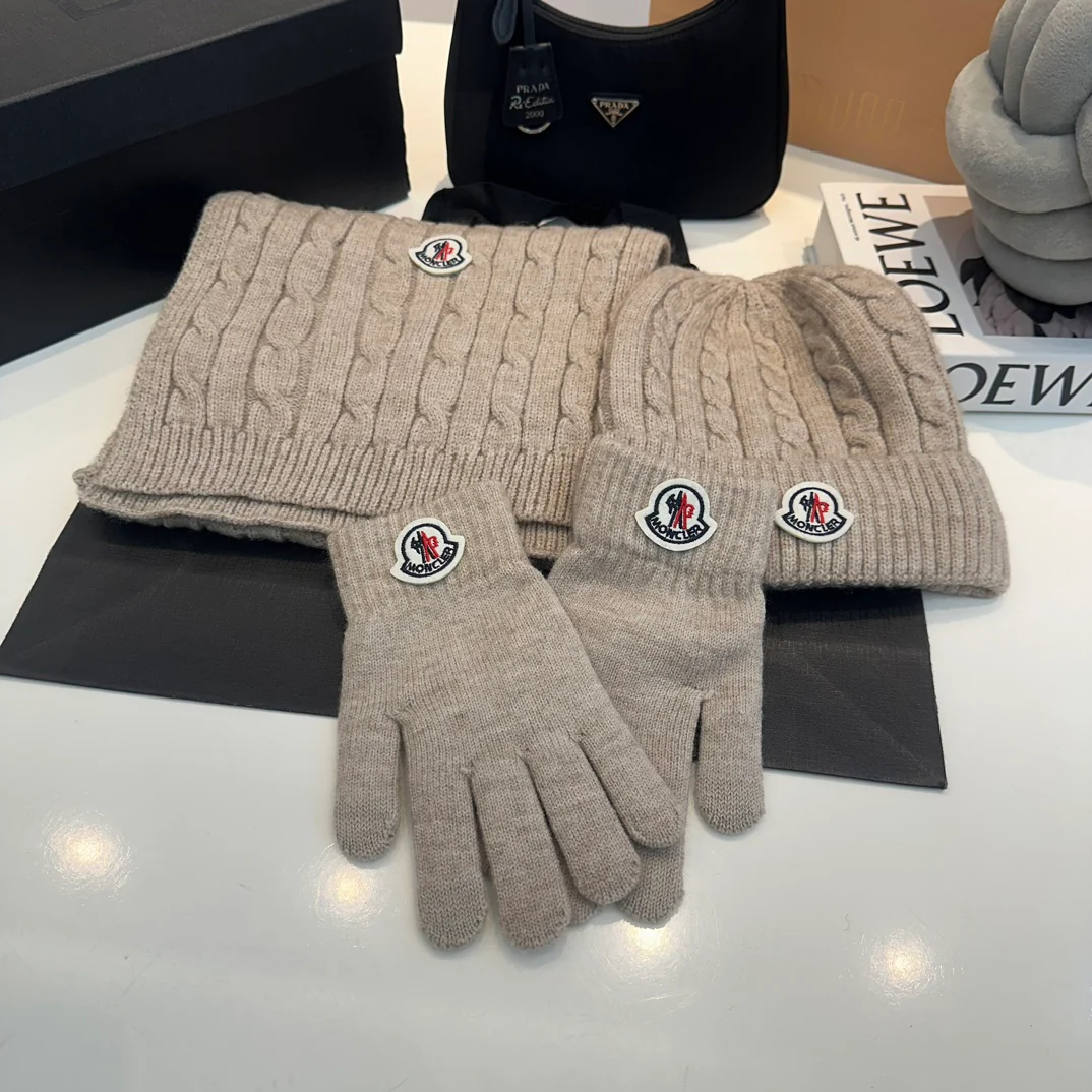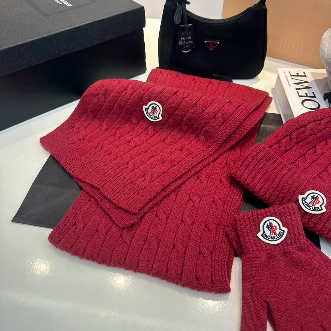 Embroidery knitted scarf hat gloves set