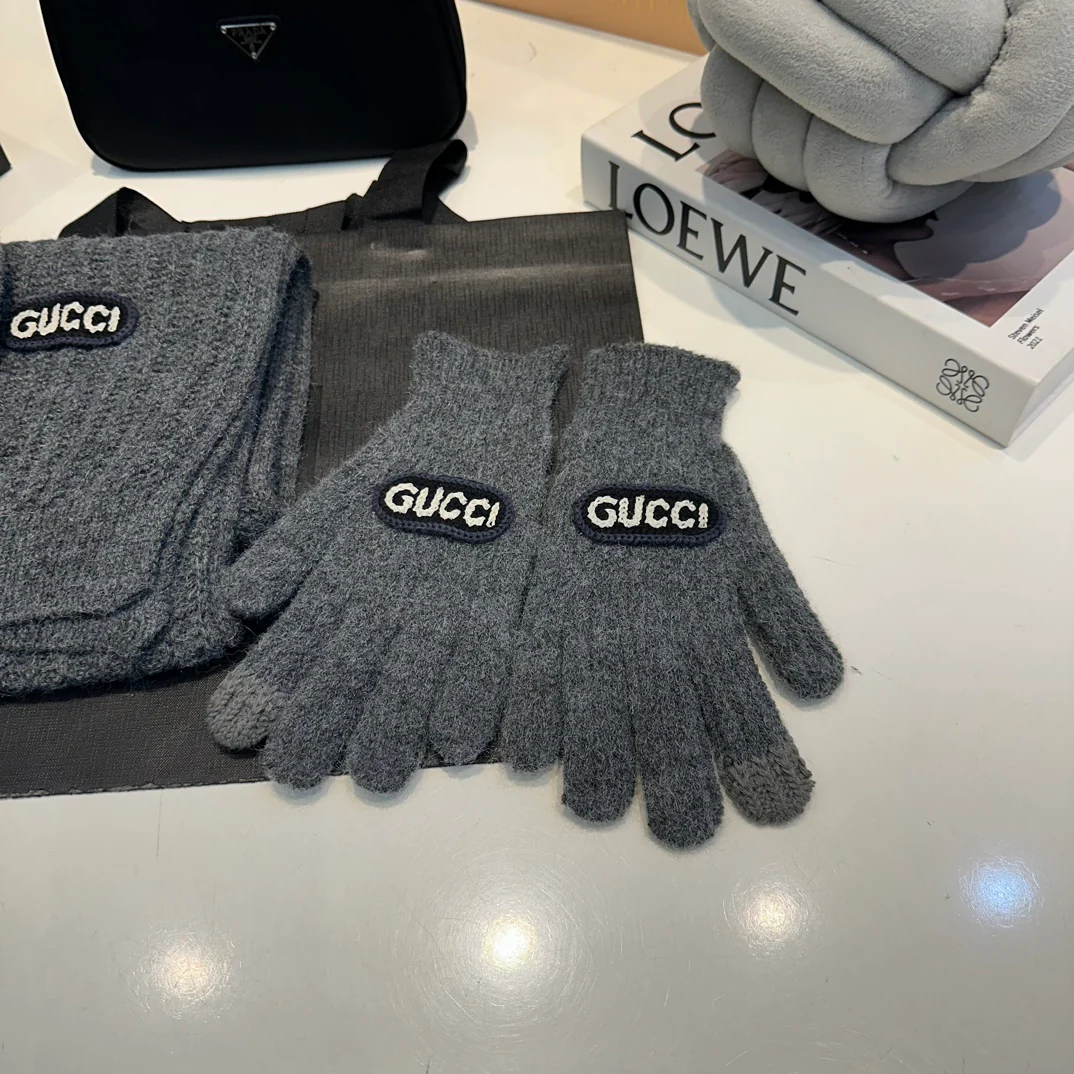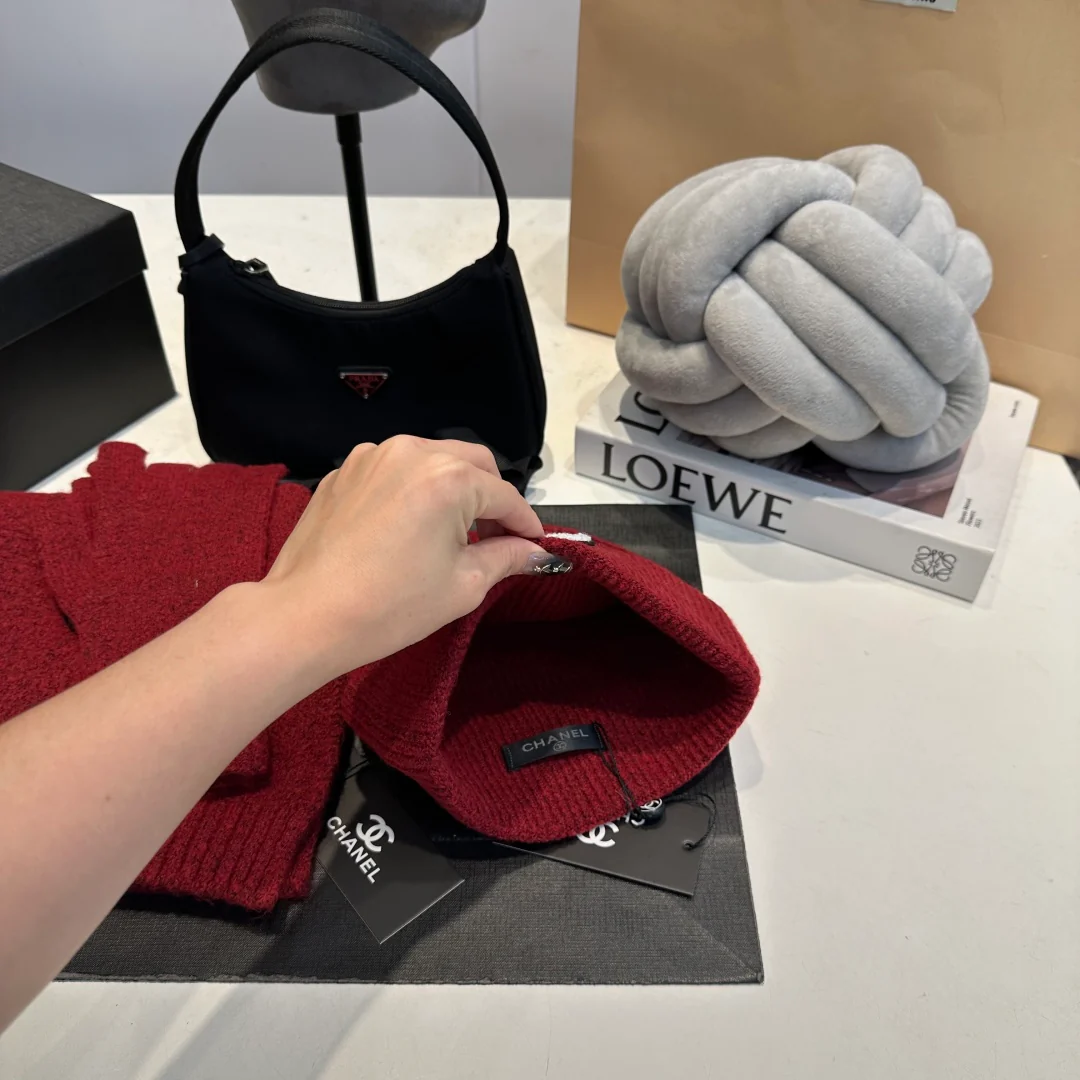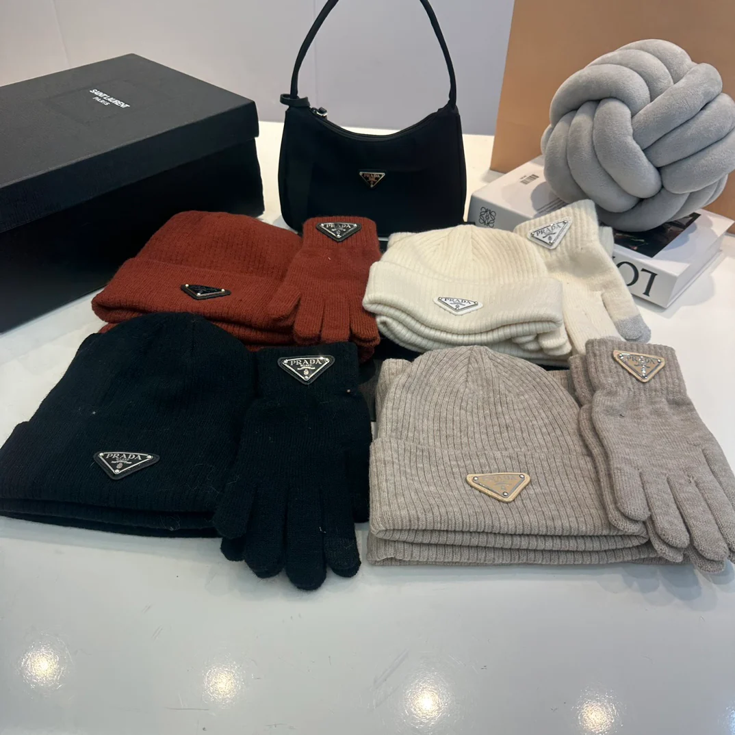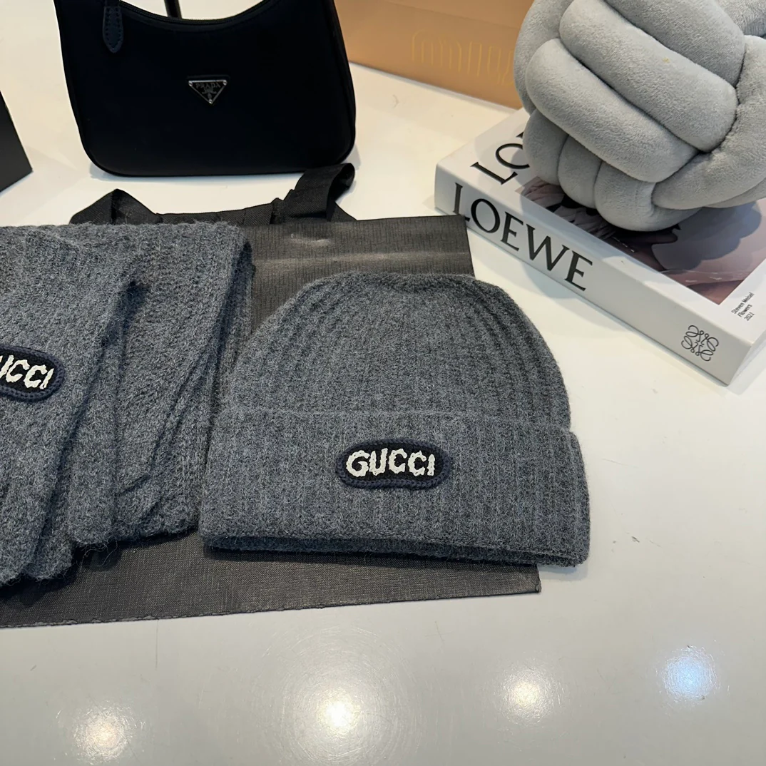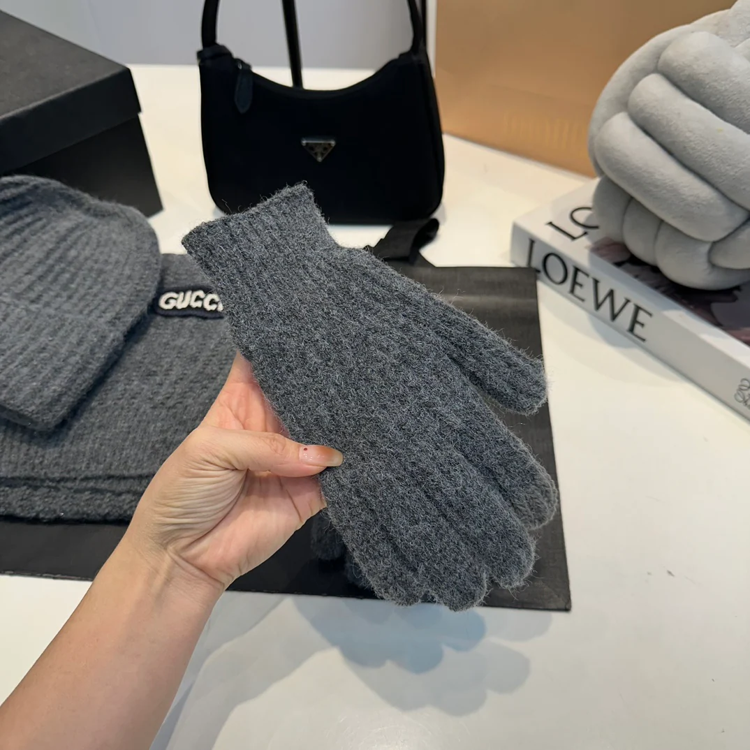Embroidery knitted scarf hat gloves set