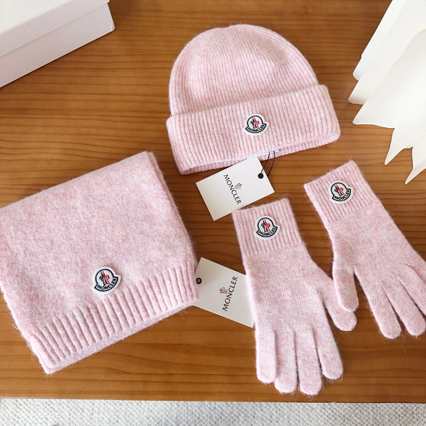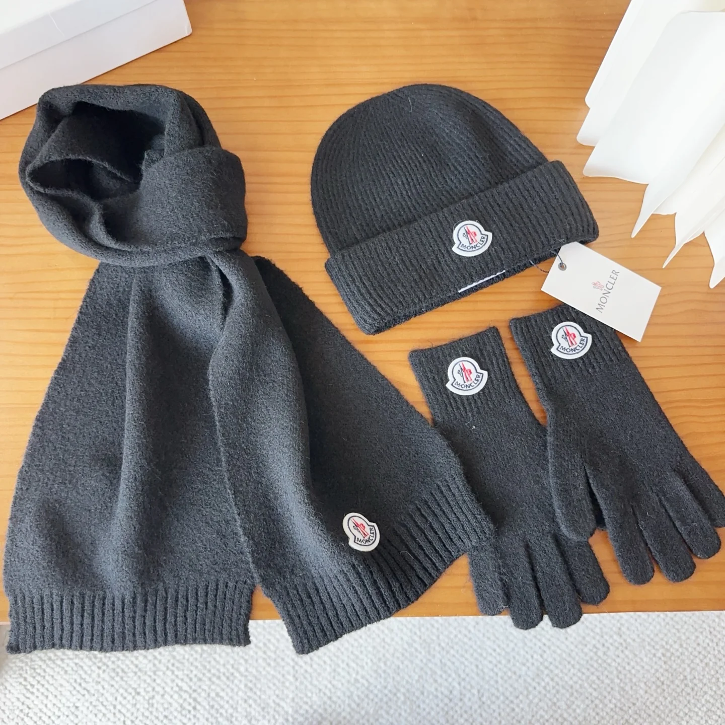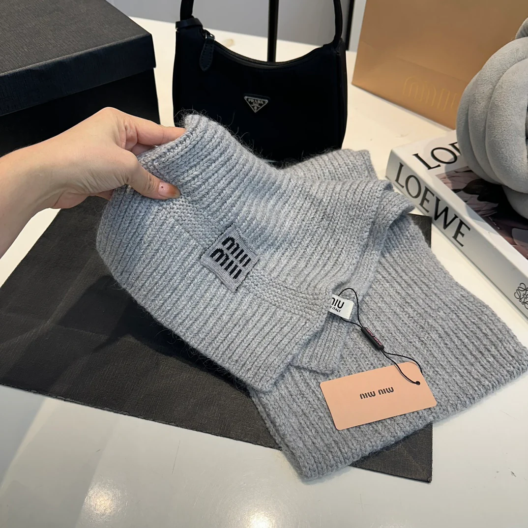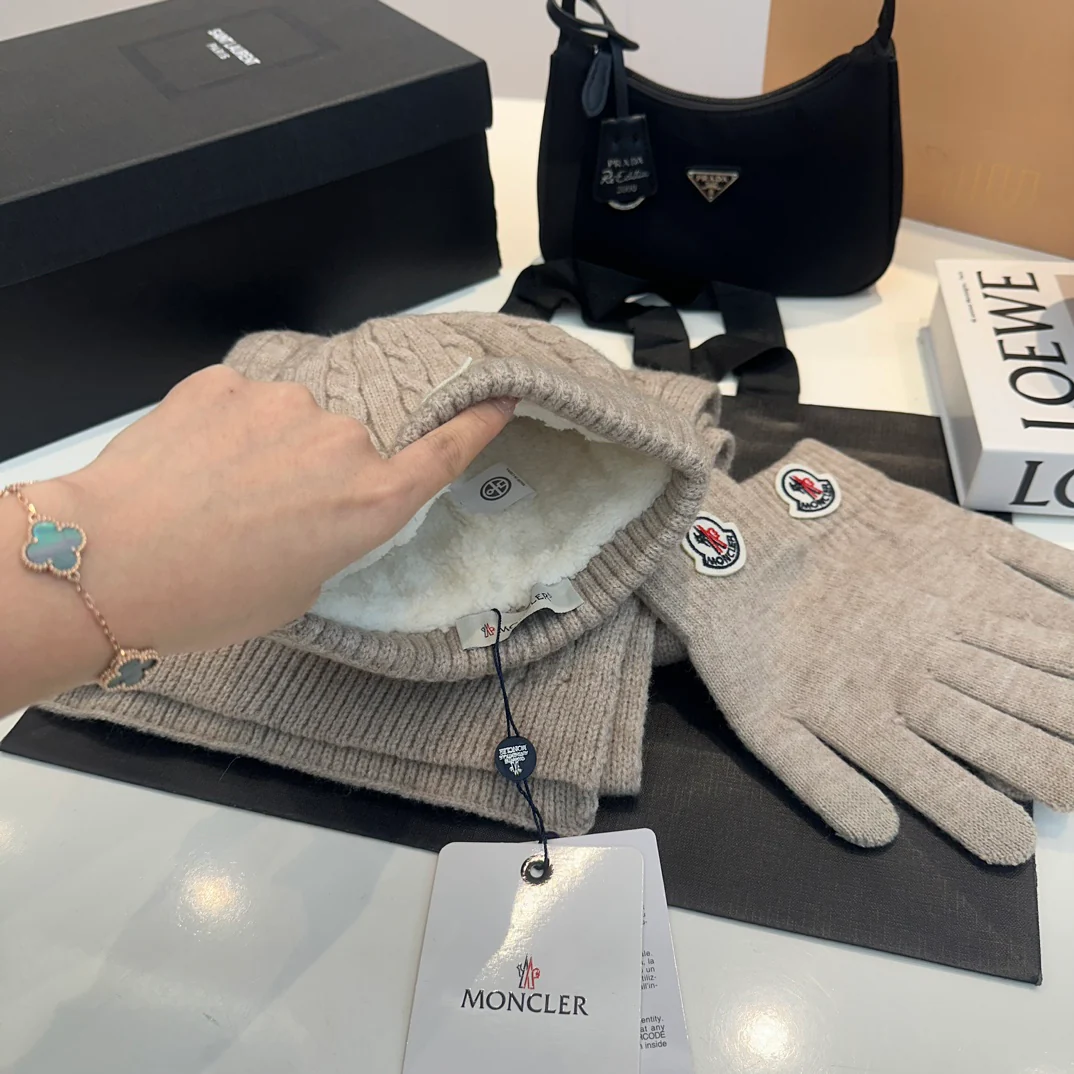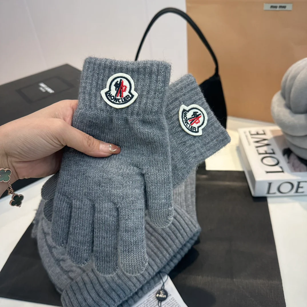Embroidery knitted scarf hat gloves set