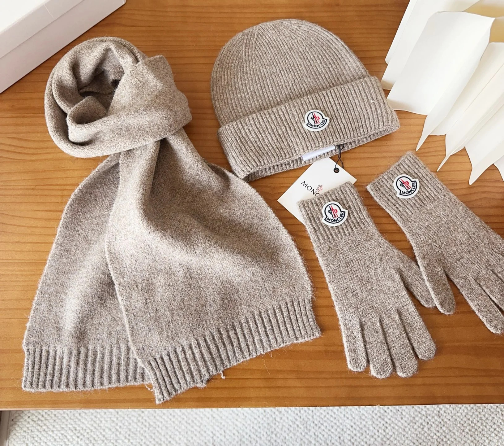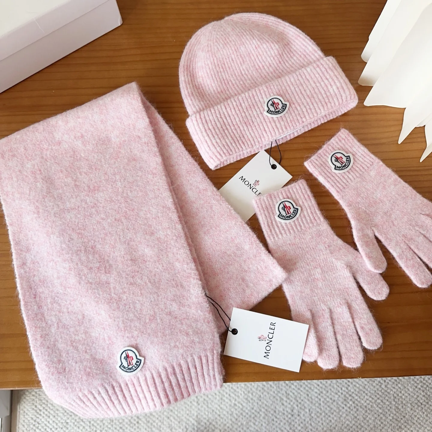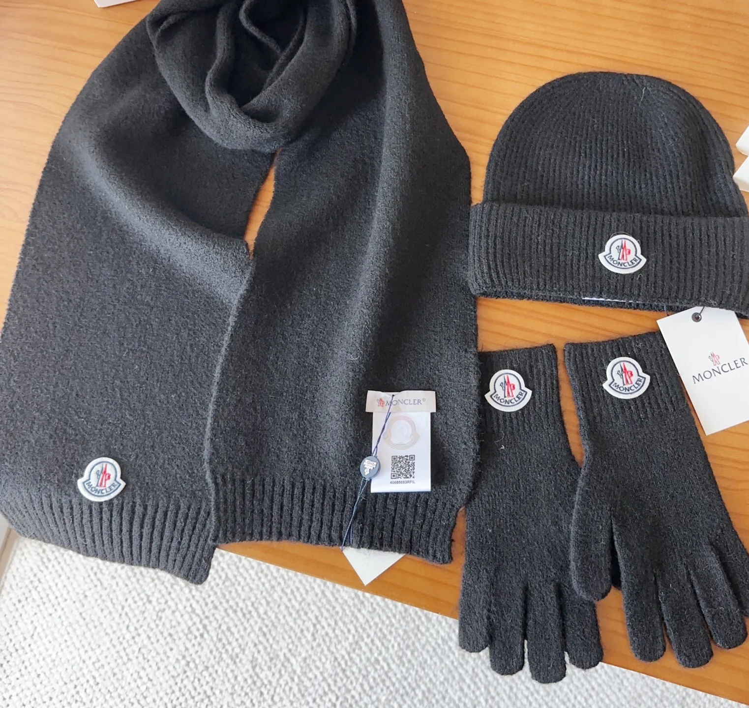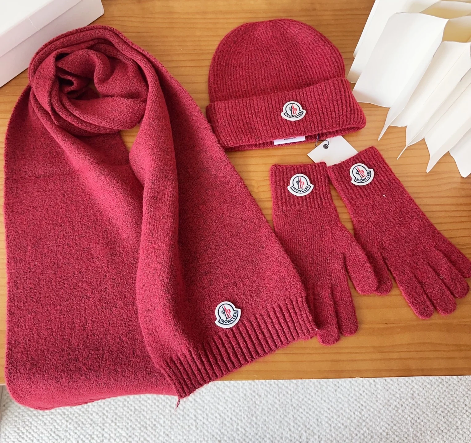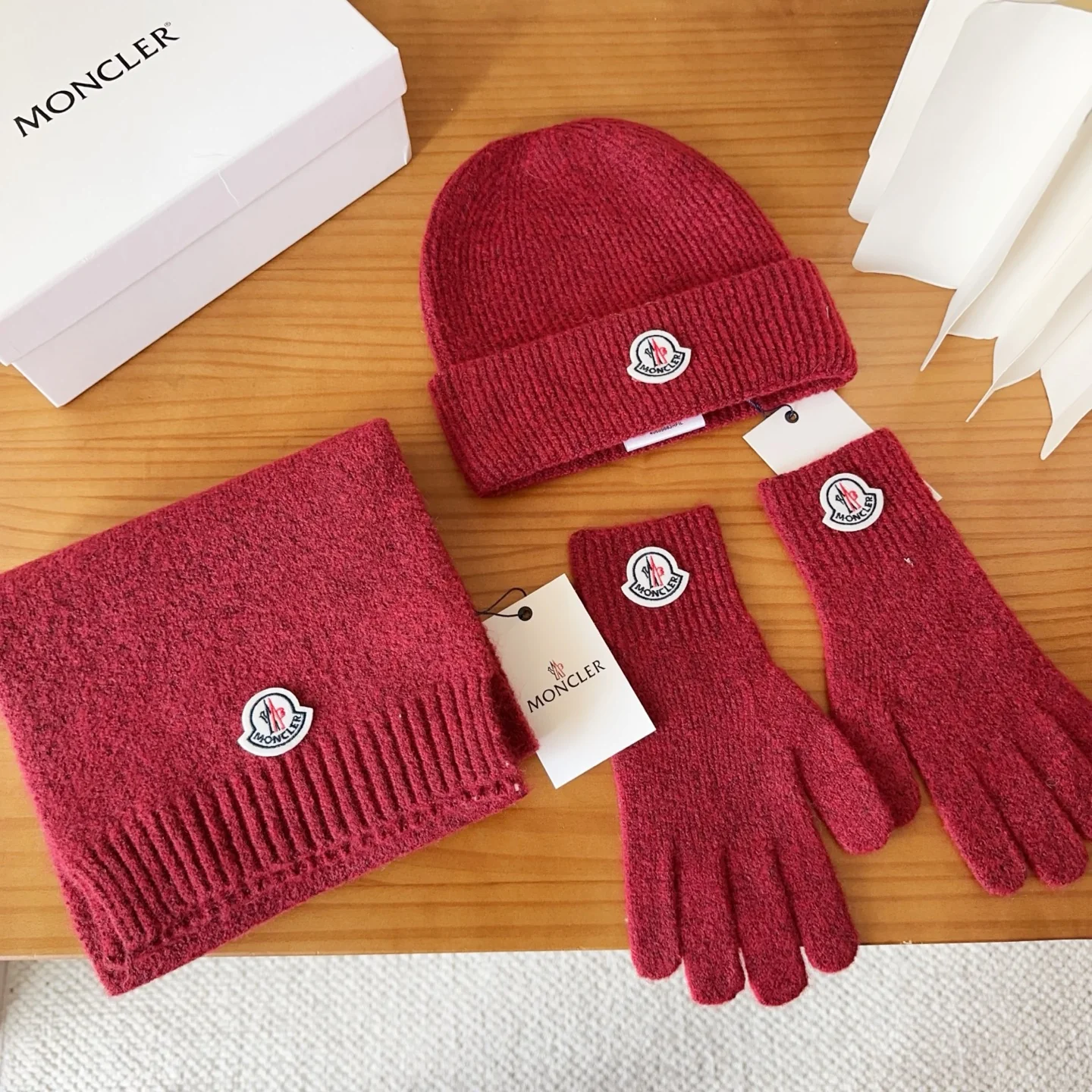 Embroidery knitted scarf hat gloves set