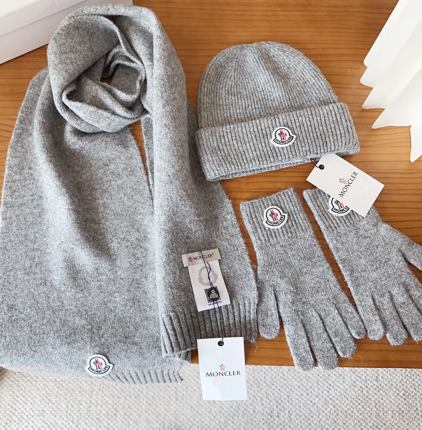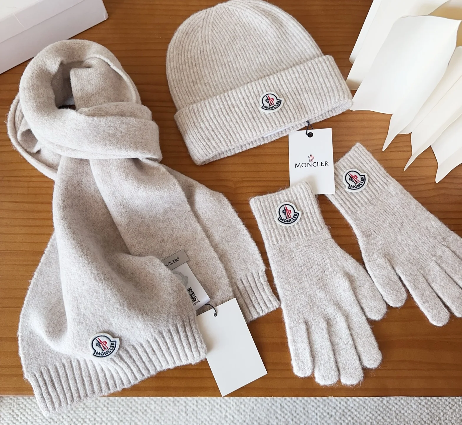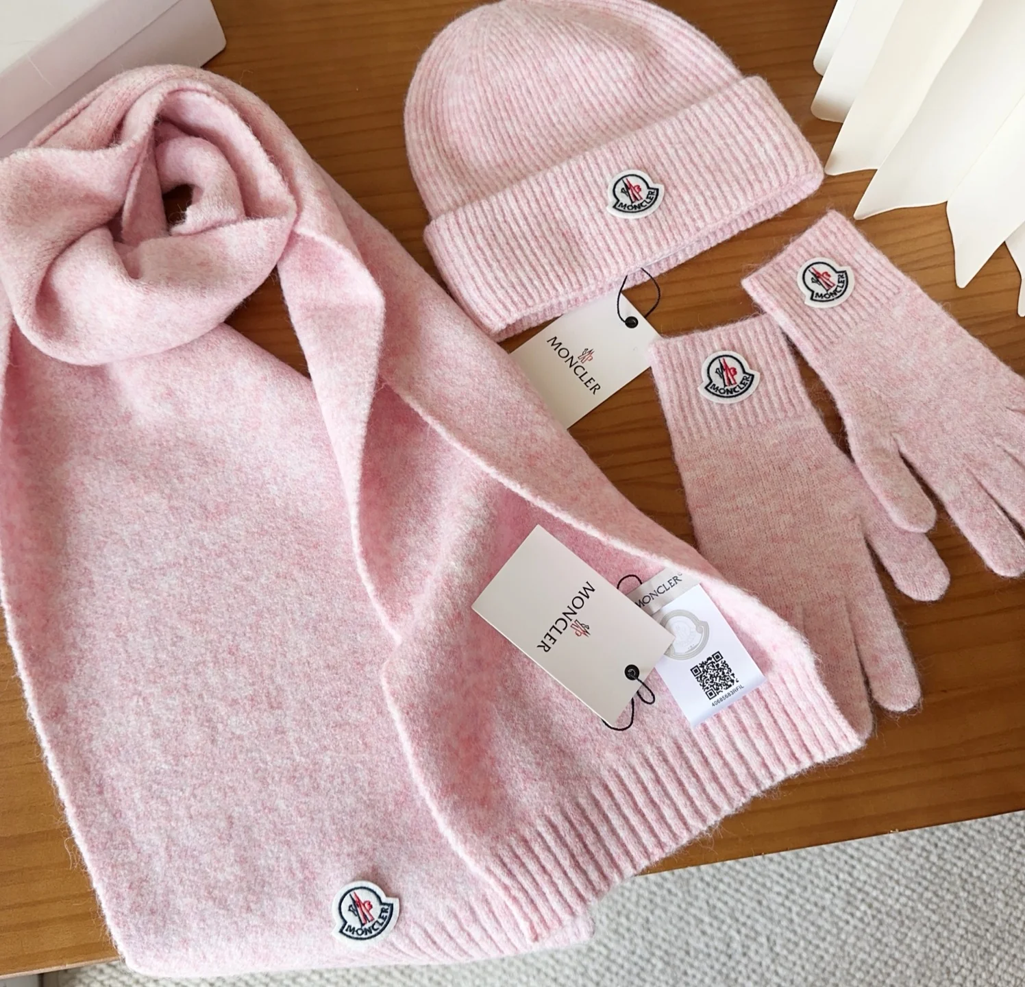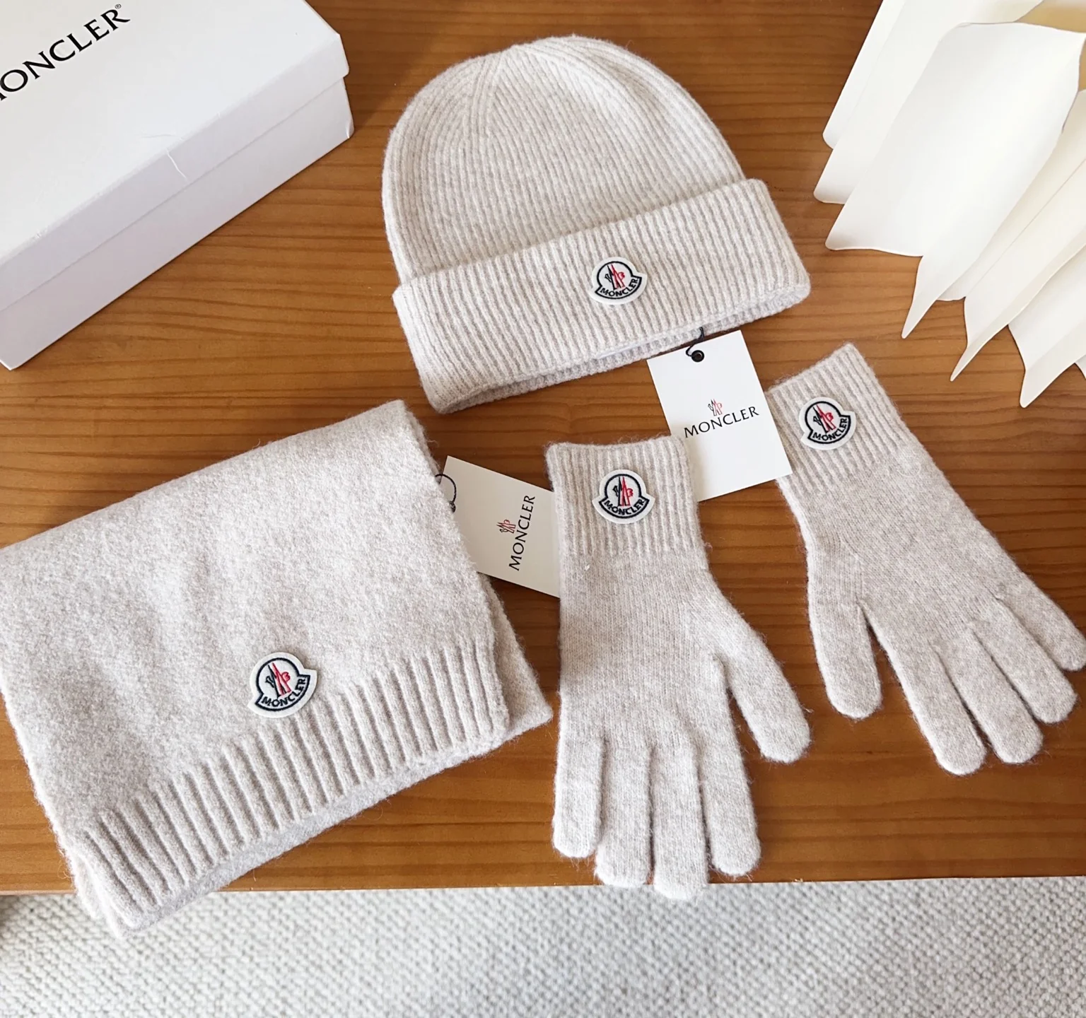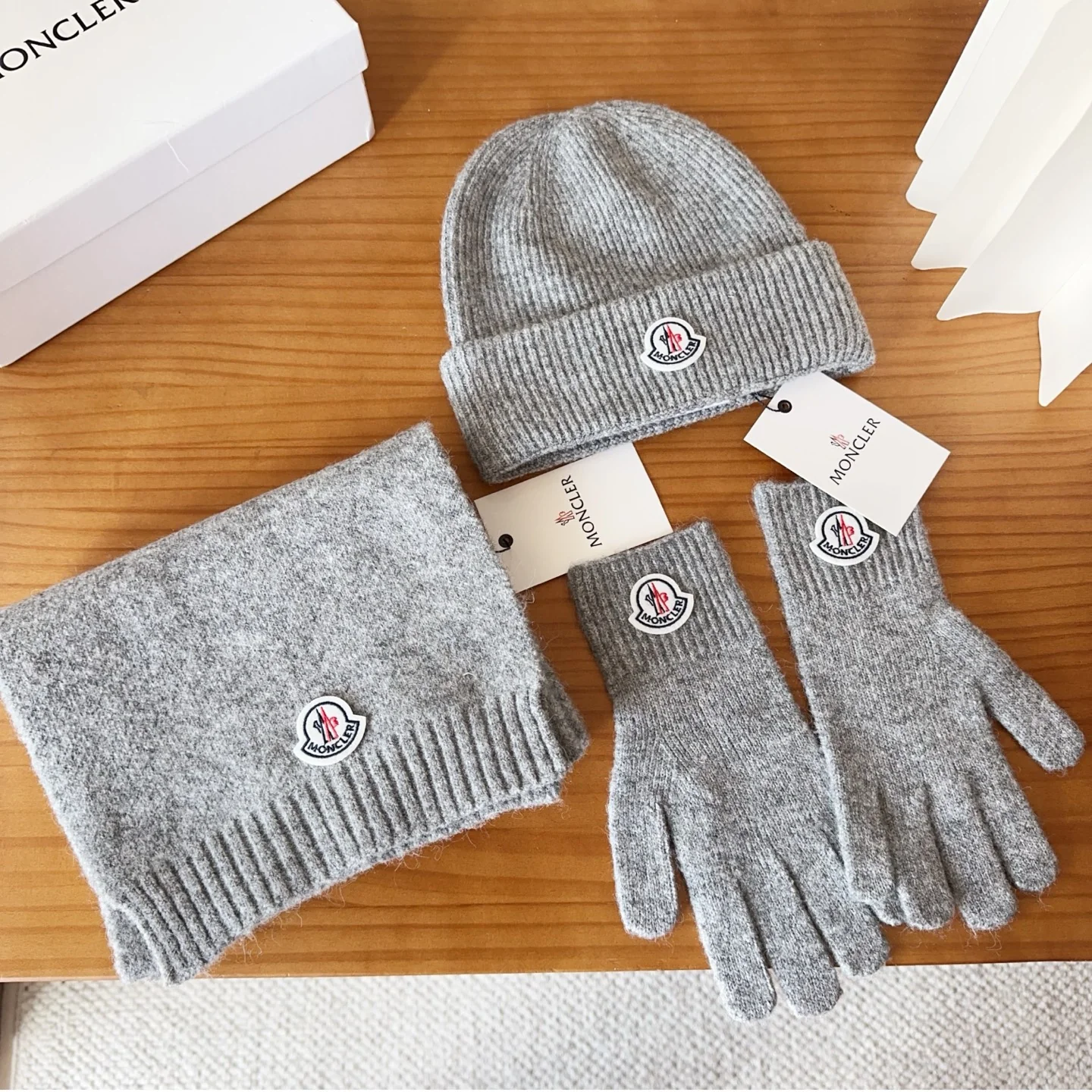 Embroidery knitted scarf hat gloves set