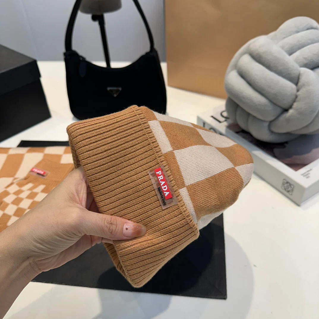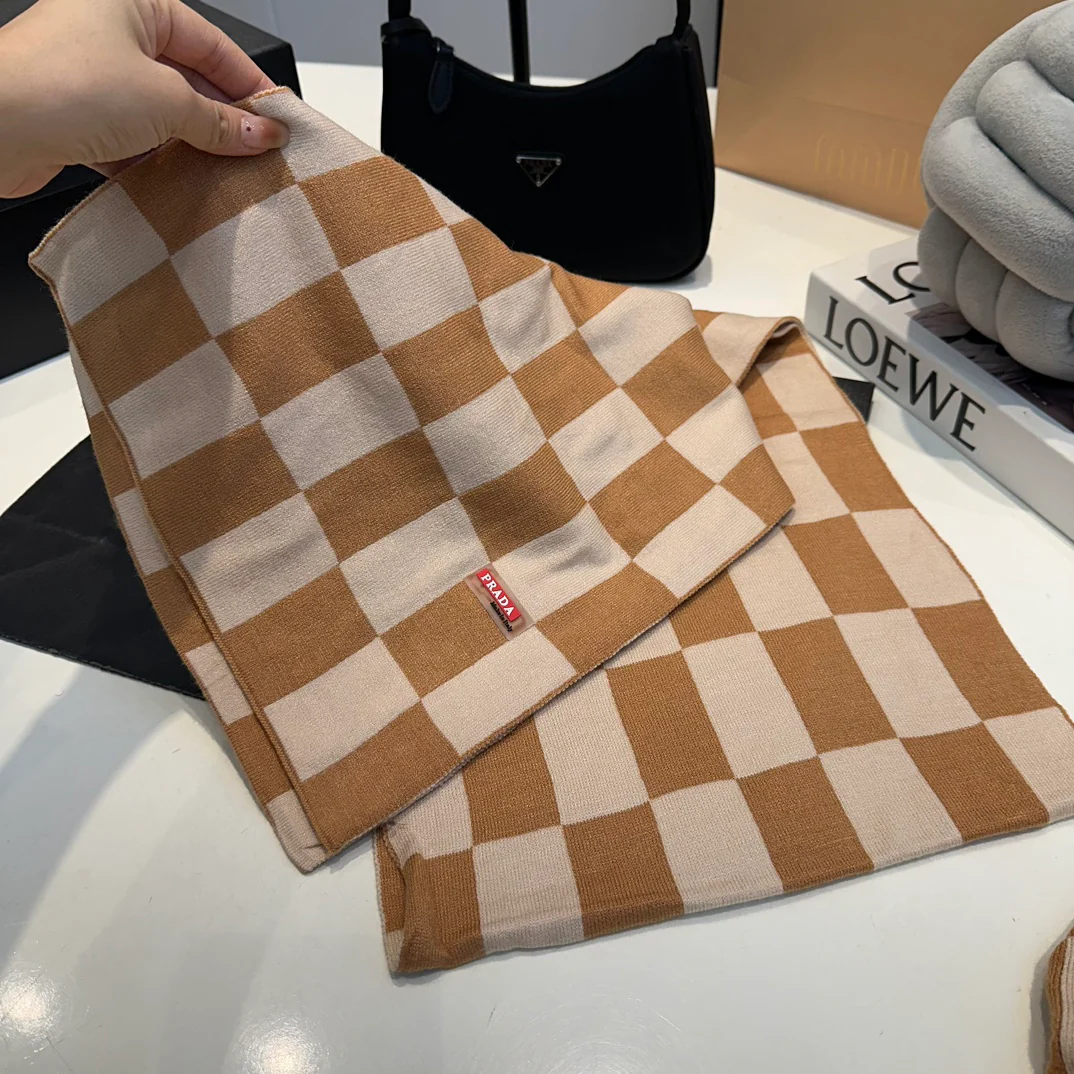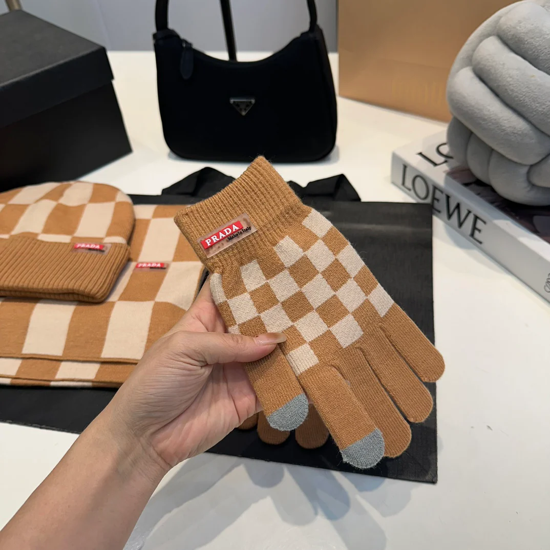 Grid knitted scarf hat gloves set