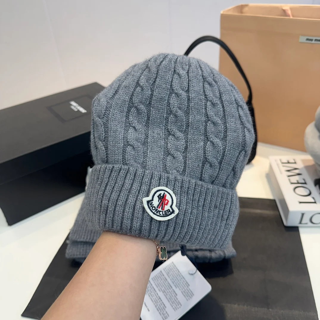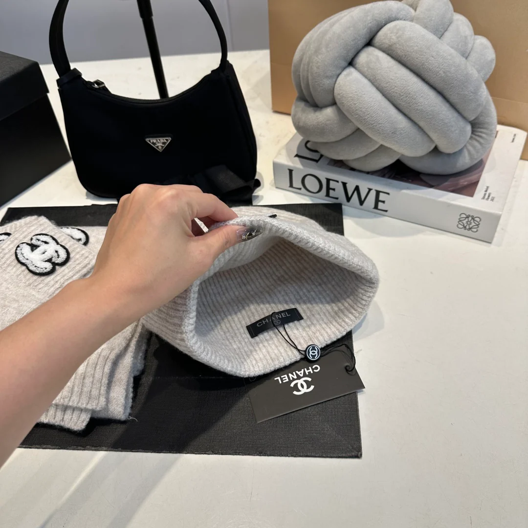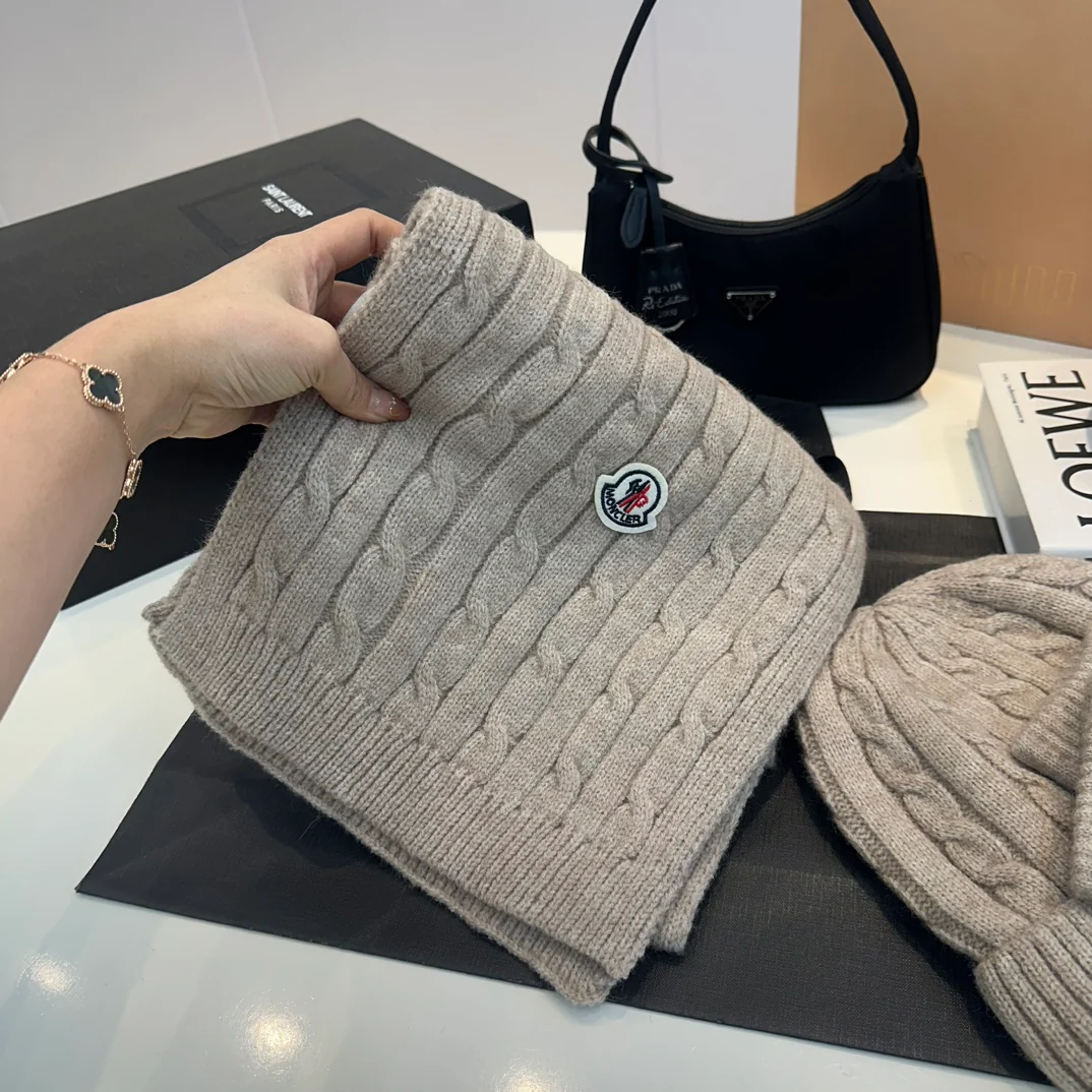 Embroidery knit scarf and hat set
