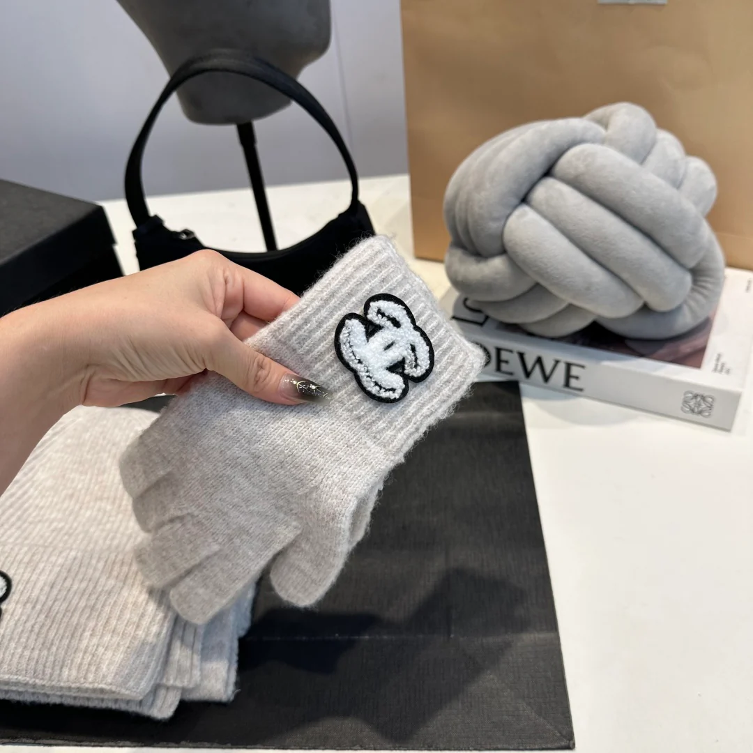 Metal Letters knitted scarf hat gloves set